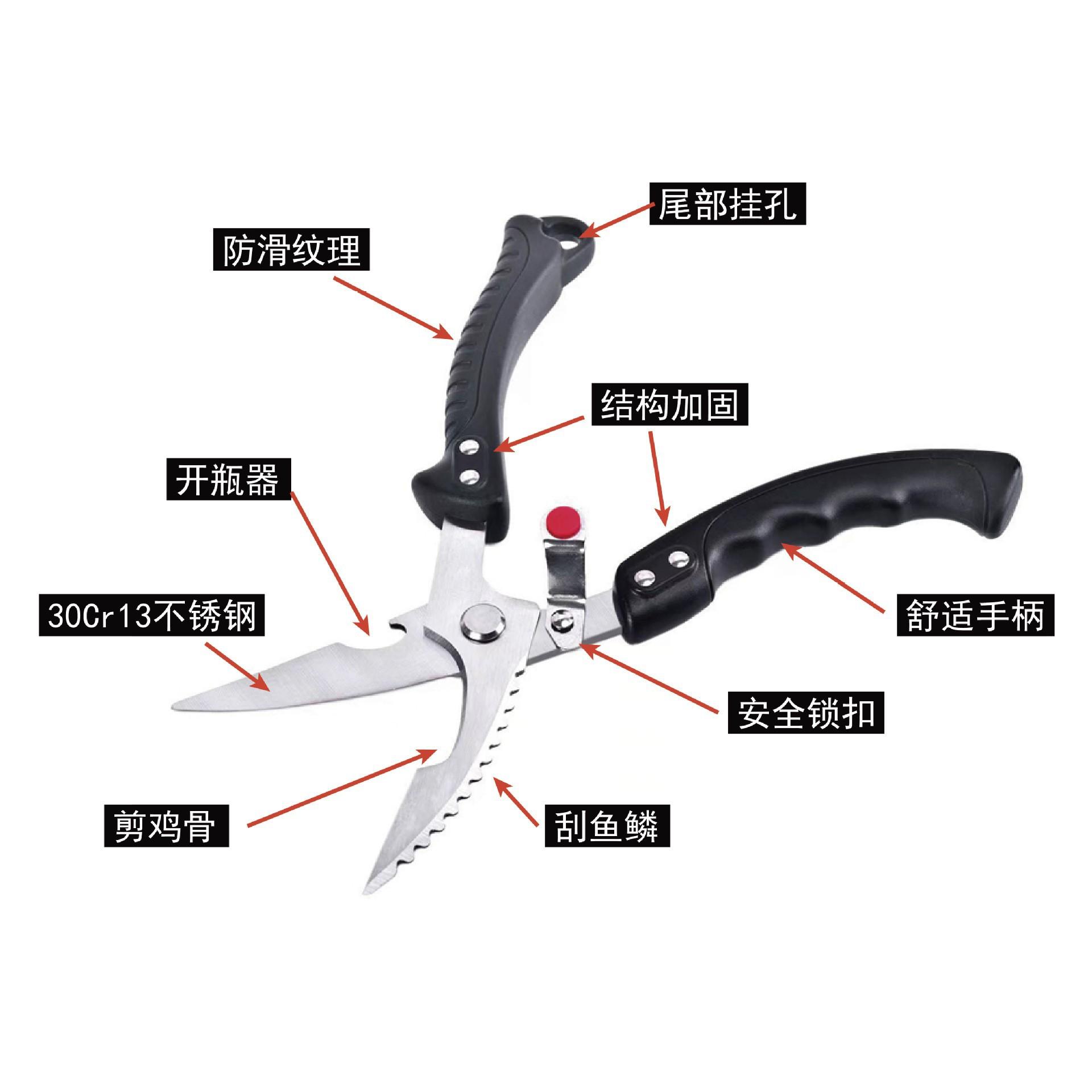 Tijeras de cocina de acero inoxidable, tijeras para huesos de pollo, tijeras de cocina afiladas, tijeras para carne, tijeras para hueso, utensilios de cocina, tijeras para el hogar.