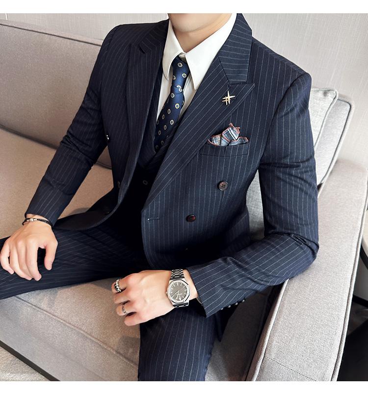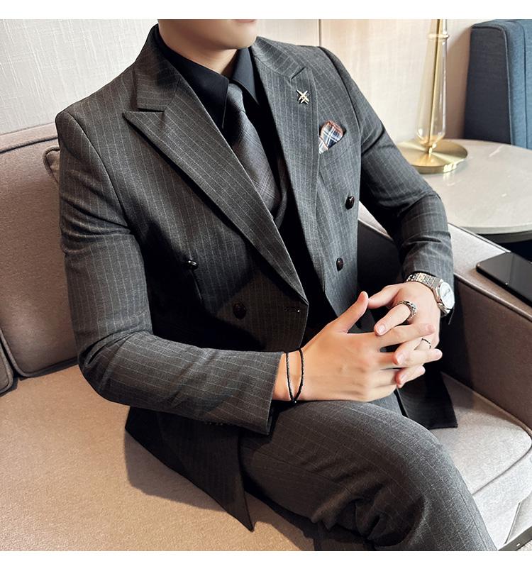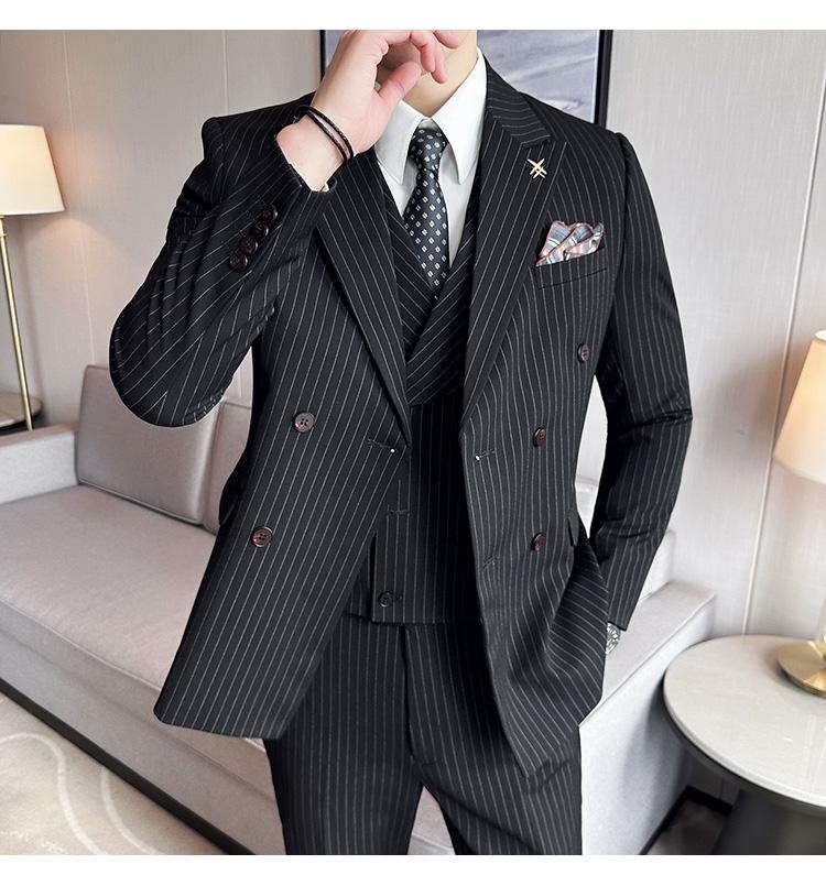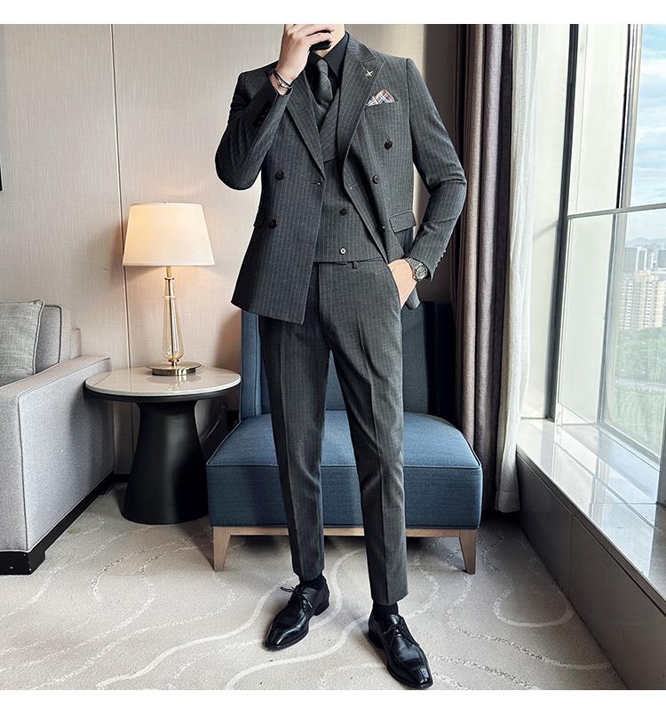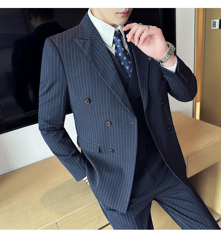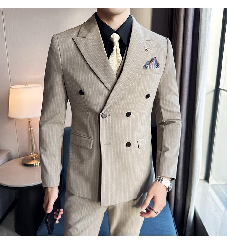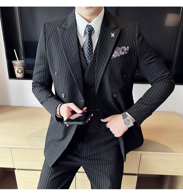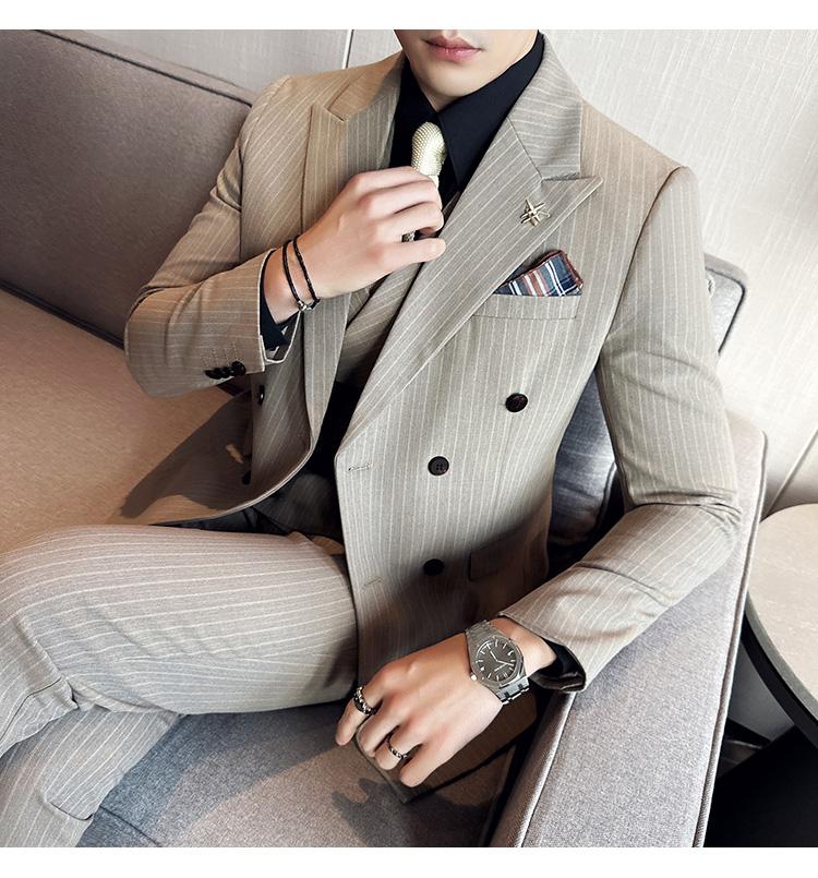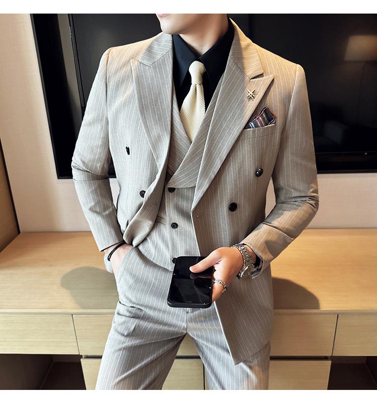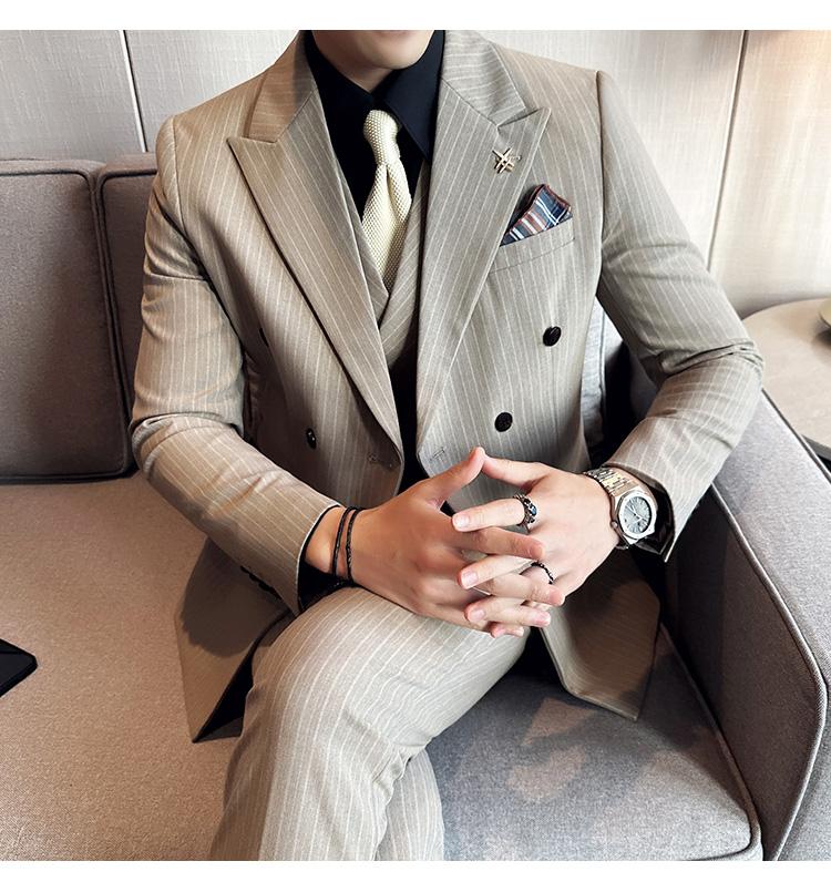 Traje de hombre al por mayor, traje informal de negocios a rayas, traje de novio cruzado, traje de tres piezas para niño