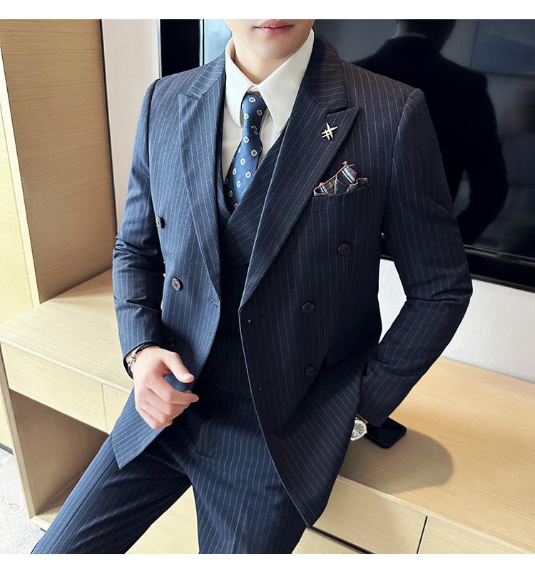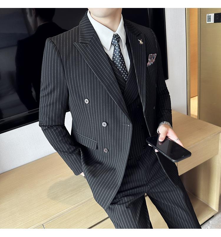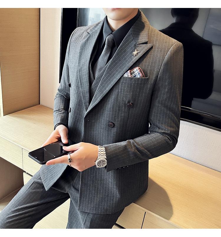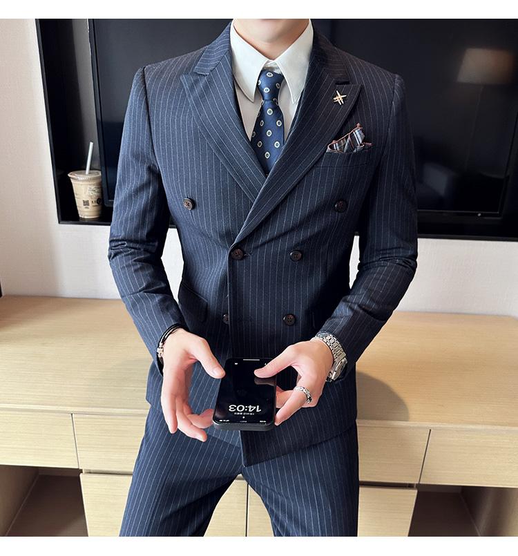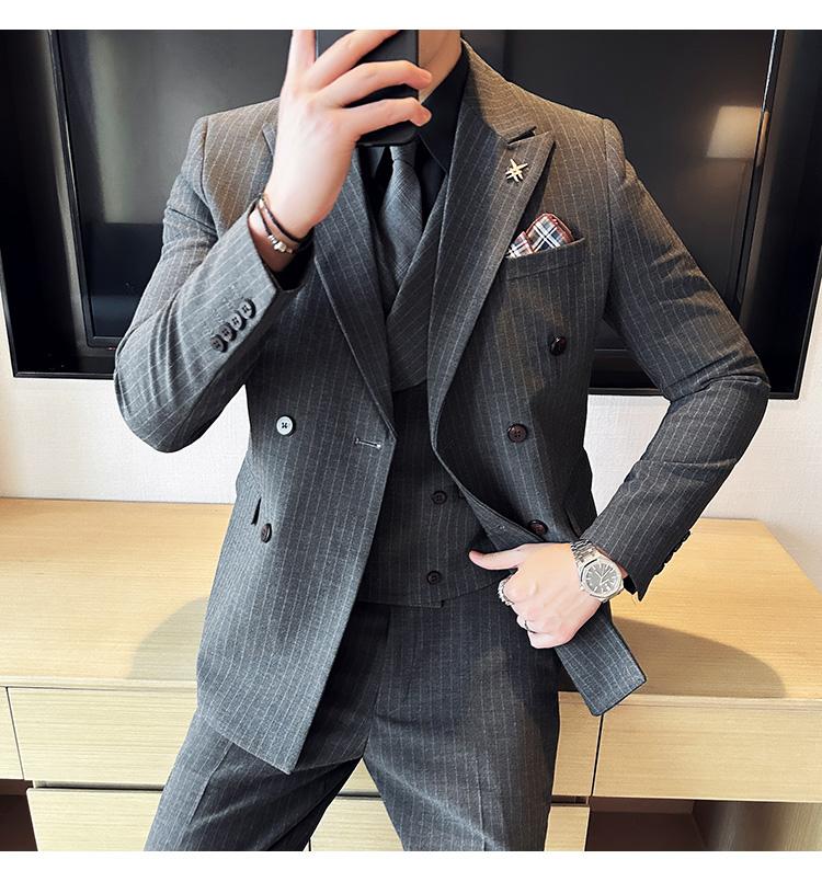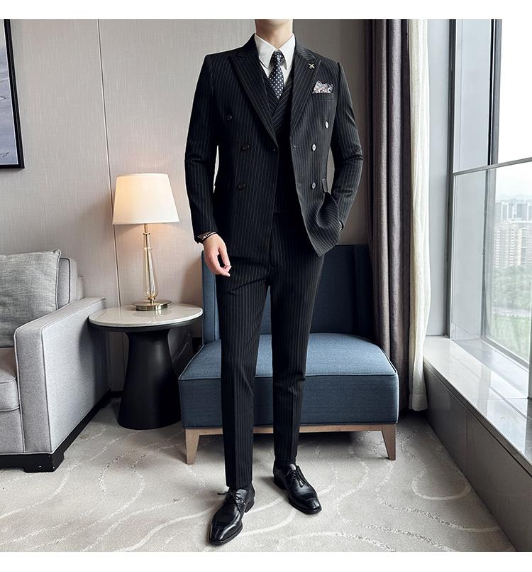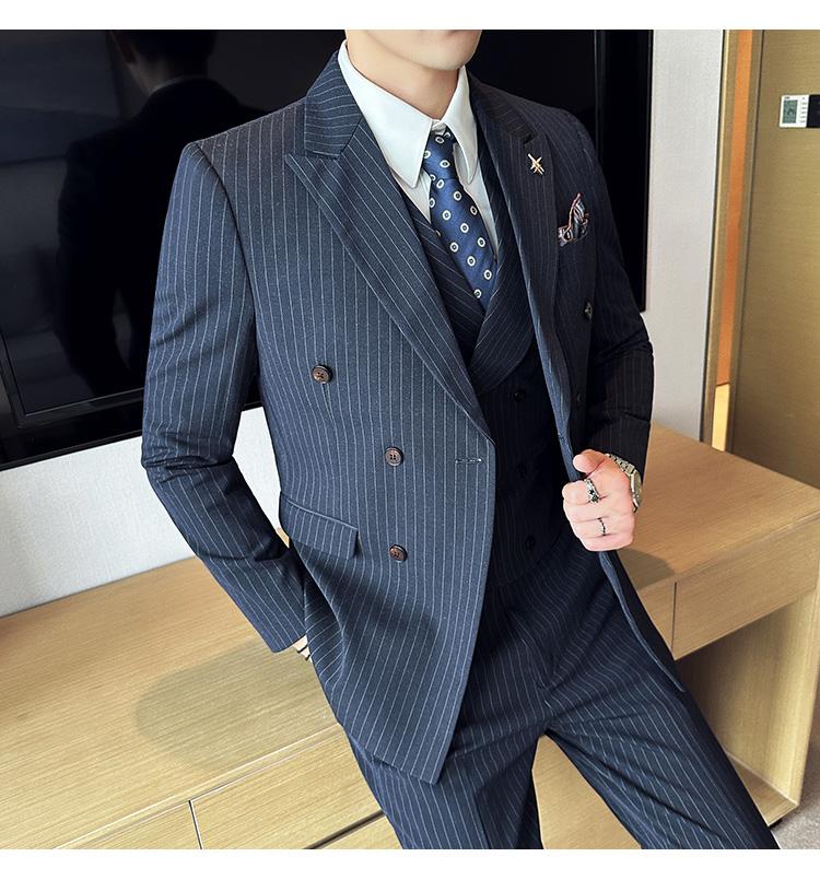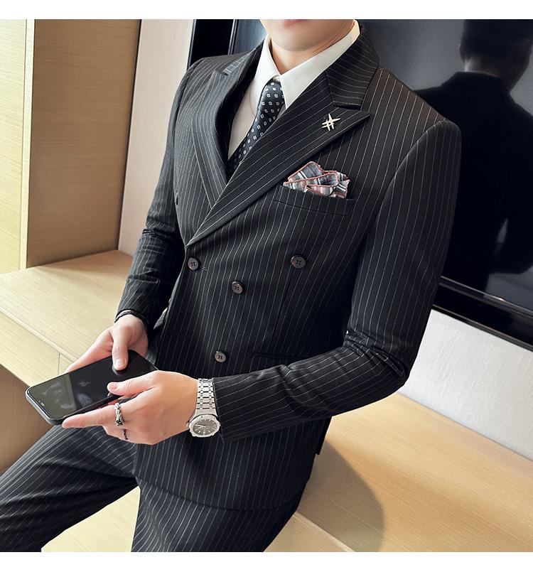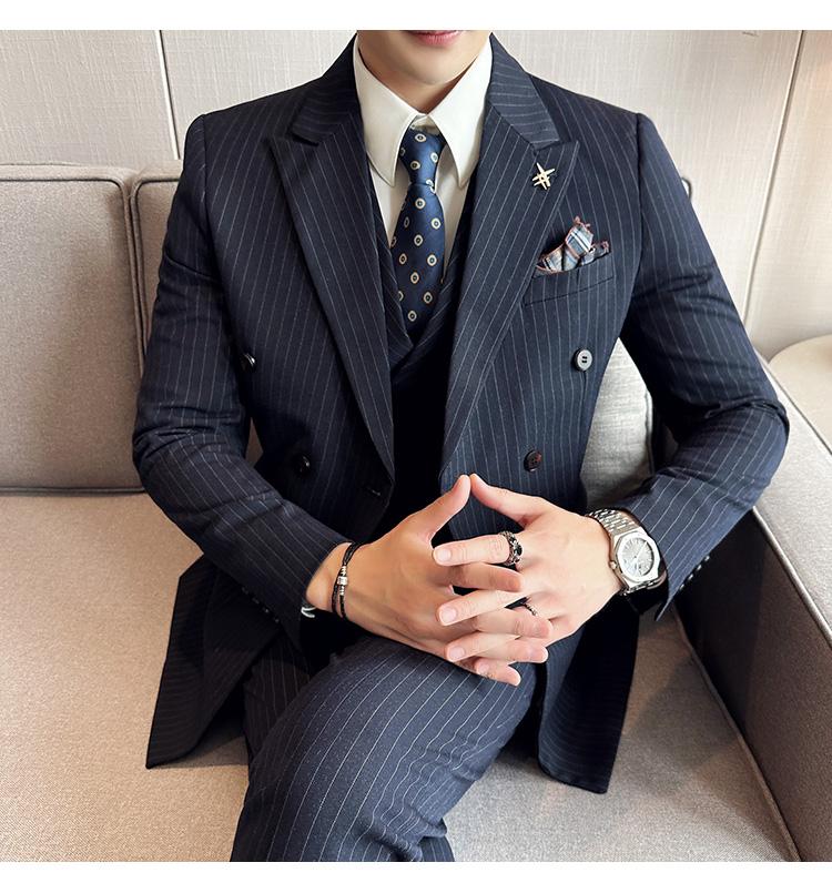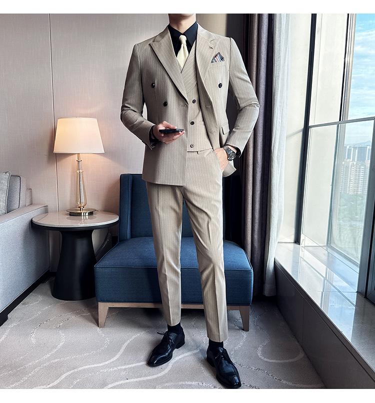 Traje de hombre al por mayor, traje informal de negocios a rayas, traje de novio cruzado, traje de tres piezas para niño