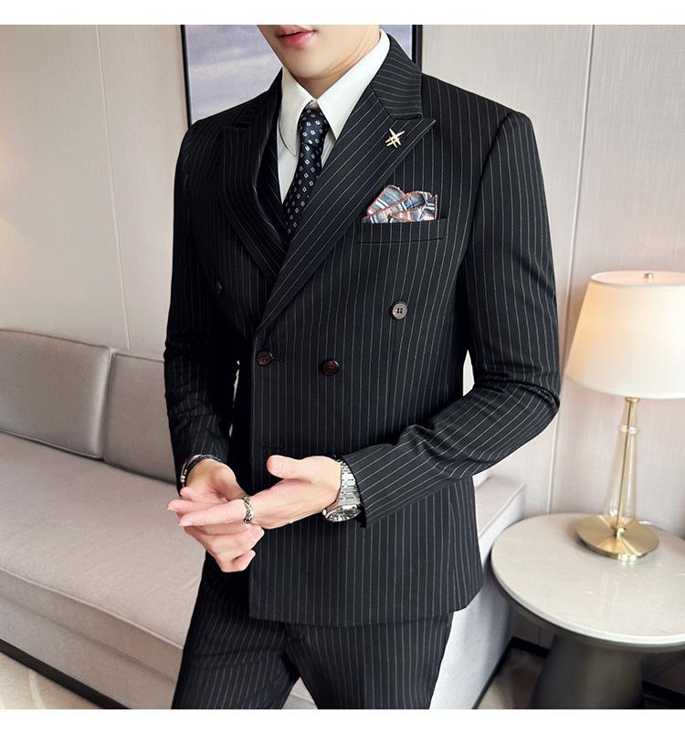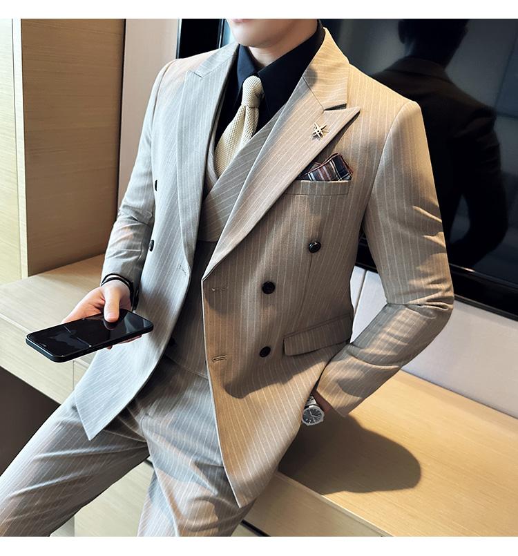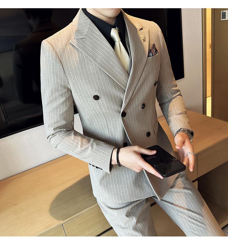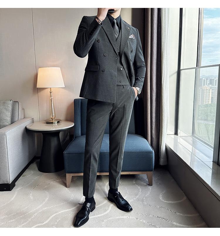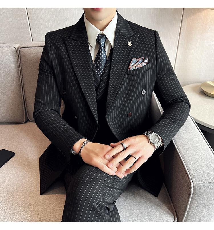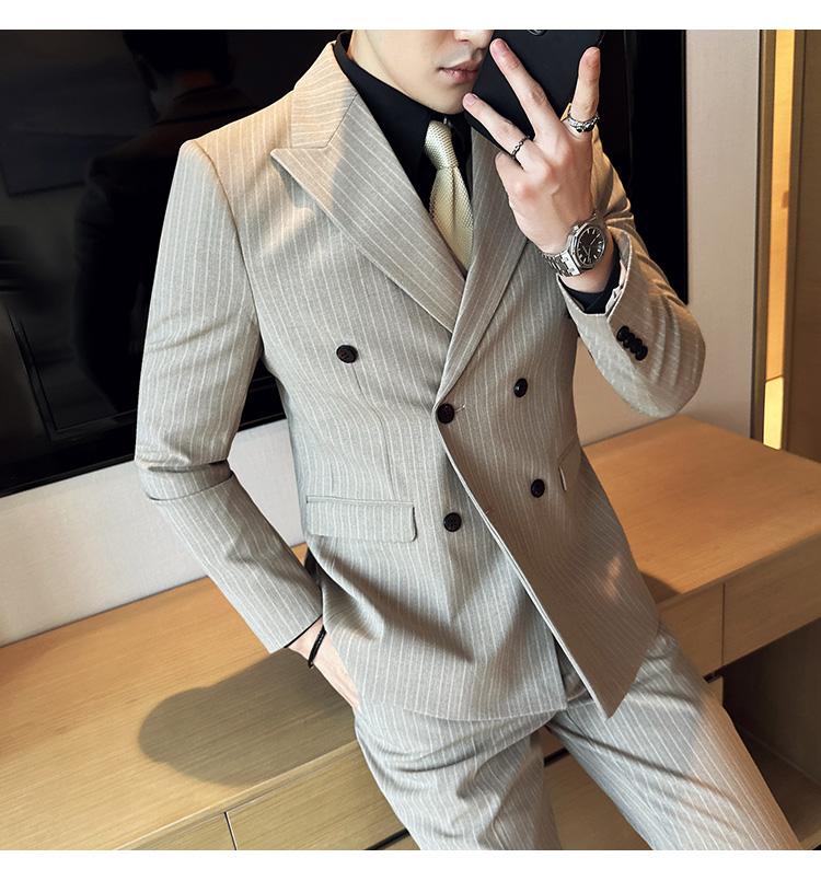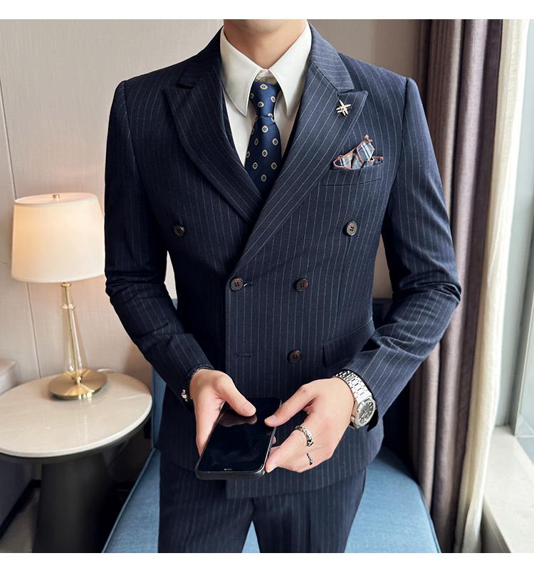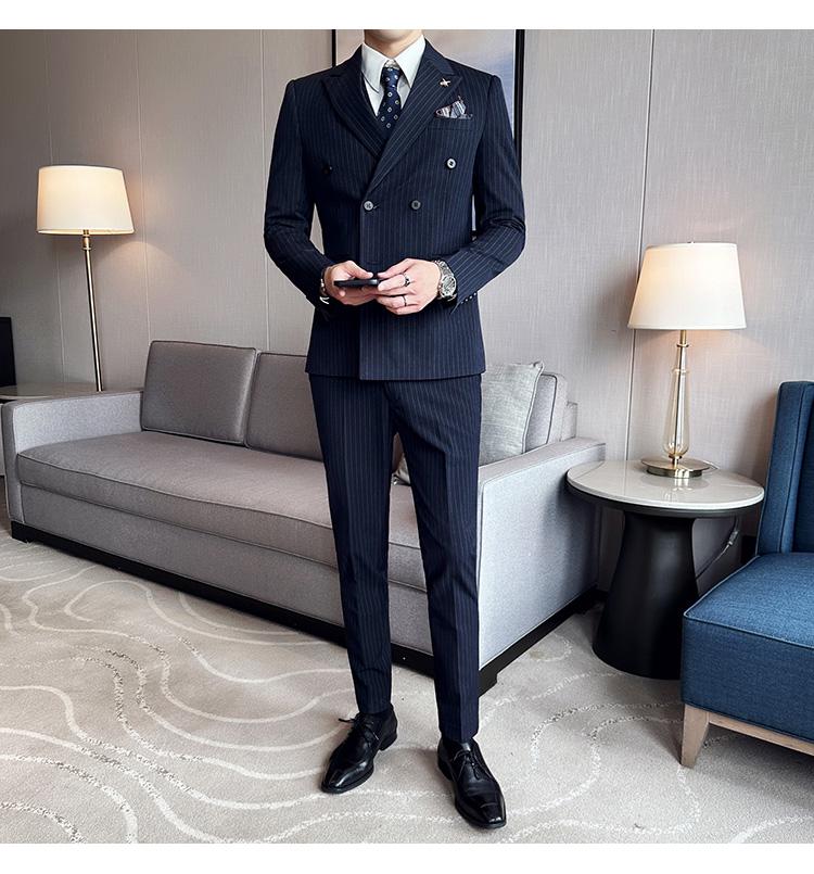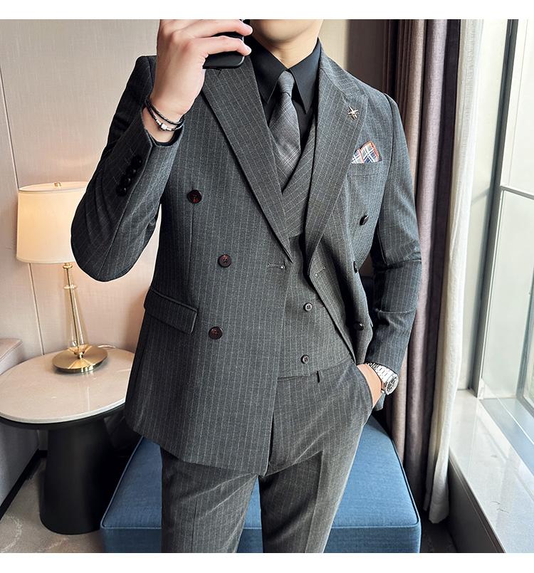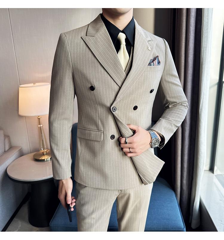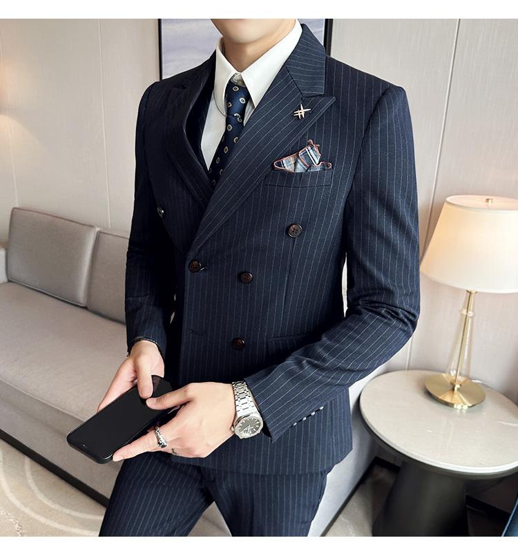 Traje de hombre al por mayor, traje informal de negocios a rayas, traje de novio cruzado, traje de tres piezas para niño