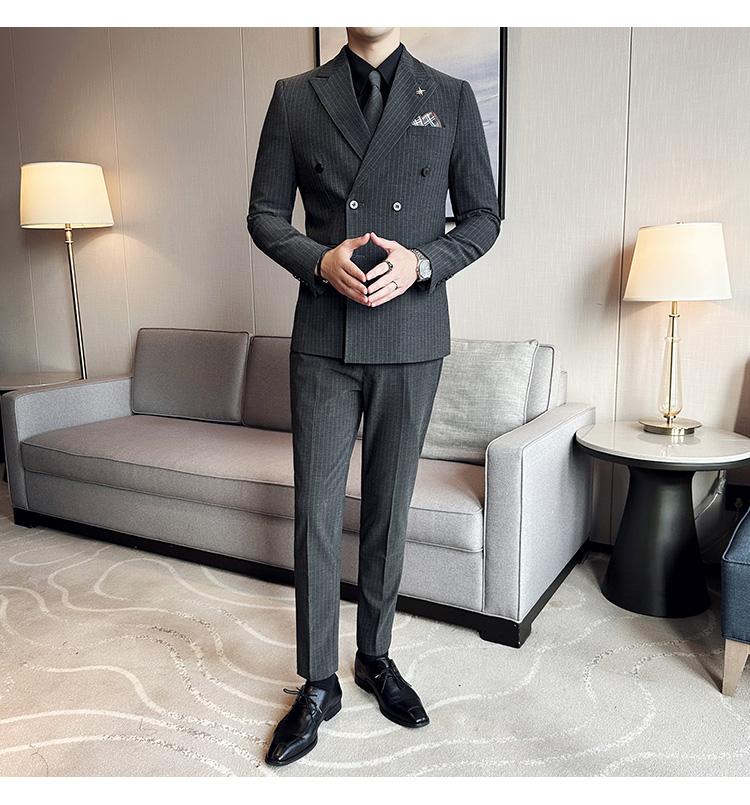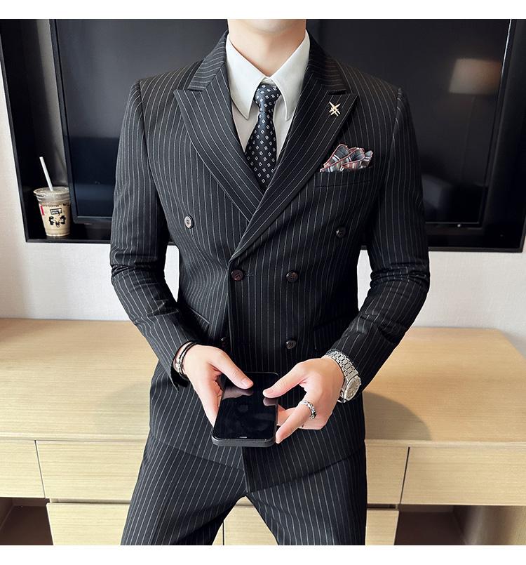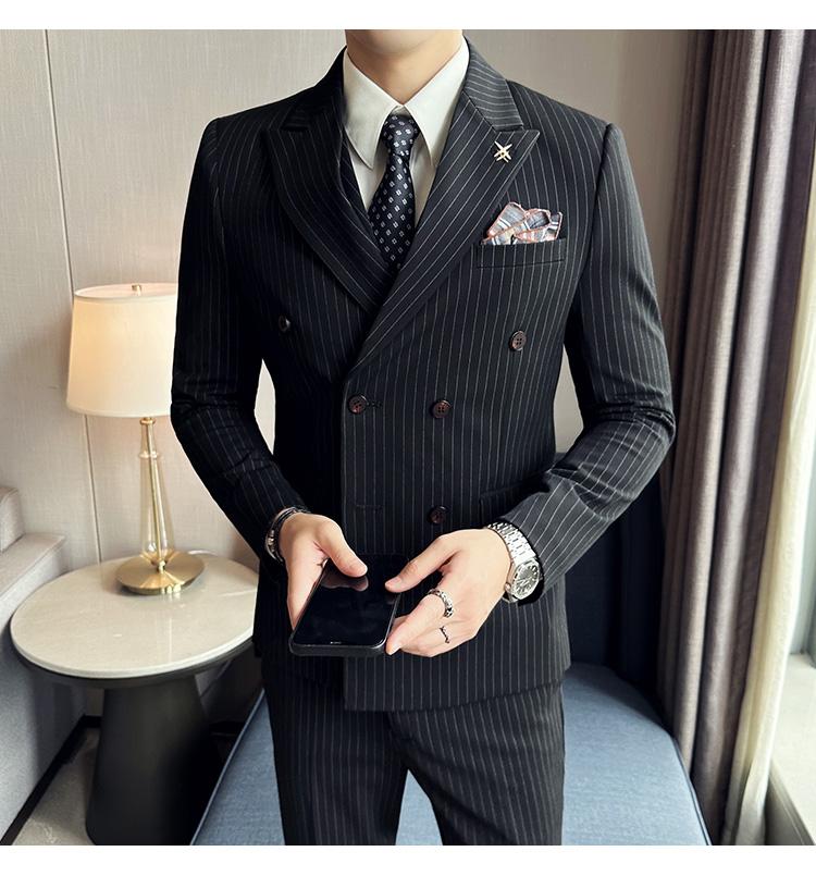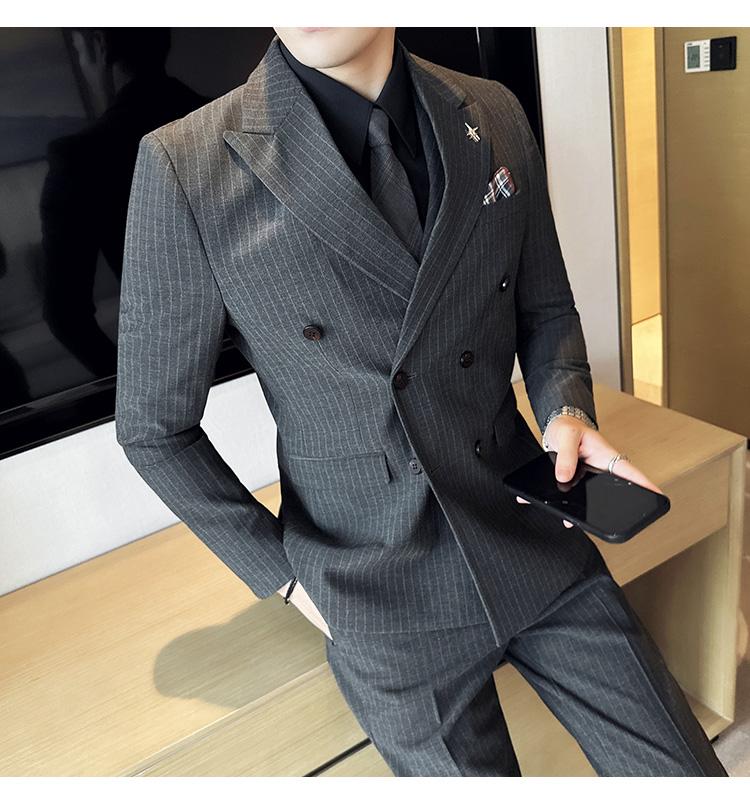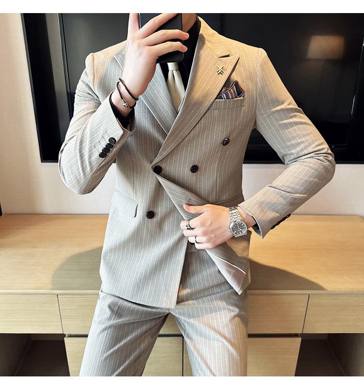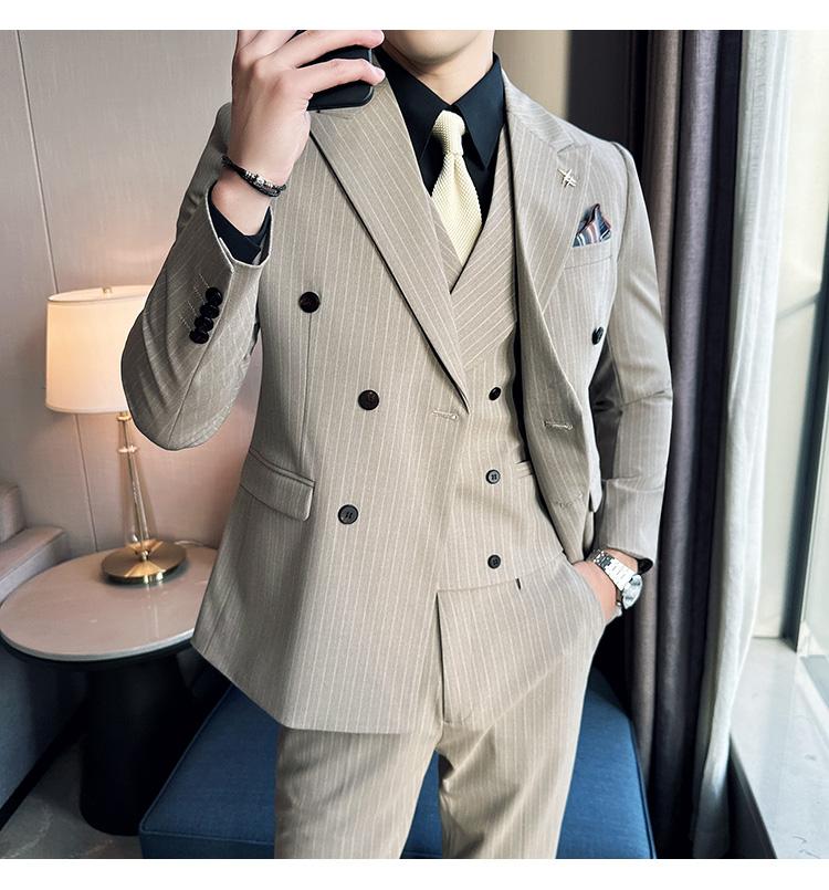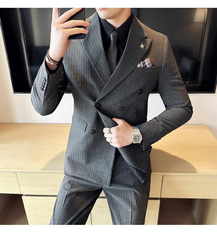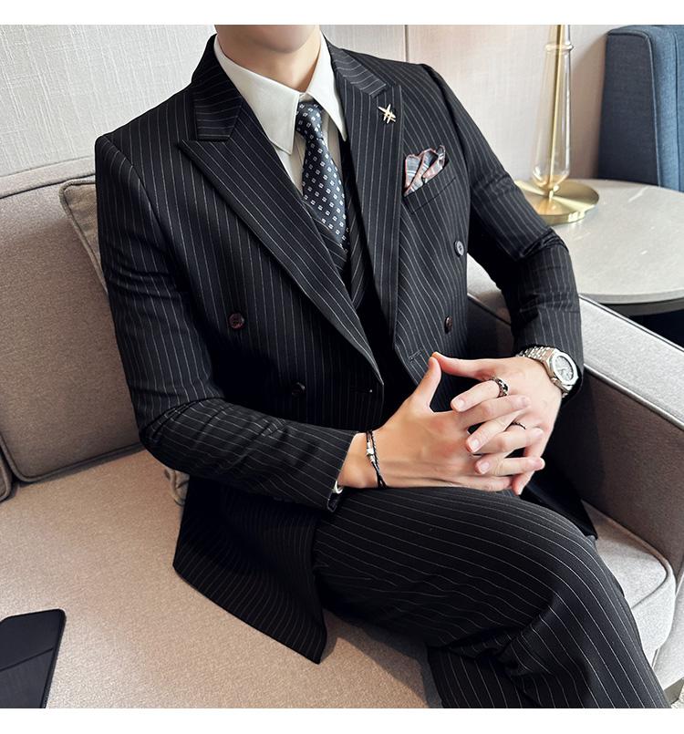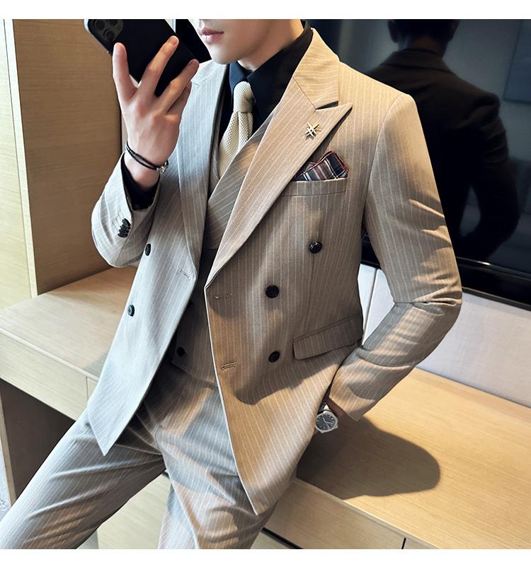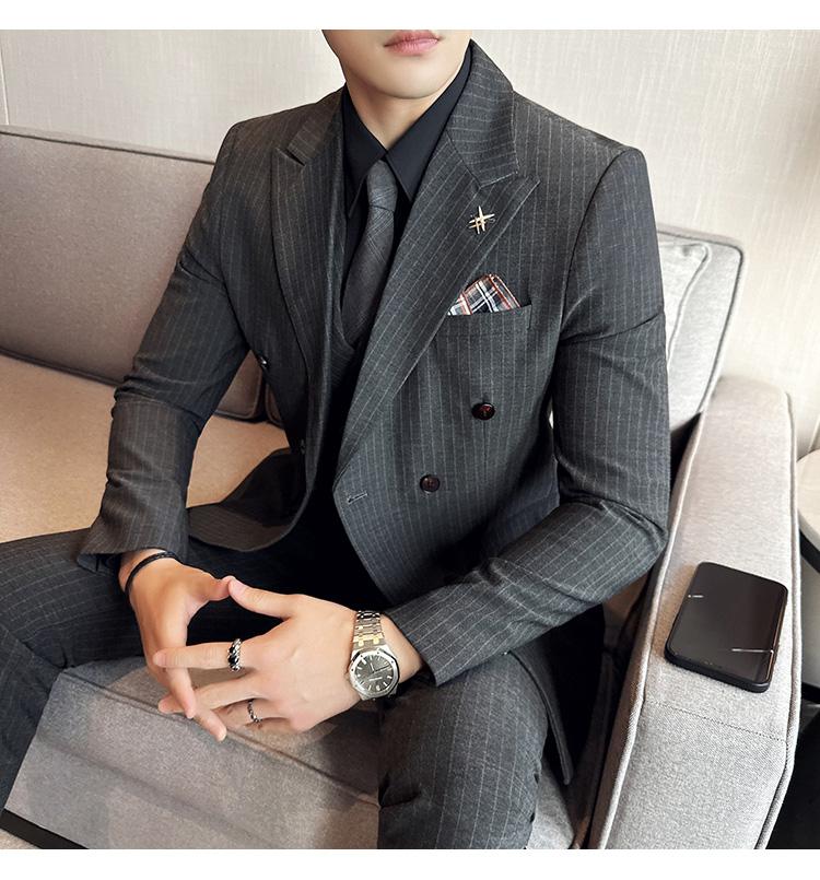 Traje de hombre al por mayor, traje informal de negocios a rayas, traje de novio cruzado, traje de tres piezas para niño