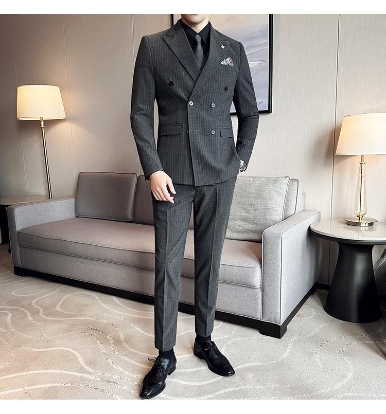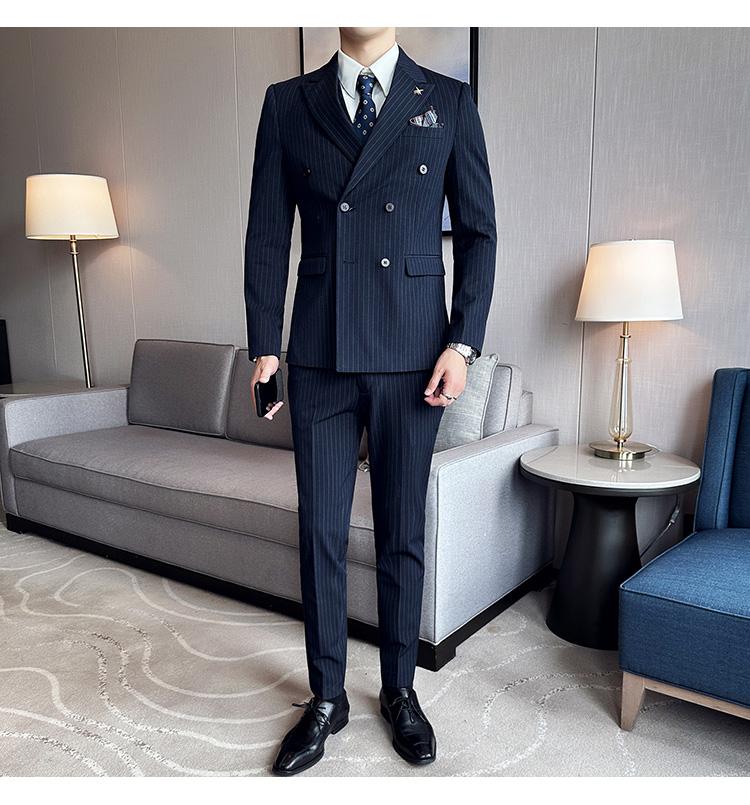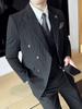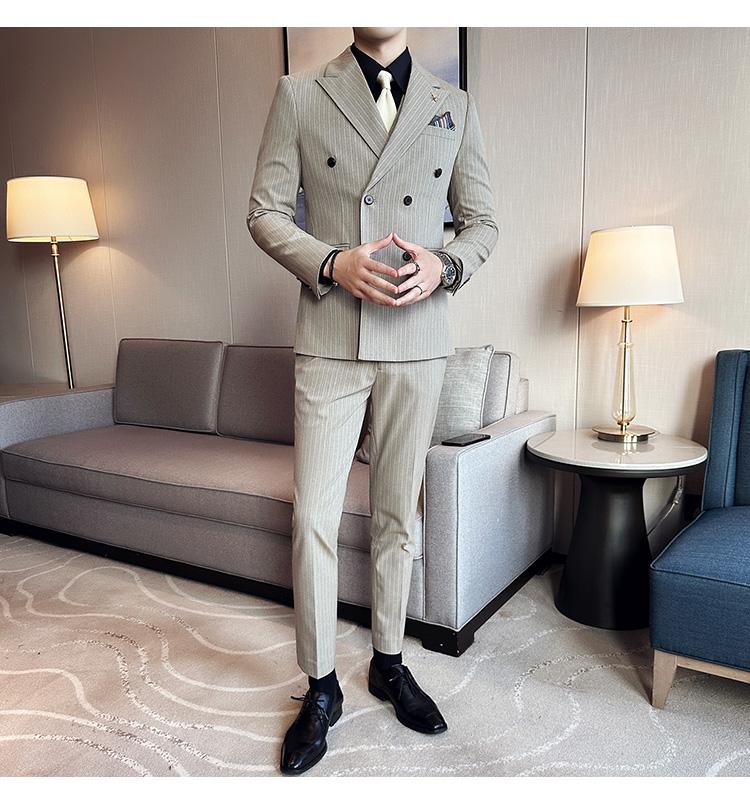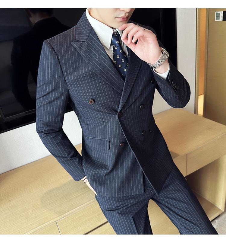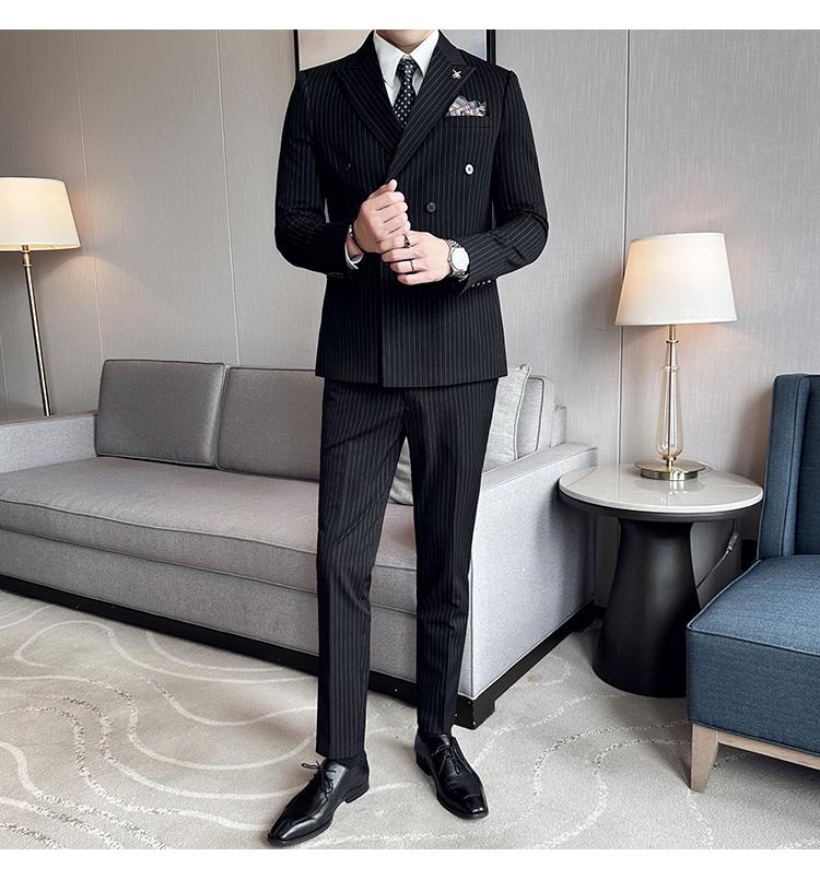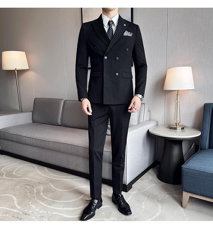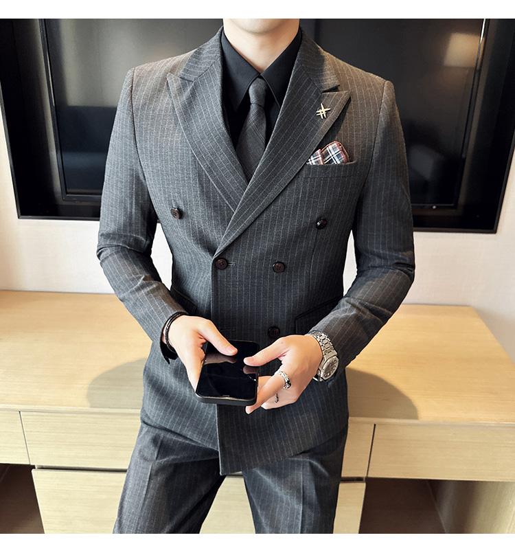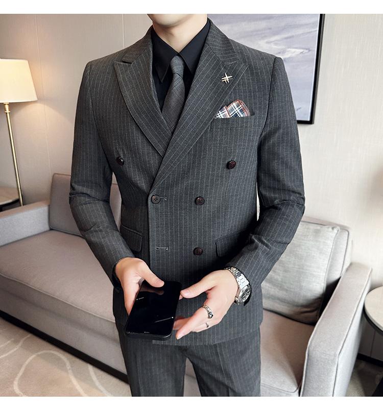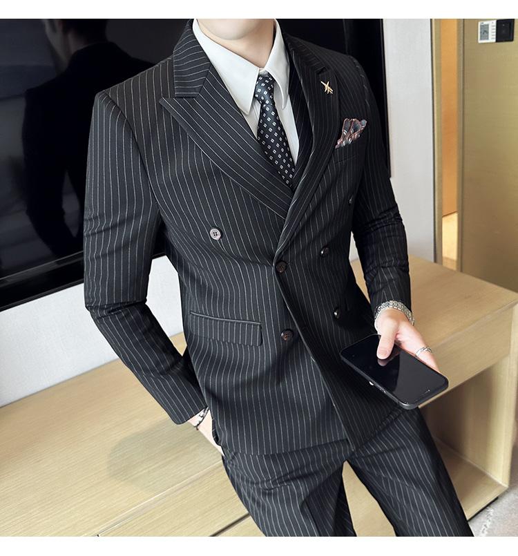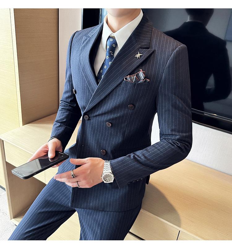 Traje de hombre al por mayor, traje informal de negocios a rayas, traje de novio cruzado, traje de tres piezas para niño