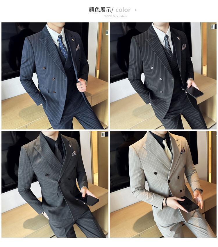 Gray (suit + vest + trousers), Black (suit + vest + trousers), Khaki (suit + vest + trousers), Navy blue (suit + vest + trousers)