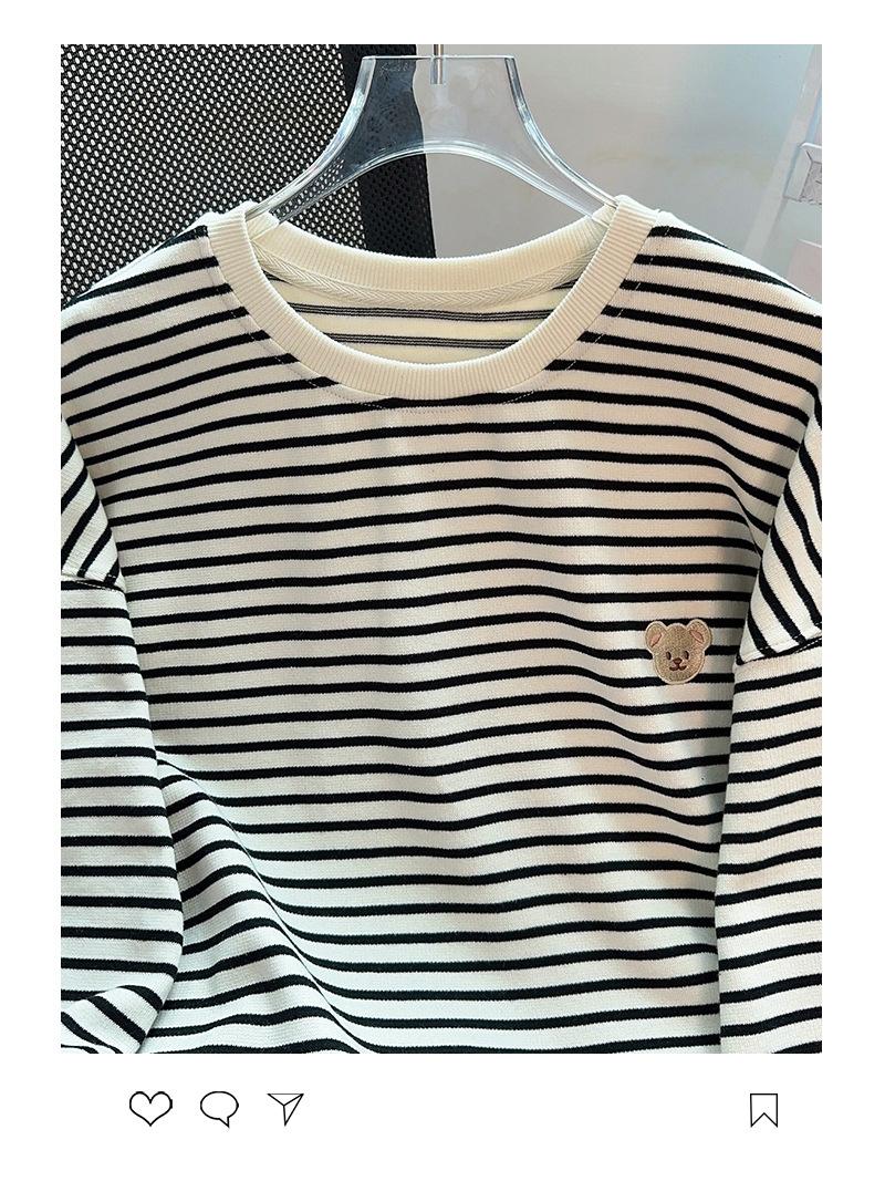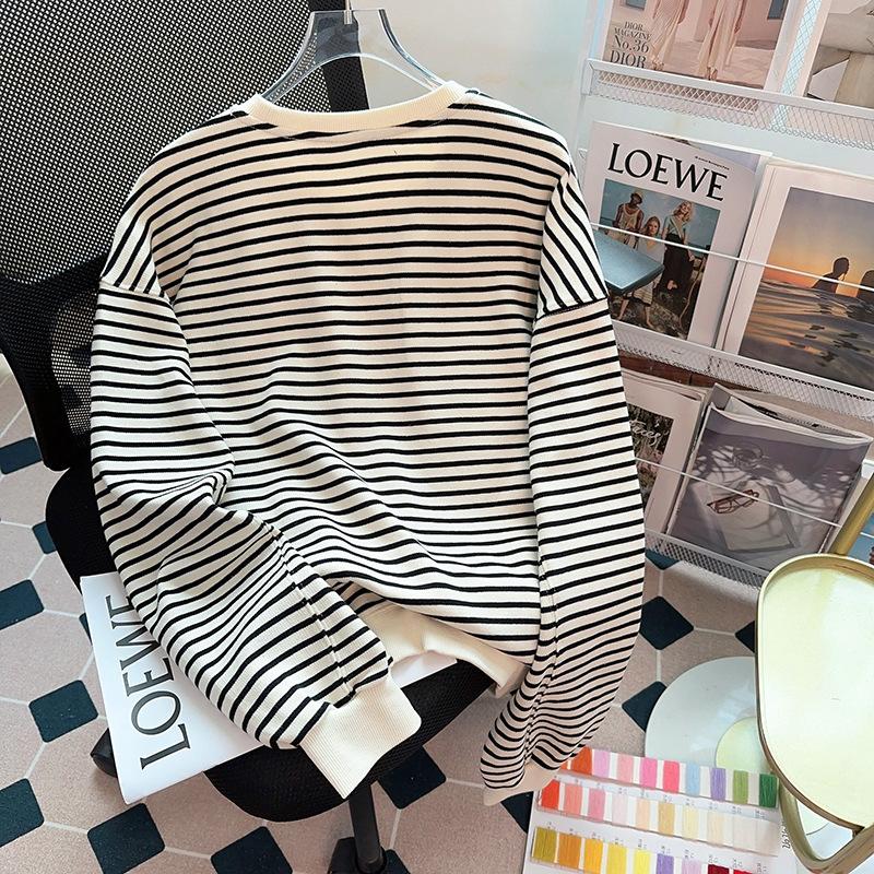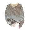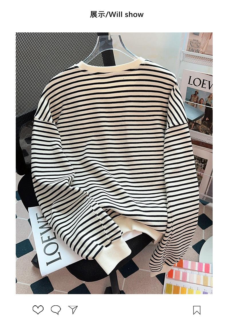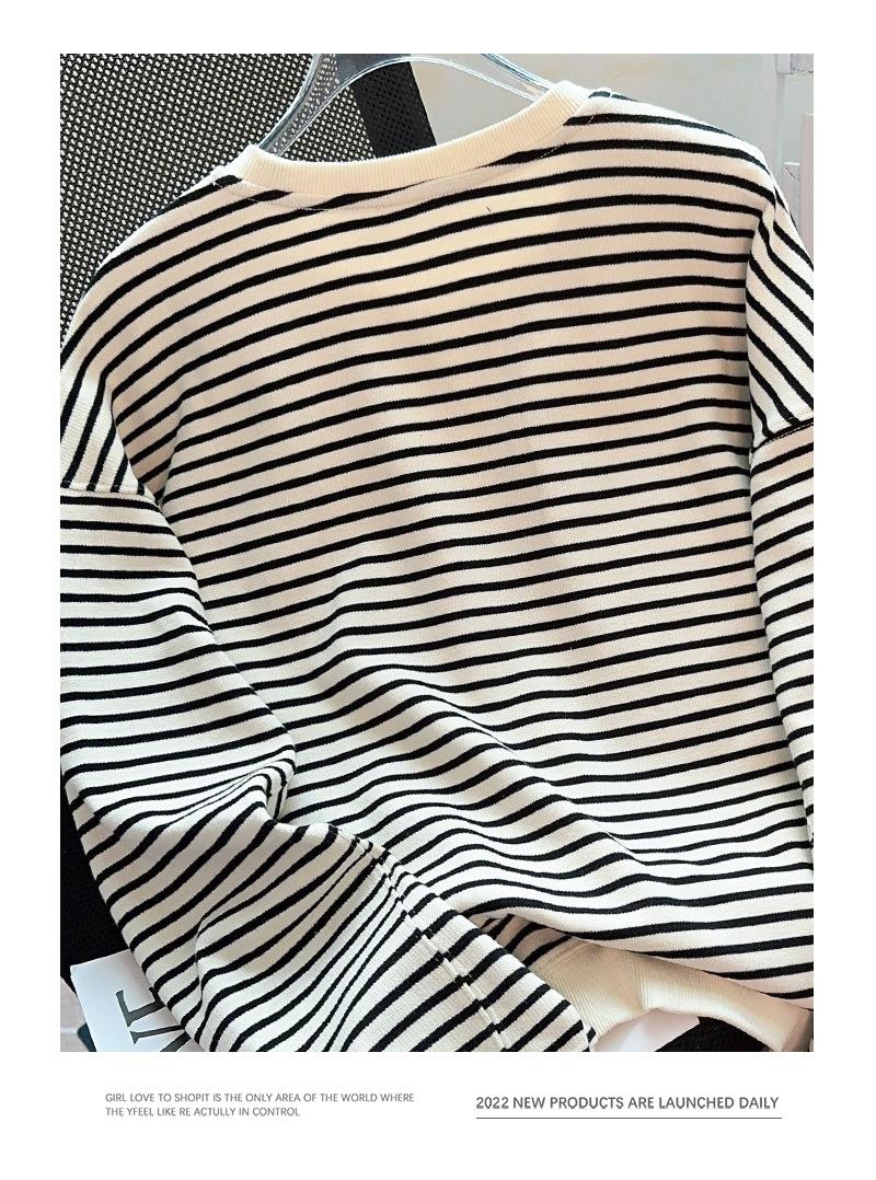 Suéter de cuello redondo para mujer, camiseta de manga larga a rayas finas para mujer, otoño e invierno, nueva ropa de abrigo superior holgada de talla grande para mujer