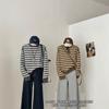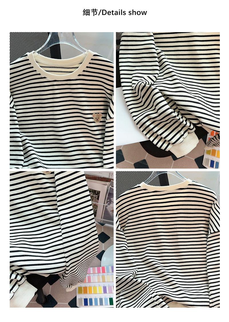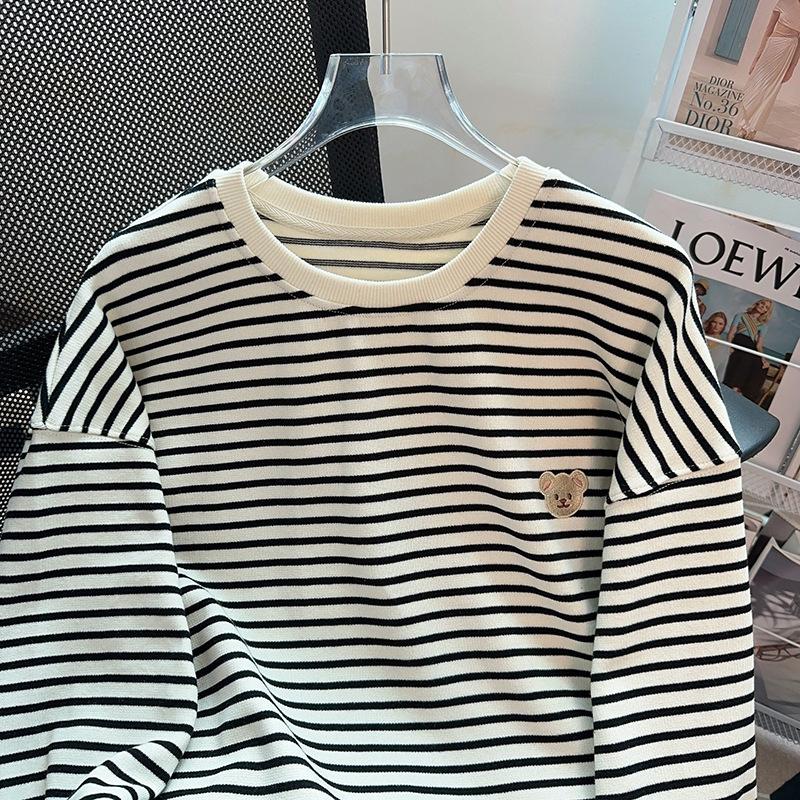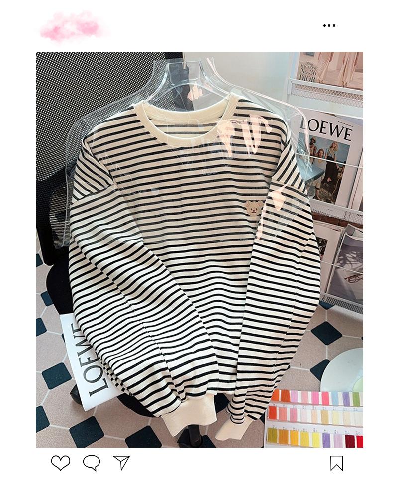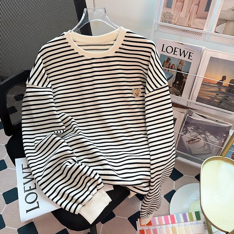 Suéter de cuello redondo para mujer, camiseta de manga larga a rayas finas para mujer, otoño e invierno, nueva ropa de abrigo superior holgada de talla grande para mujer