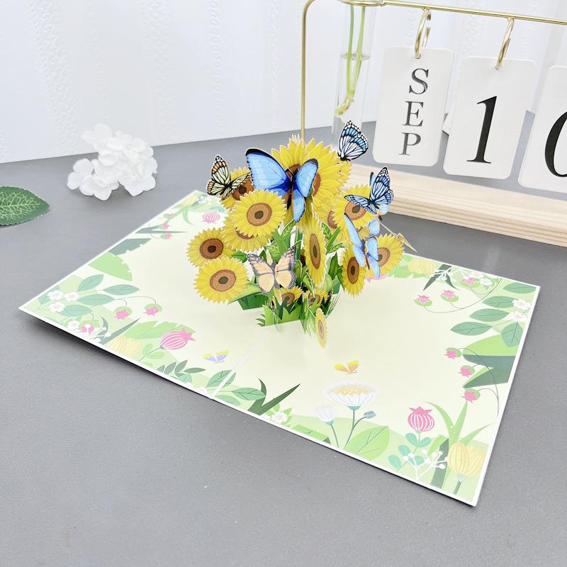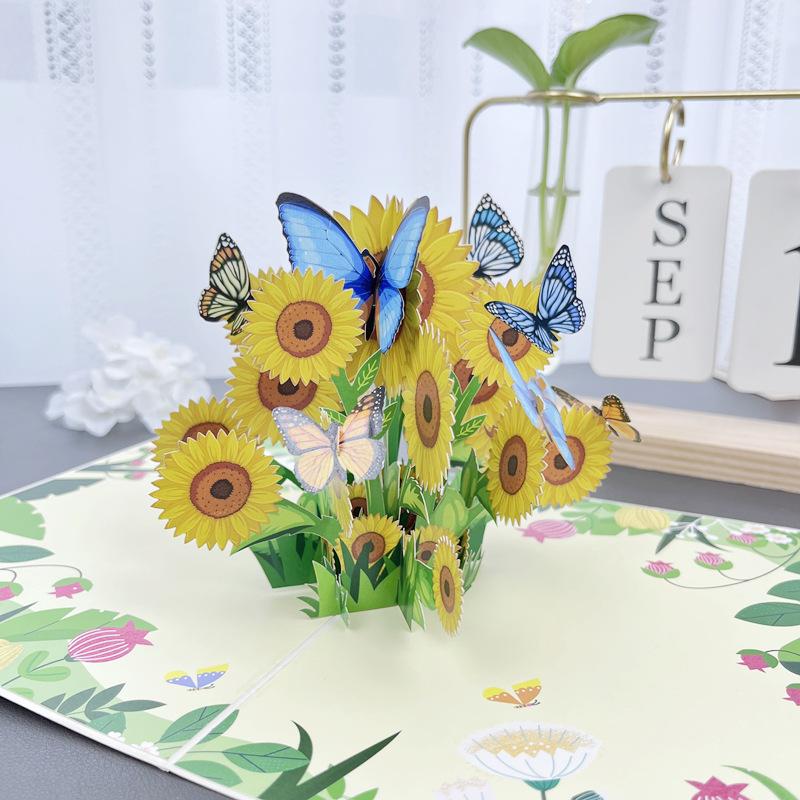 Día del Maestro Tarjeta de Felicitación Estéreo 3D Ramo de Girasoles Tarjeta Hecha a Mano Cumpleaños Estéreo Creativa Bendición Papel Calado Amazon