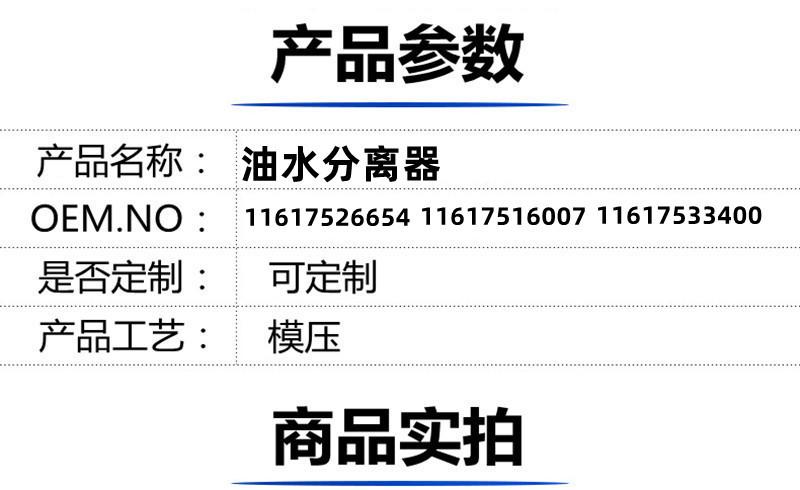 Aplicable al separador de aceite y agua de BMW 11617526654 11617516007 11617533400