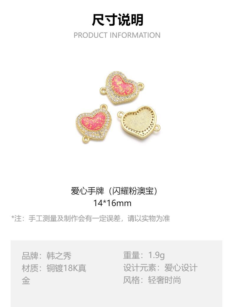 Exquisito colgante pequeño de diamante de color 18k chapado en cobre con forma de corazón, ideal para hacer collares, pulseras y pendientes, accesorios de joyería.