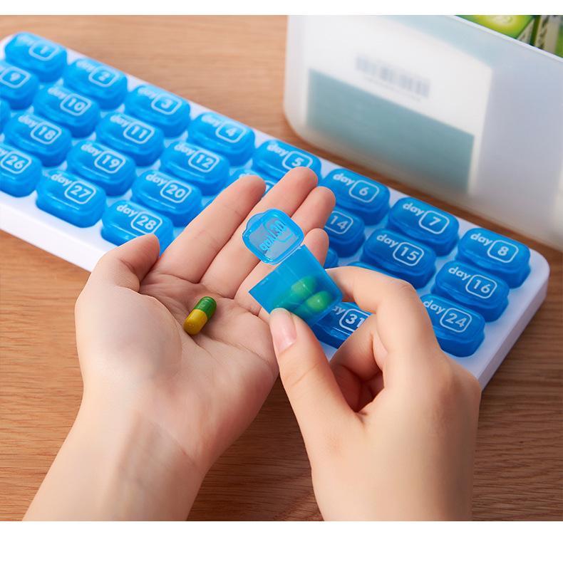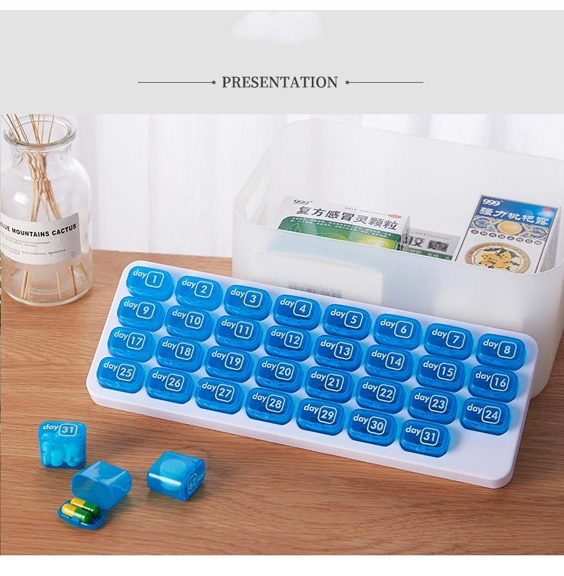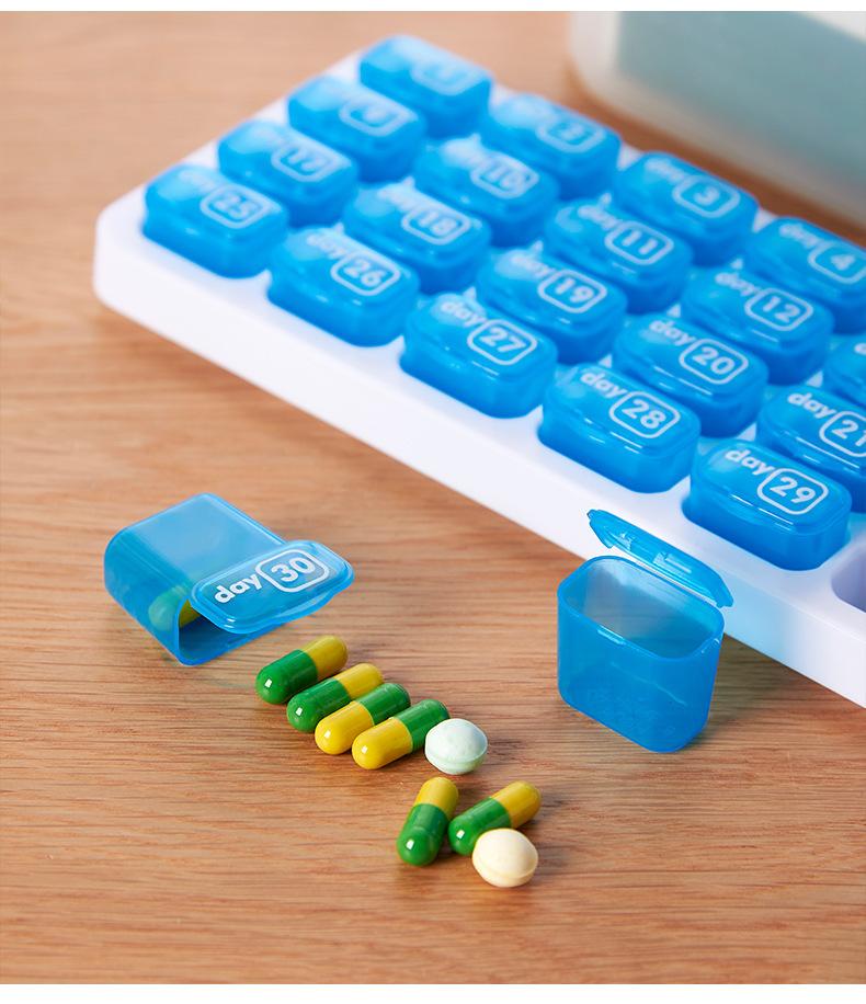 Caja de medicamentos pequeña portátil de 31 compartimentos, almacenamiento independiente, caja de medicamentos digital para pastillas, transparente, caja de medicamentos familiar