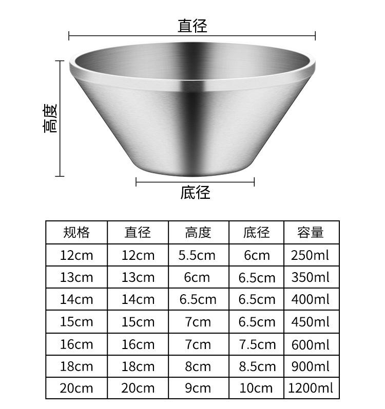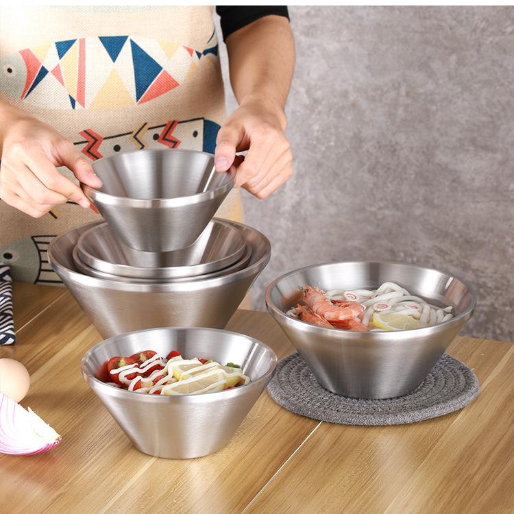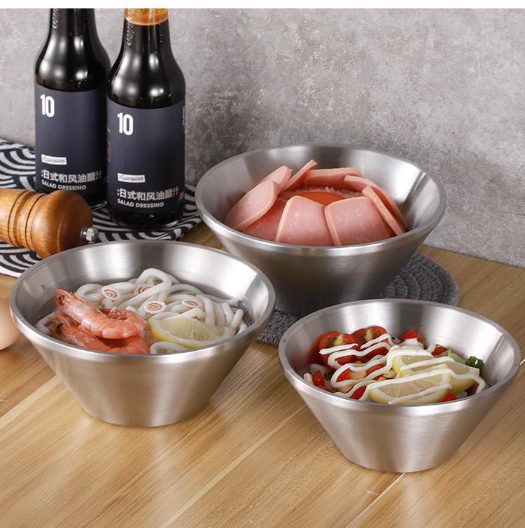 Compra Tazón en V de Acero Inoxidable 304, Tazón V de Doble Capa Lijado, Ensaladera Aislada, Tazón para Ramen, Tazón para Helado, Mejora Aislada al por mayor en Joom.pro