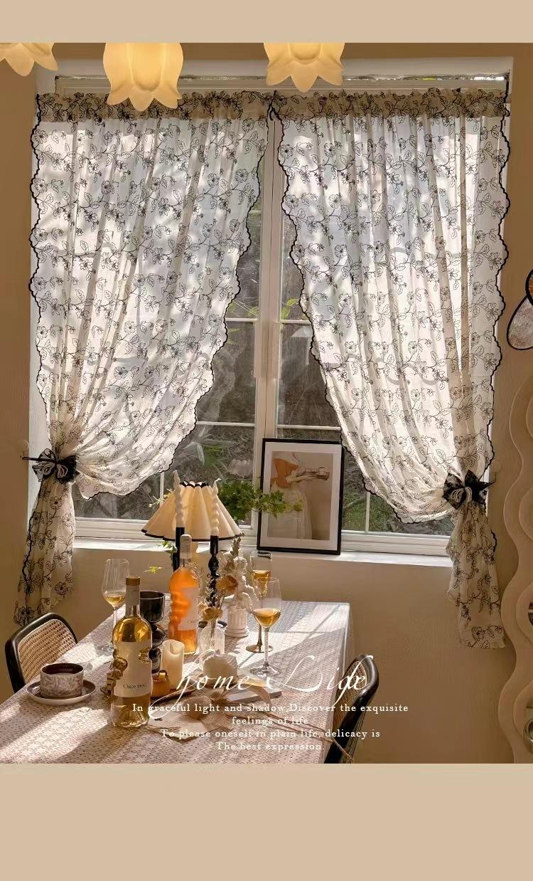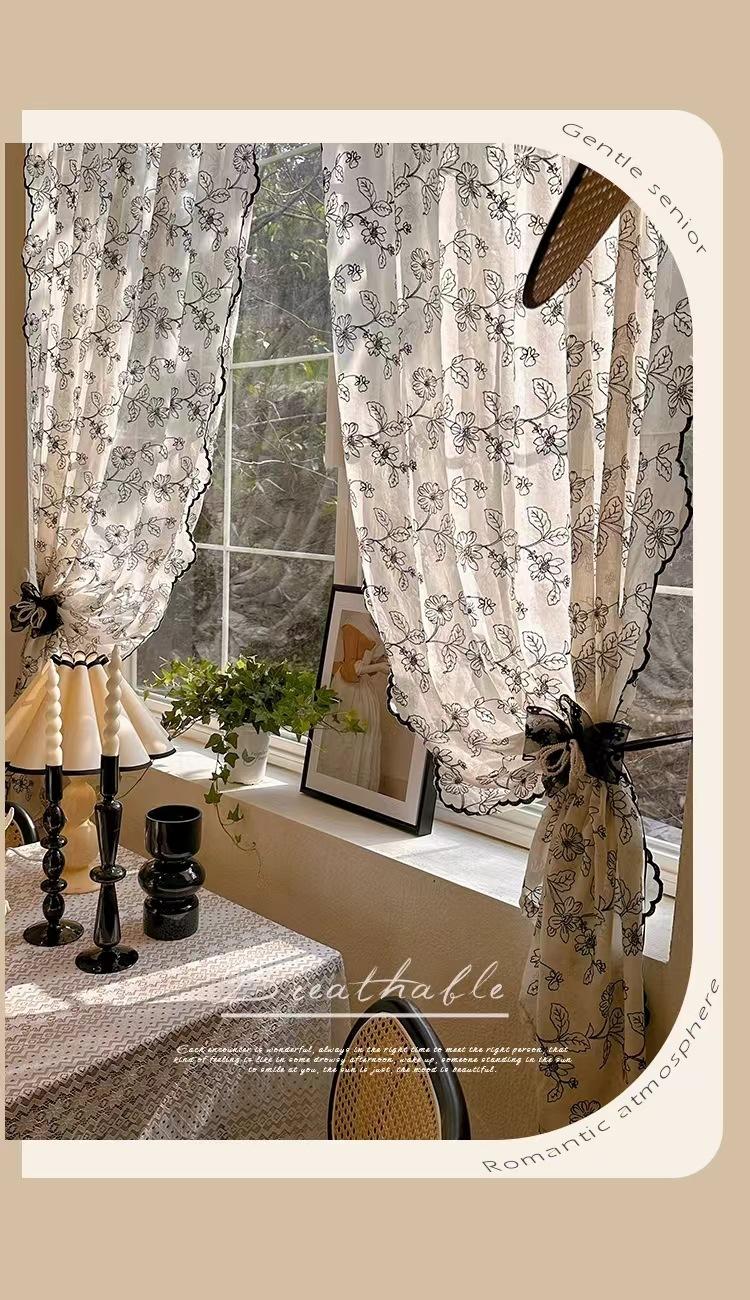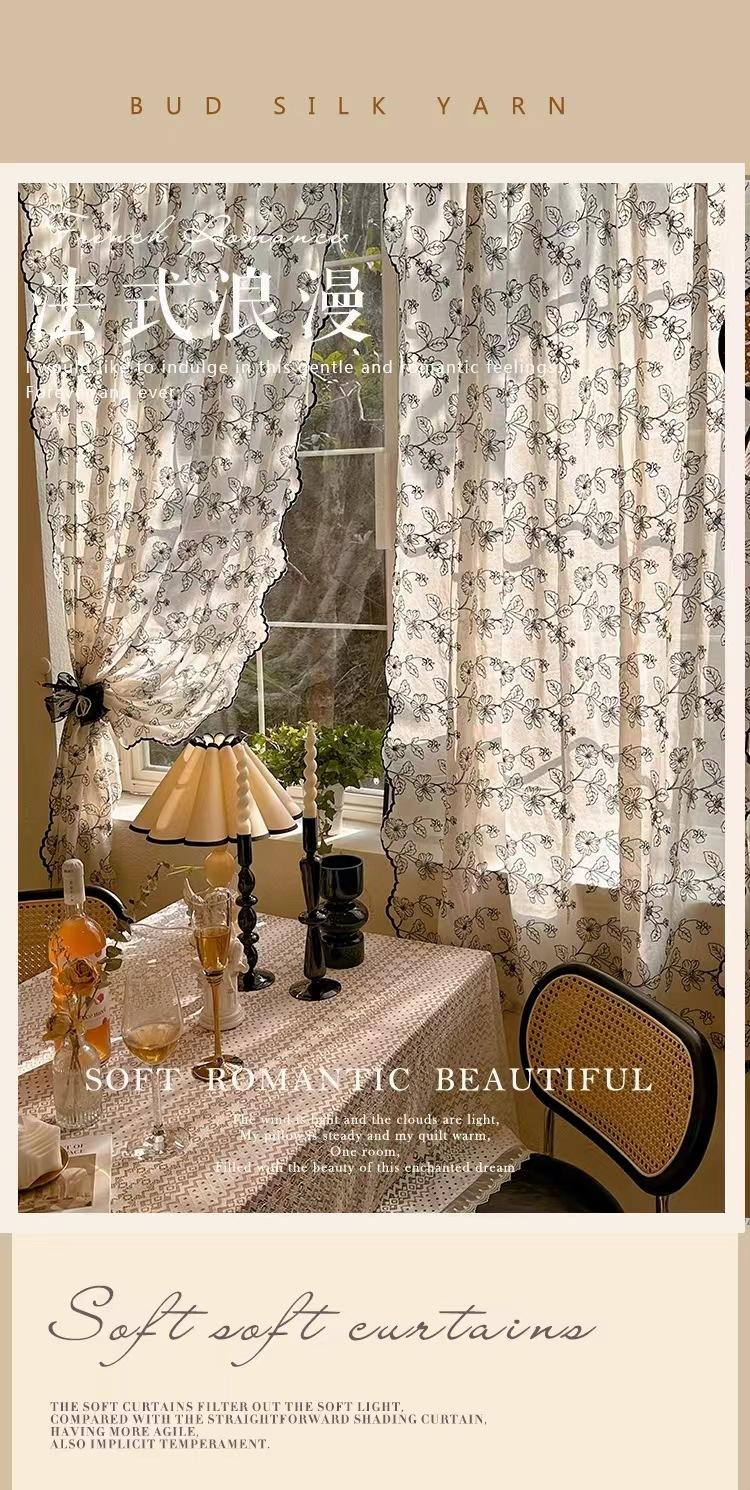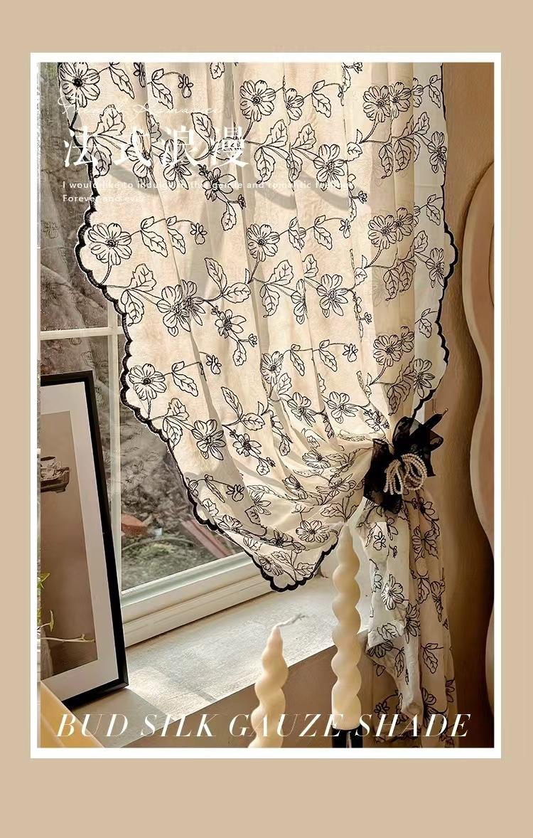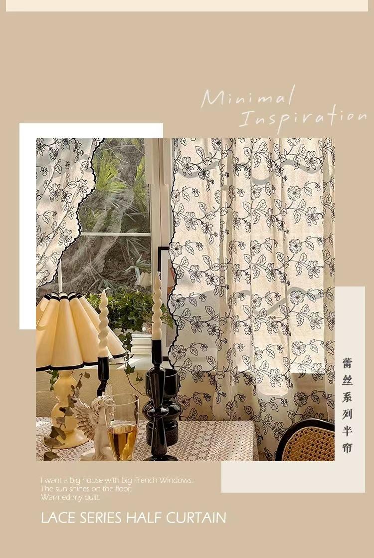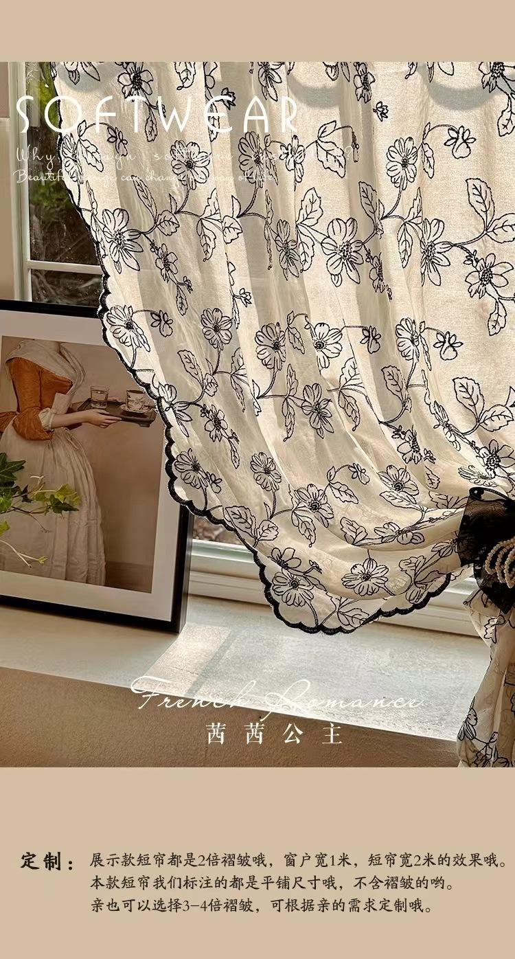 Cortina de media luna con bordado de encaje artístico francés, ligera, de lujo, estilo retro, para ventana de dormitorio, partición sin perforaciones, cortina avanzada