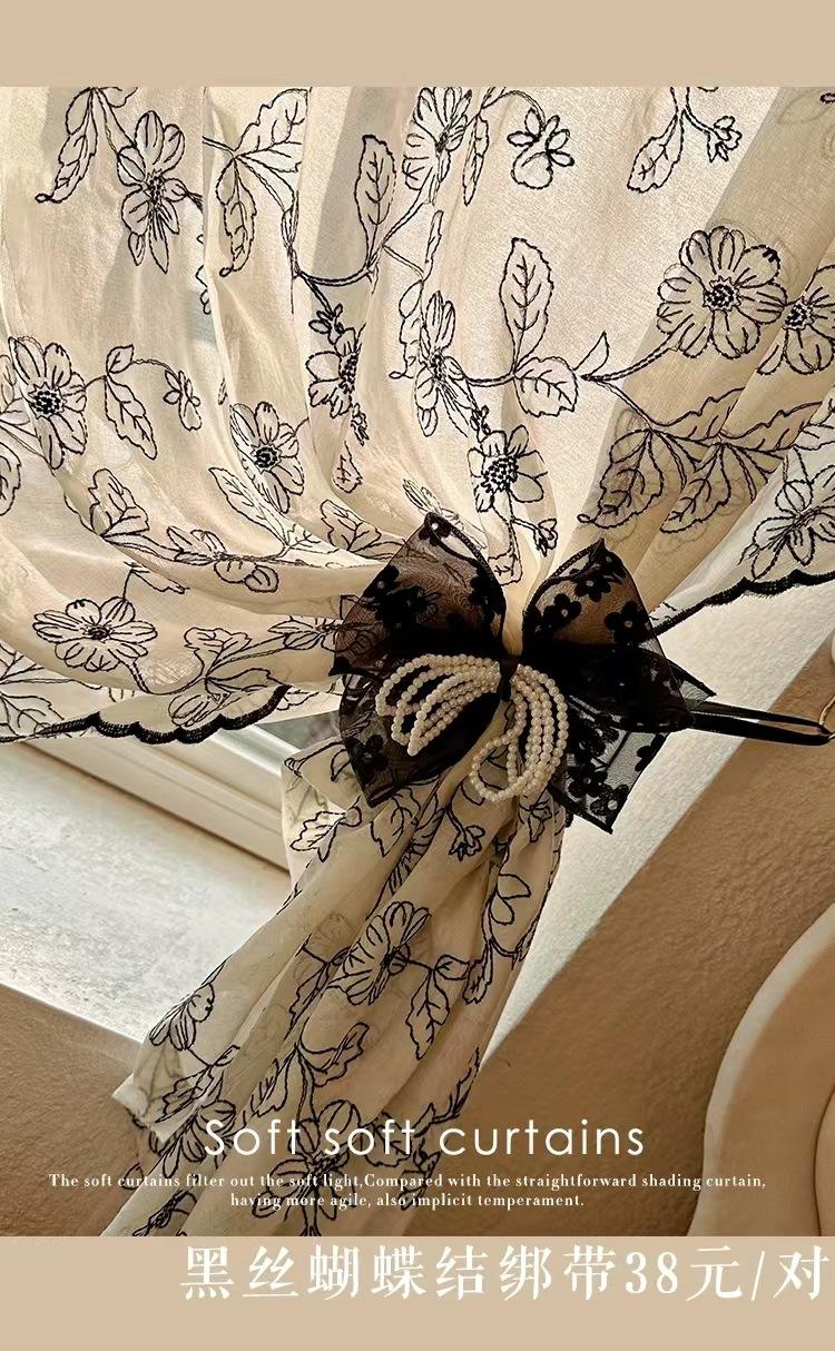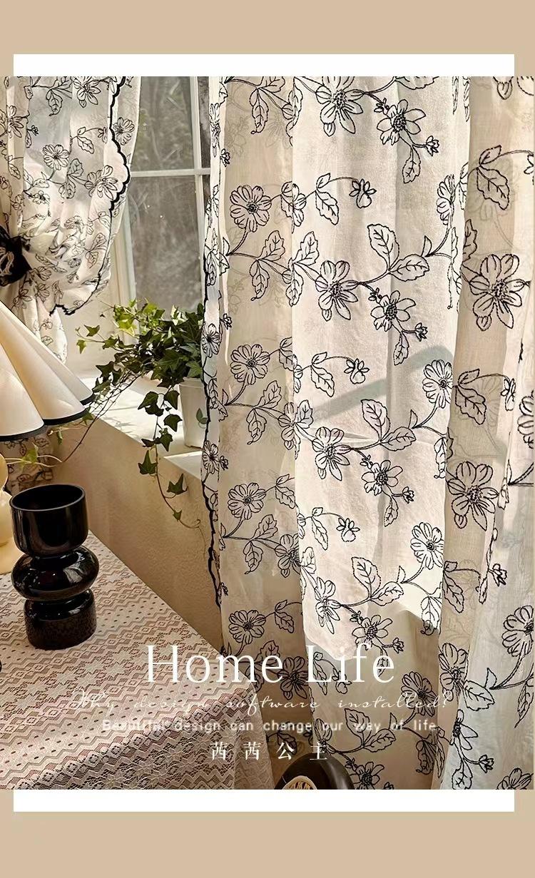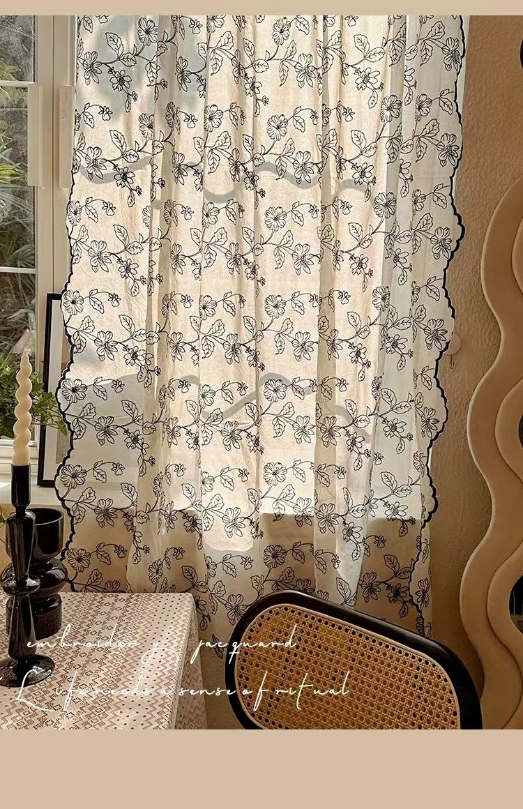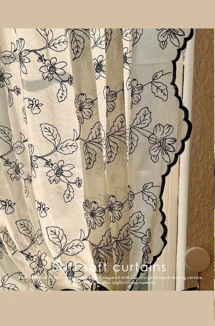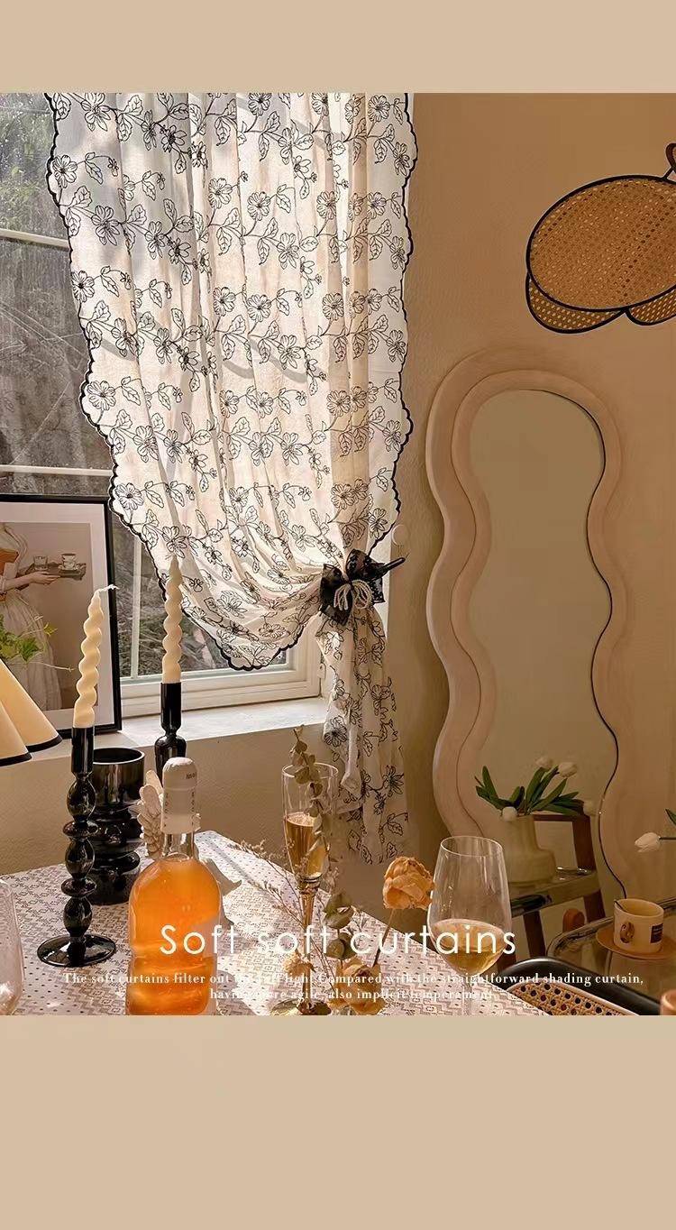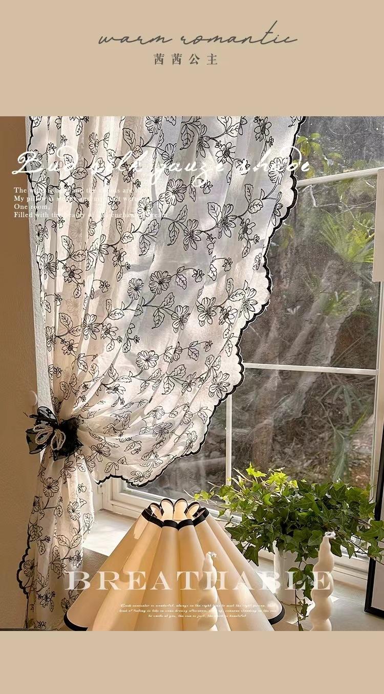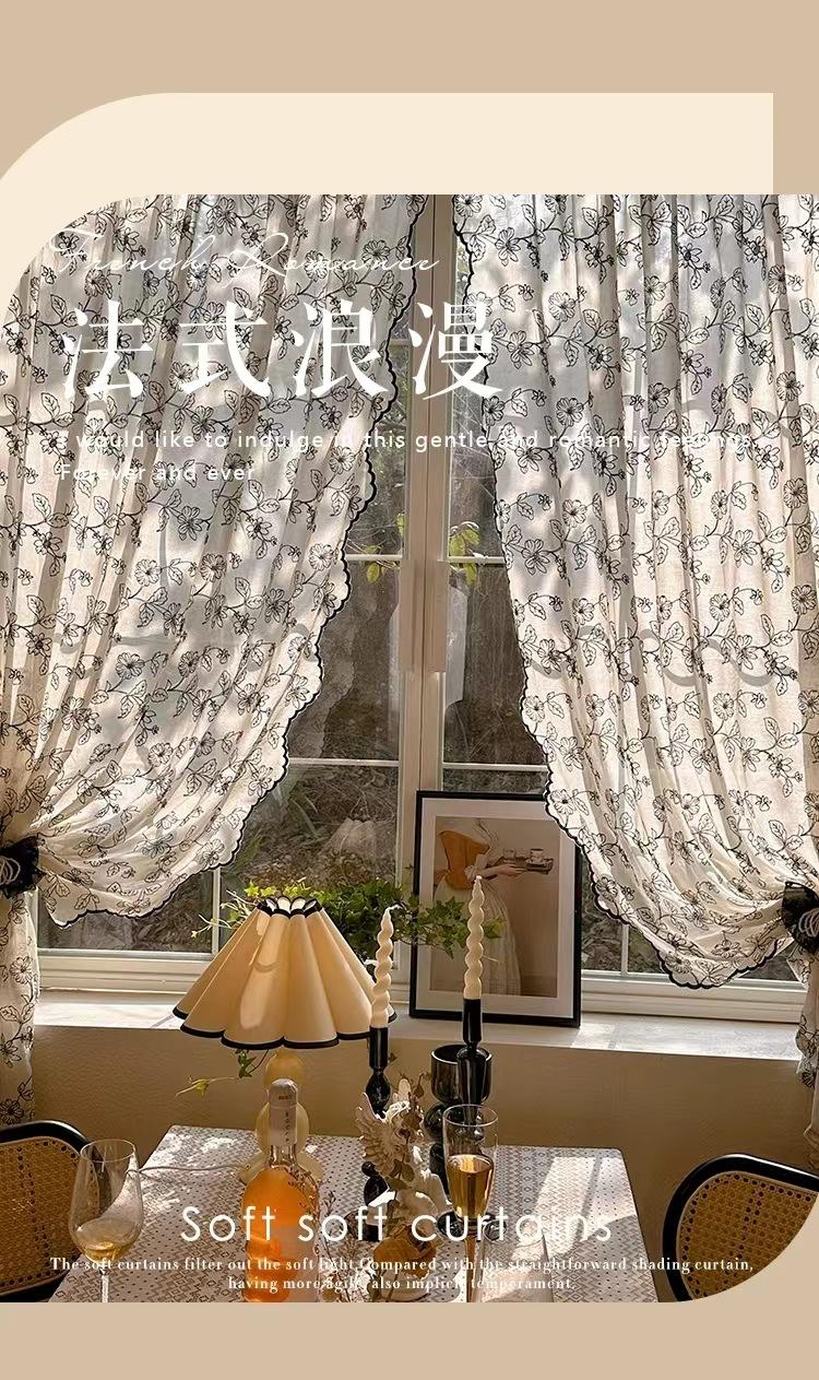 Cortina de media luna con bordado de encaje artístico francés, ligera, de lujo, estilo retro, para ventana de dormitorio, partición sin perforaciones, cortina avanzada