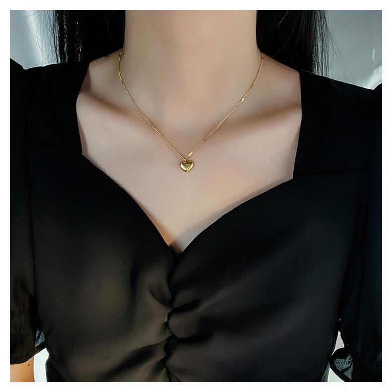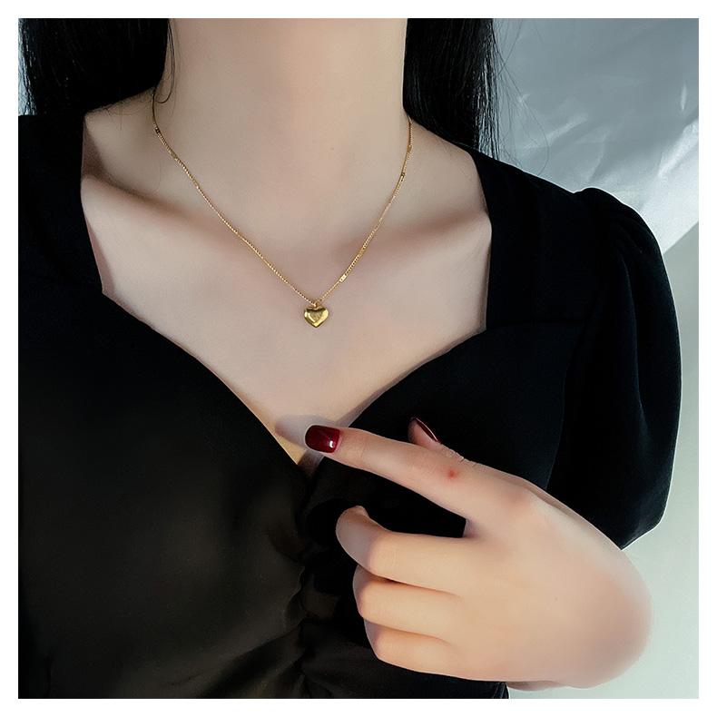 Golden little heart, Small square necklace-full body titanium steel, Love necklace, Small waist circle pendant...