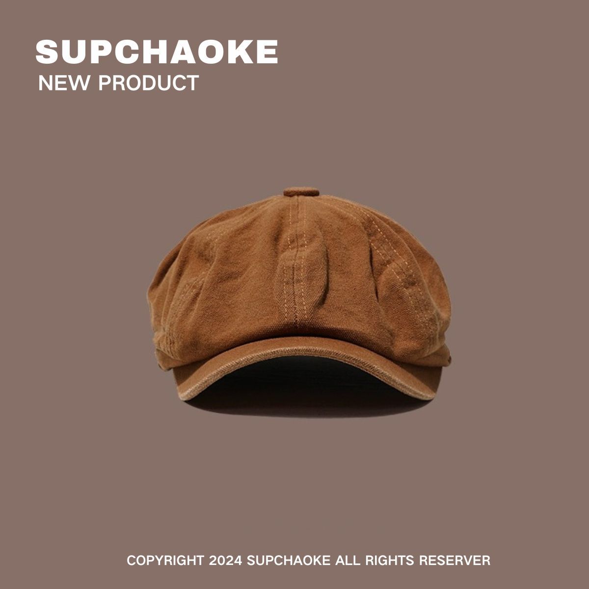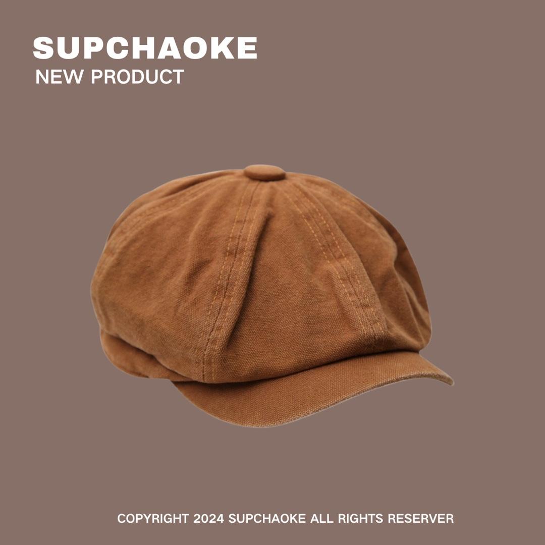 Sombrero Gorra de Primavera y Verano para Mujer Estilo Coreano Trendy para Hombre Británico Combinable Vintage Boina Octagonal de Repartidor Boina de Pintor
