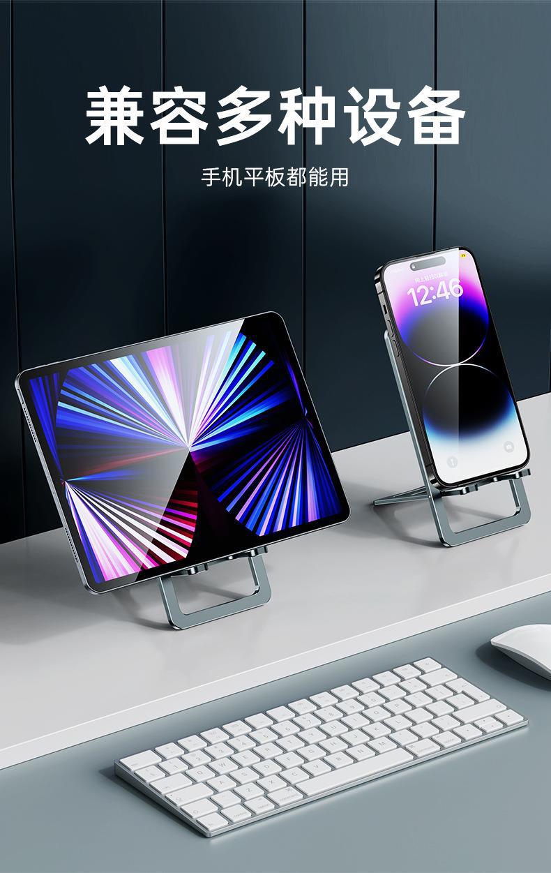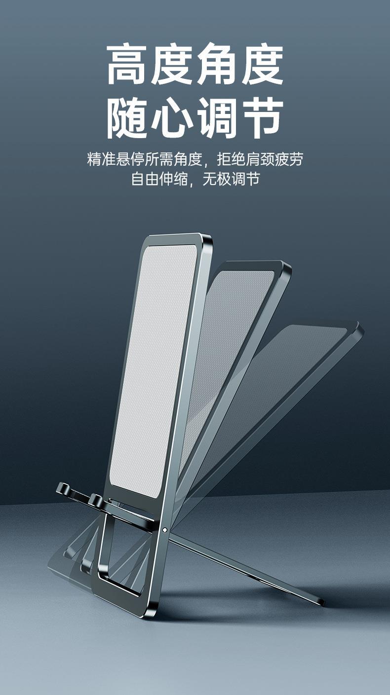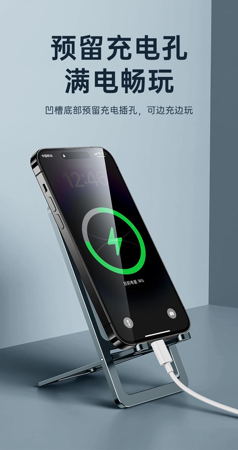 Soporte para teléfono móvil de escritorio para oficina, soporte de metal portátil de aleación de aluminio, plegable en vivo, nuevo, venta al por mayor transfronteriza