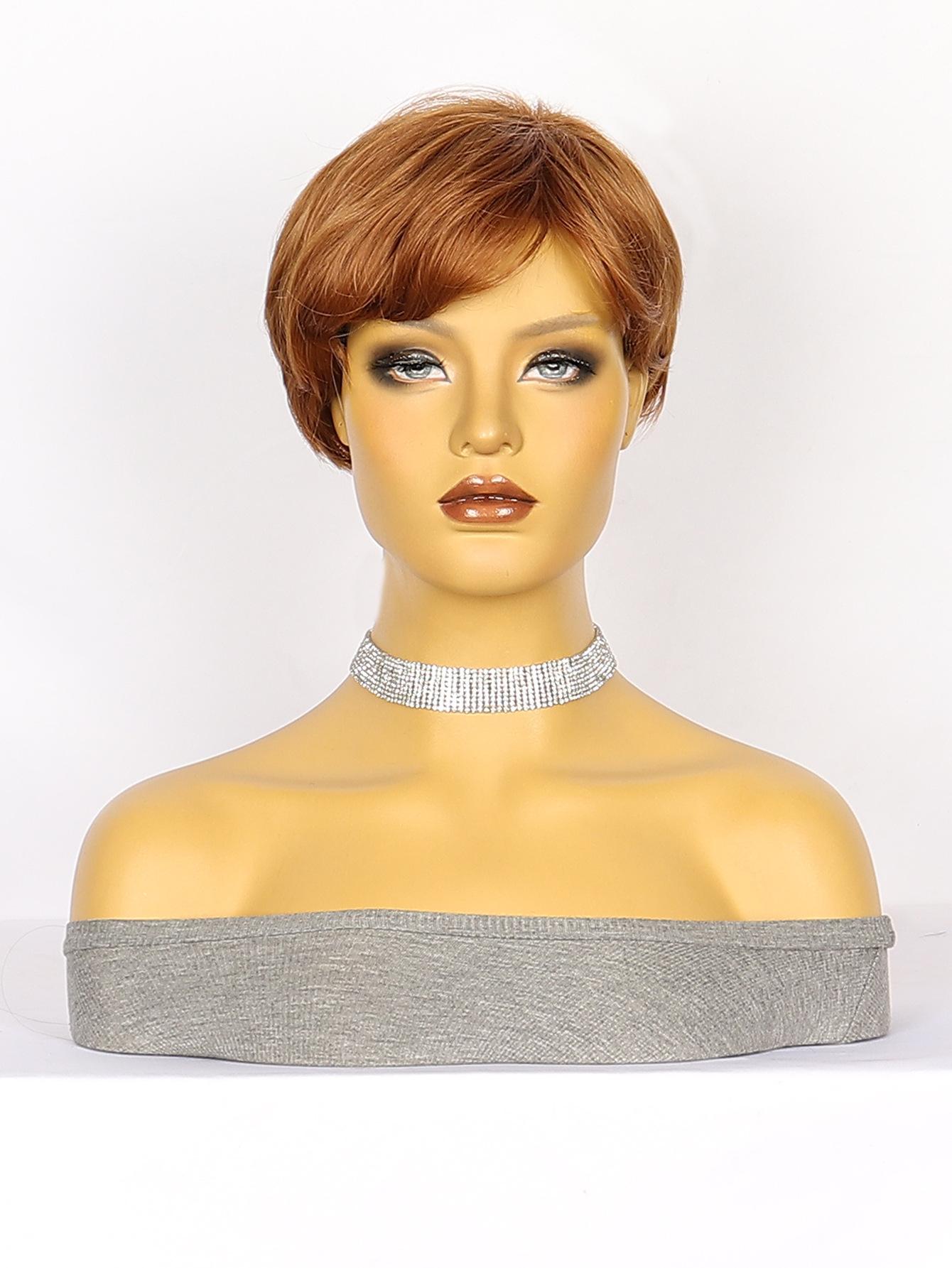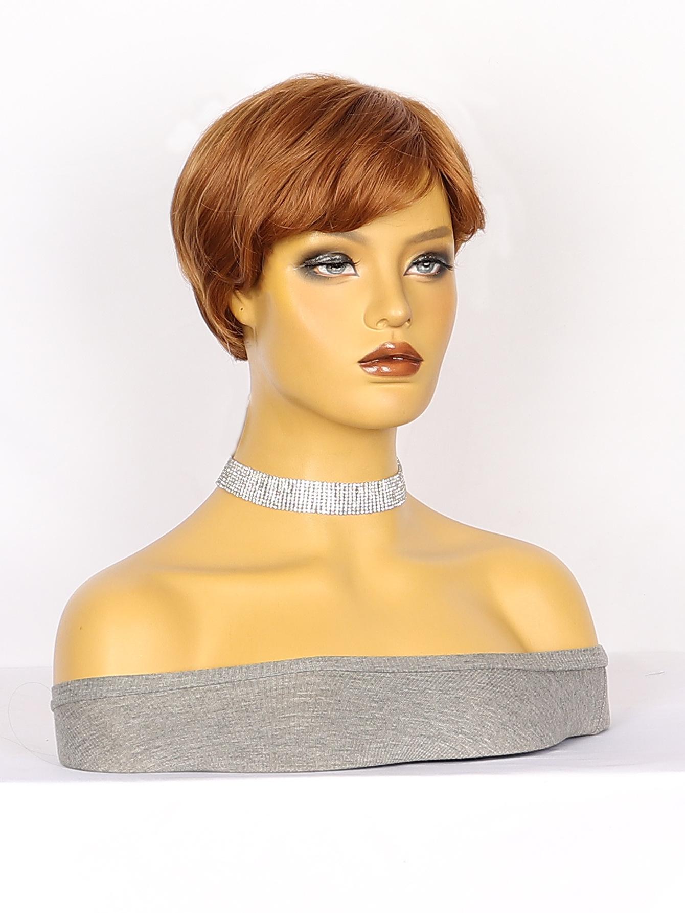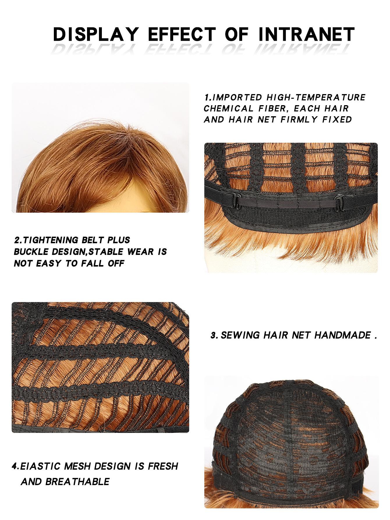 ![]() Pelucas Pelucas transfronterizas europeas y americanas, tocado de fibra química con encaje frontal tejido a mano, 13*4*1T, cabello corto y liso con raya al medio