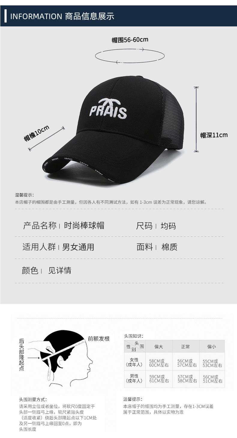 Sombrero de Verano para Hombre y Mujer Nuevo Alargado 10cm Bordado Parasol Protector Solar Gorra de Béisbol para Exterior Pesca Gorra de Malla