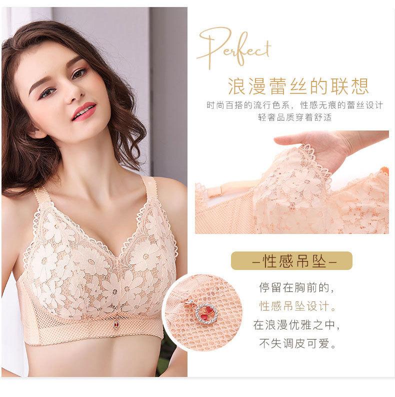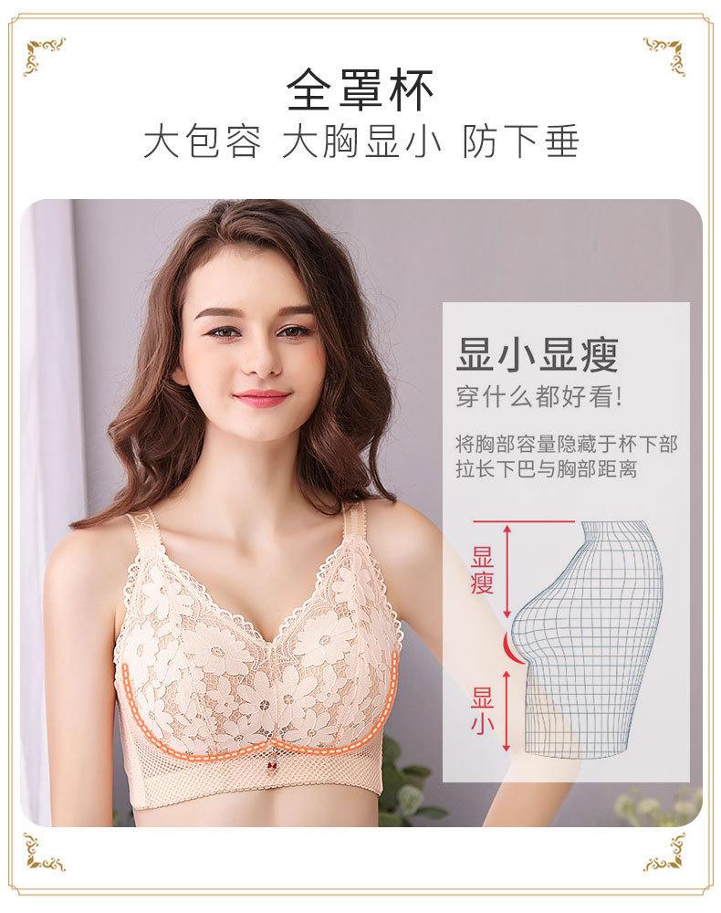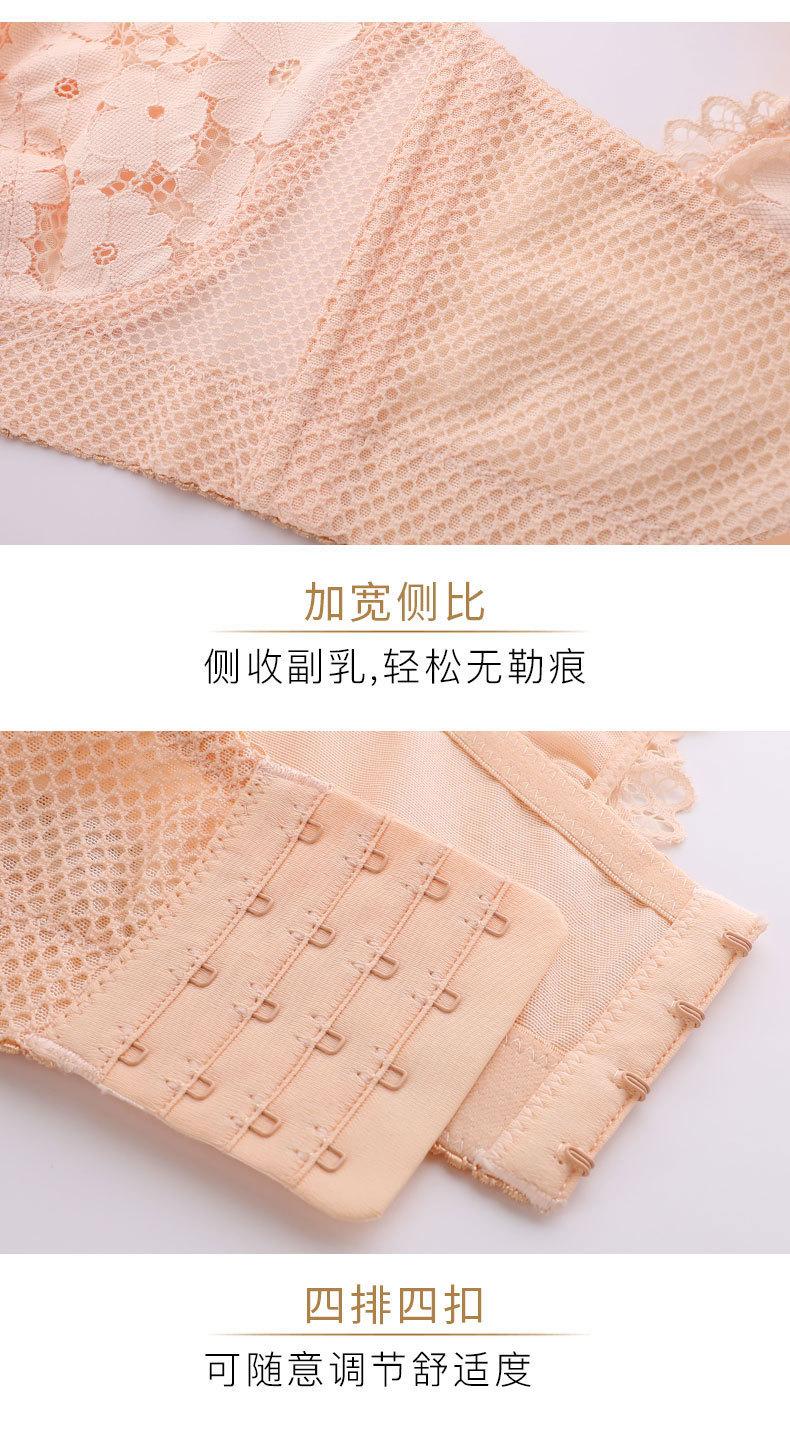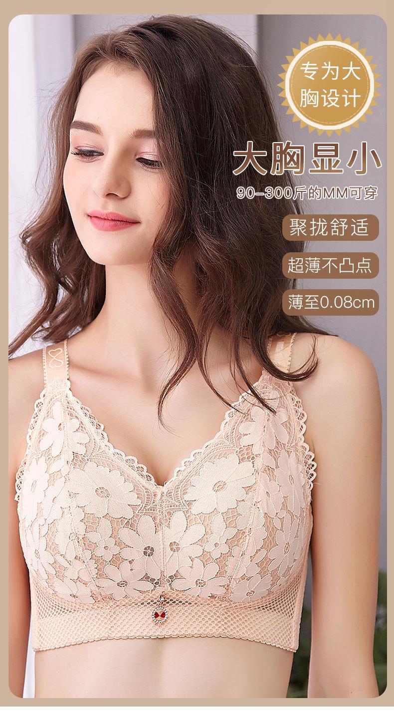 Ropa interior de estilo francés para mujer, fina, de verano, sin aros de acero, con pecho grande, fruncido pequeño, pechos auxiliares, bonito sujetador ajustable en la espalda.