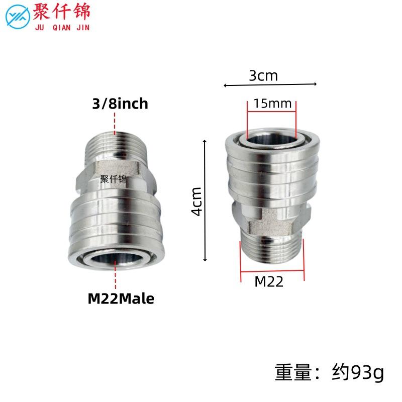 Kit de desconexión rápida para accesorios de hidrolavadoras de acero inoxidable transfronterizos M22-14 3/8 conexión rápida a prueba de explosiones