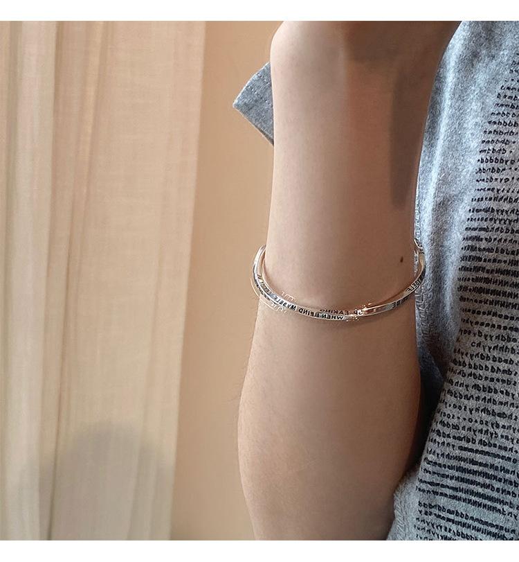 Pulsera Moebius de Plata Esterlina sensación abierta giro inglés letra diseño nicho simple lujo ligero estilo frío
