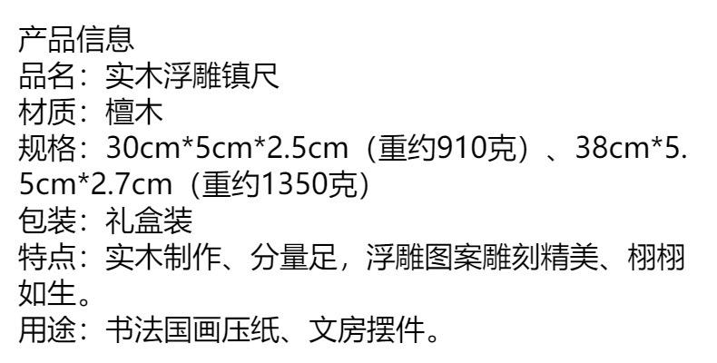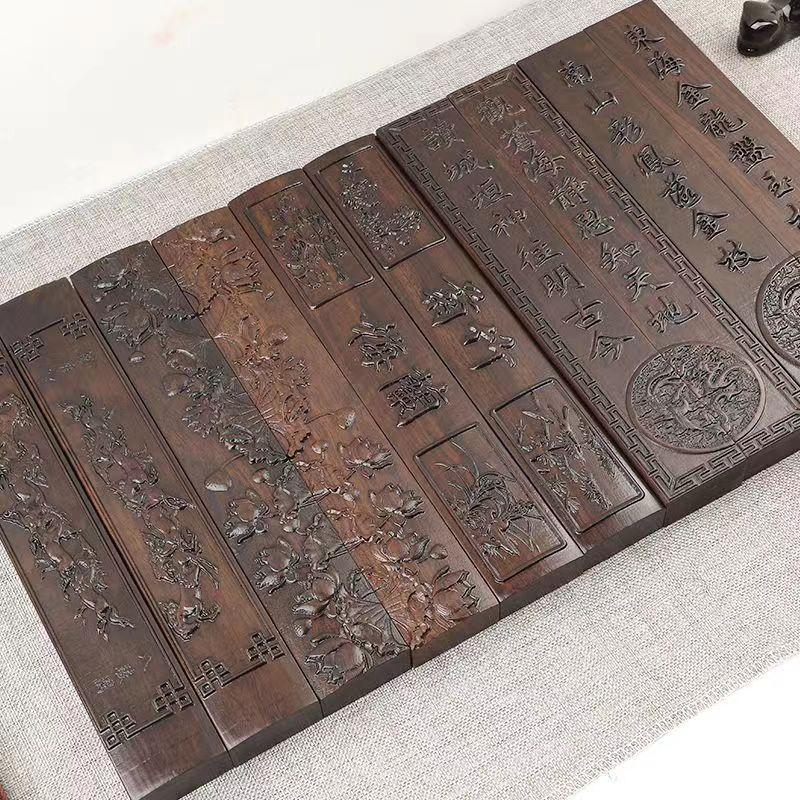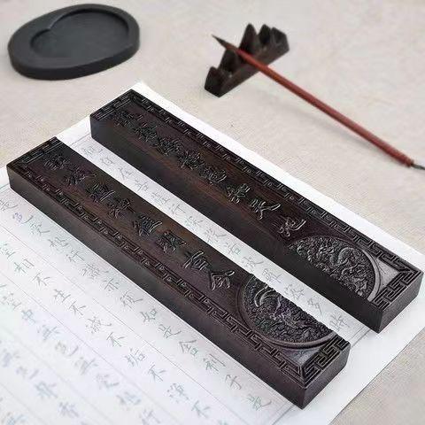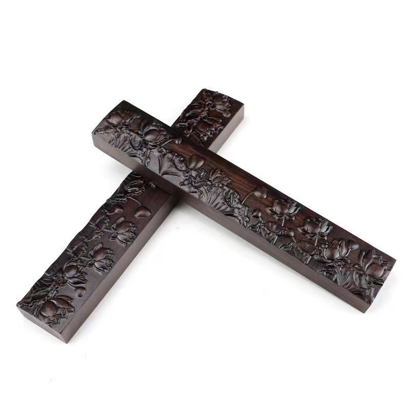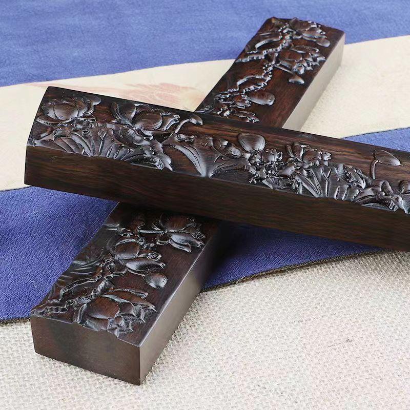 Regla de ébano, madera maciza, patrón en relieve, pisapapeles de caligrafía, libro de prensa, decoración de habitaciones, suministros de caligrafía y pintura para estudiantes, cajas de regalo