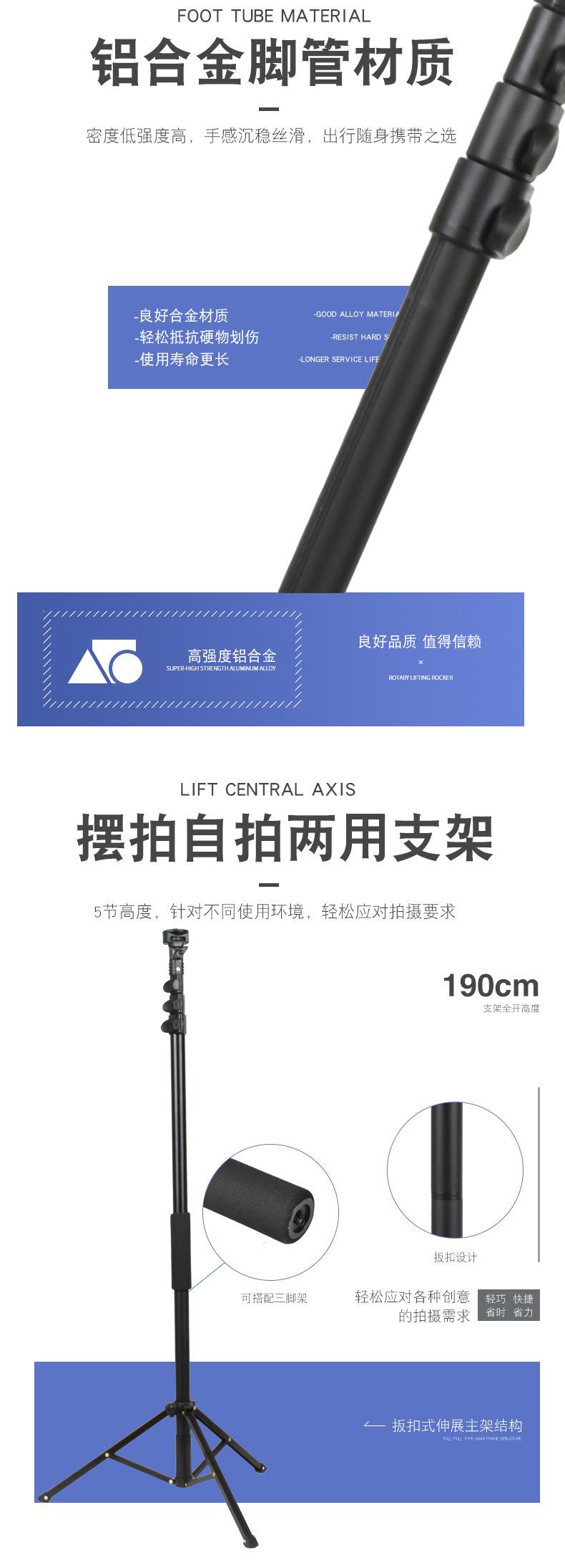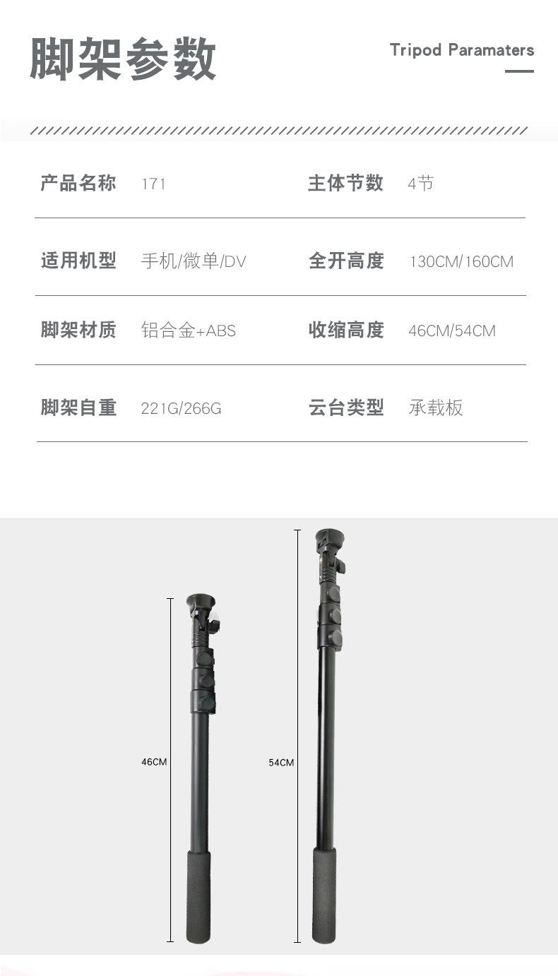 La parte inferior del palo selfie tiene una rosca 1/4 predeterminada, diámetro del tubo: 23.3-19.3-16.2-13.3mmDiámetro de tubo engrosado y engrosado Se pueden extender cuatro seccionesEl enlace es embalaje en bolsa PE (sin caja de papel ni bolsa de tela, por favor contacte con el servicio al cliente si lo necesita)