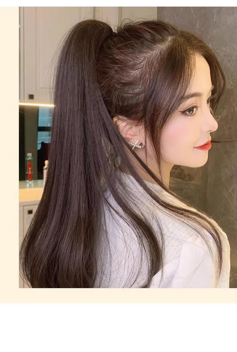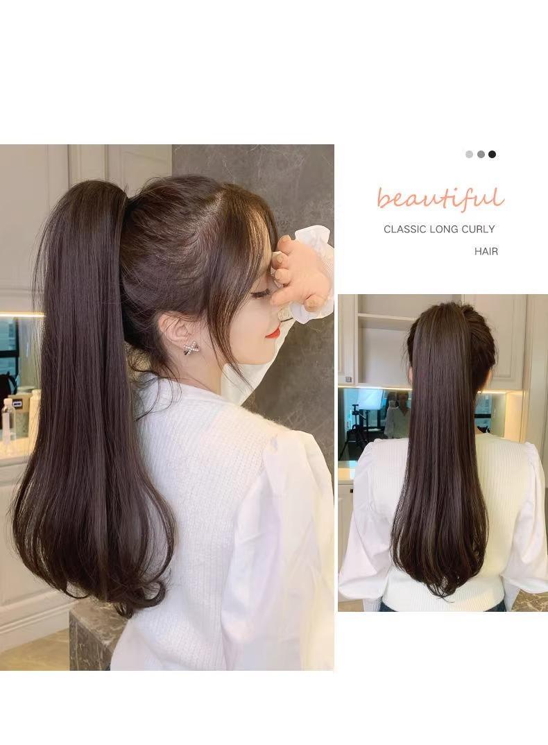 Peluca de mujer de pelo largo, cola de caballo alta, microrizada, con hebilla interior y clip, cola de caballo falsa, trenza, cabello artificial, cola de caballo natural, cola de caballo, primavera
