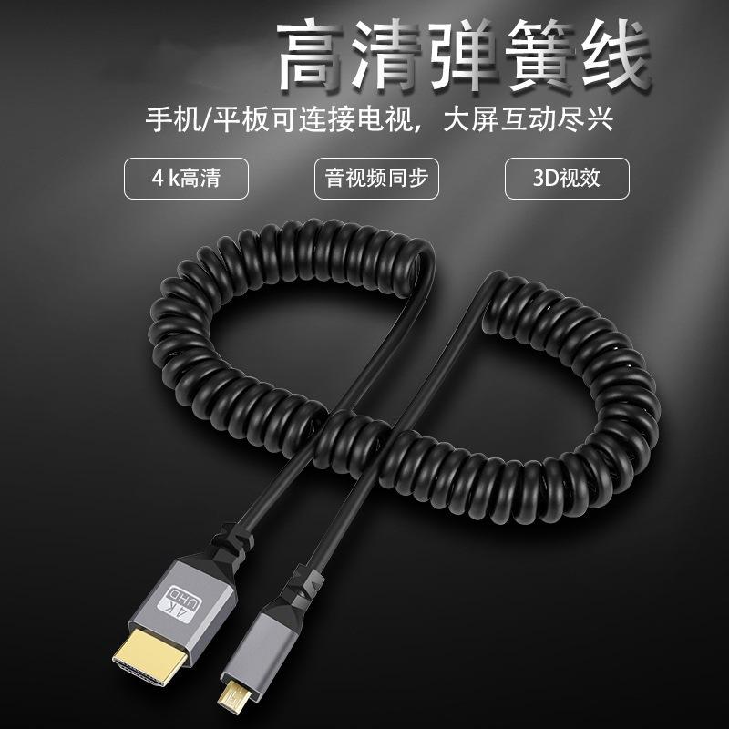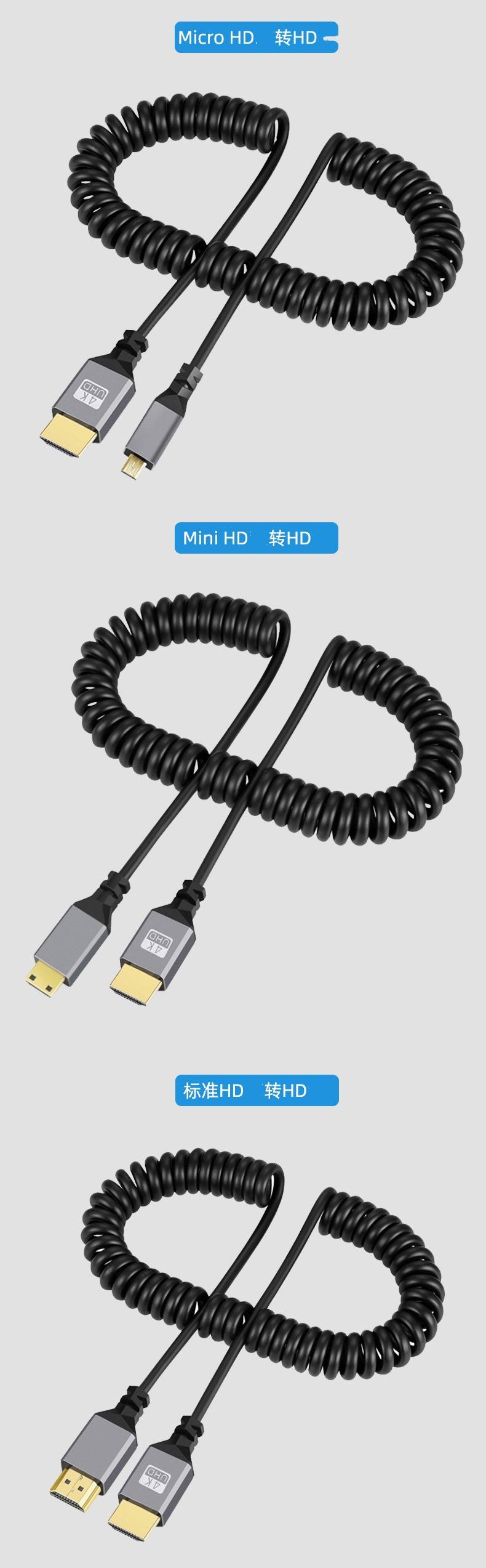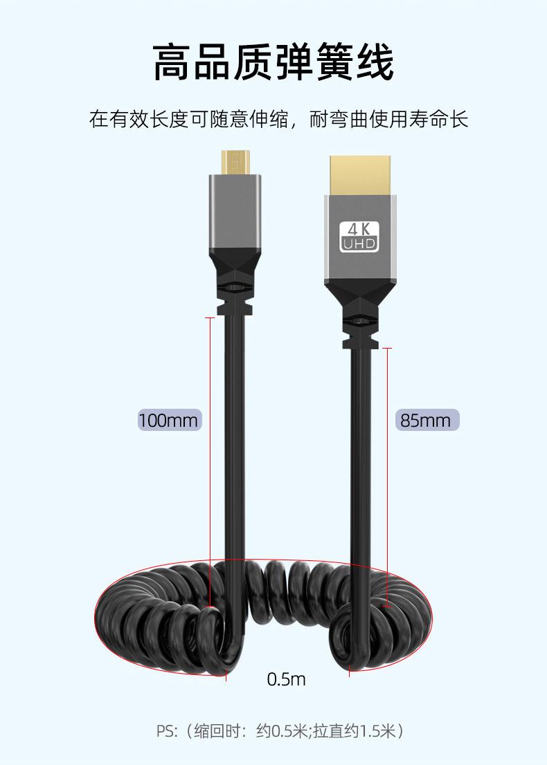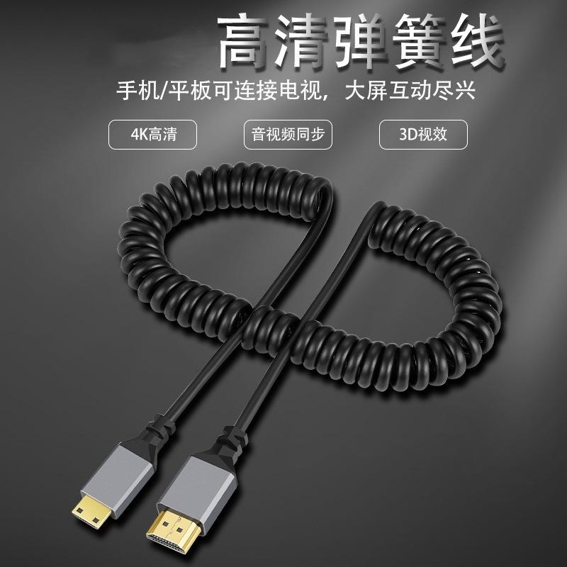 Cable de resorte mini HDMI a HDMI 2.0 para cámara réflex digital, pantalla micro D, cable HD retráctil