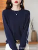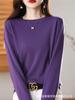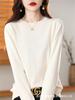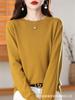 Suéter de algodón puro para mujer, cuello redondo, manga larga, combina con todo, color caramelo, suéter fino, camisa de fondo, venta al por mayor transfronteriza para mujer