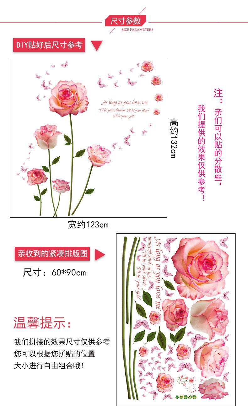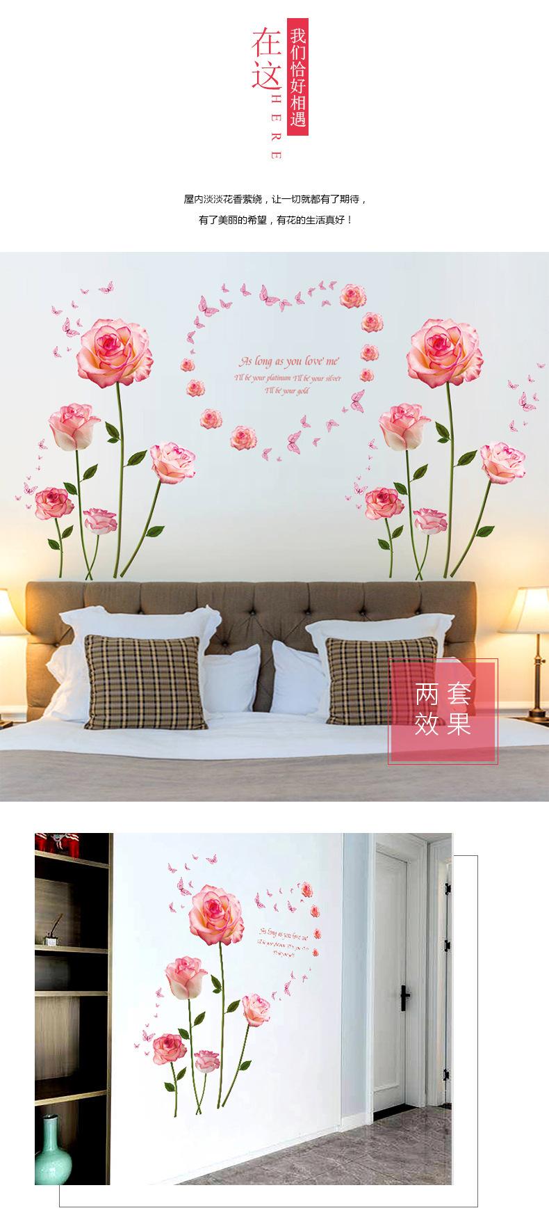 Adhesivo de Pared Rosa Nueva Simple y Elegante Dormitorio Sala de Estar Entrada Puerta de Baño Pared de TV Adhesivo Decorativo SK9337