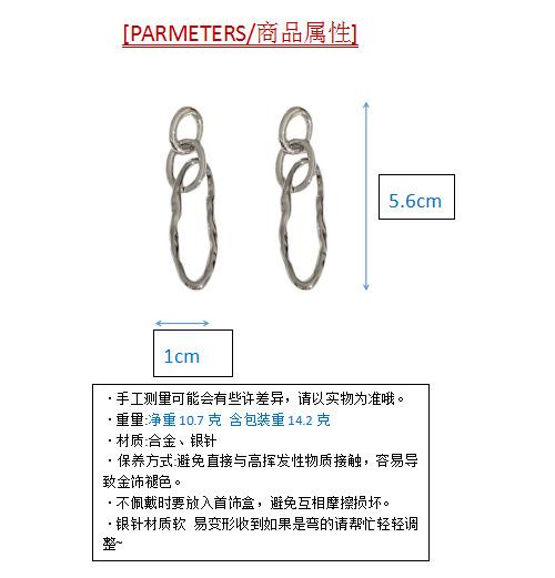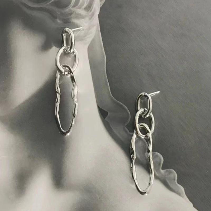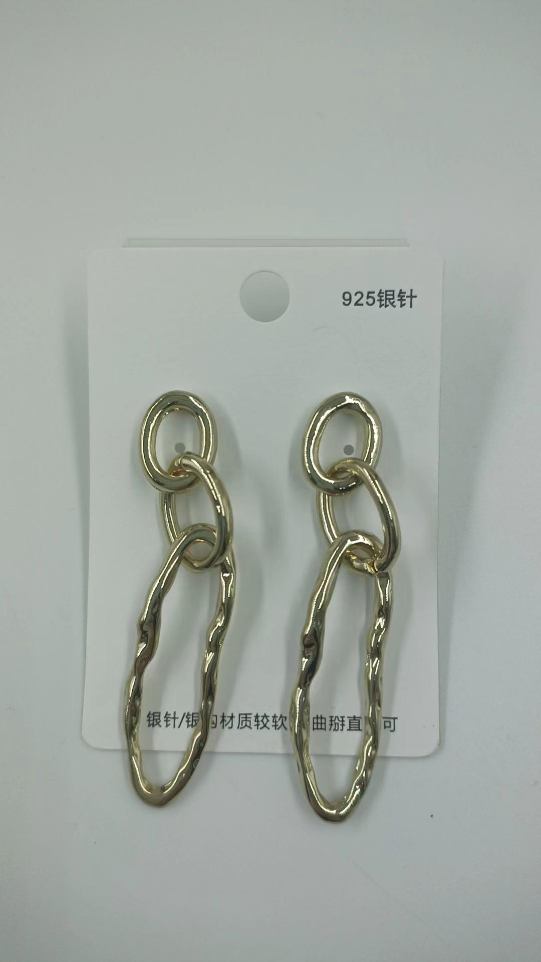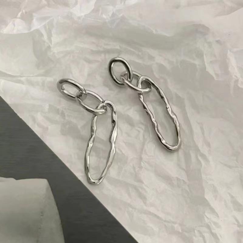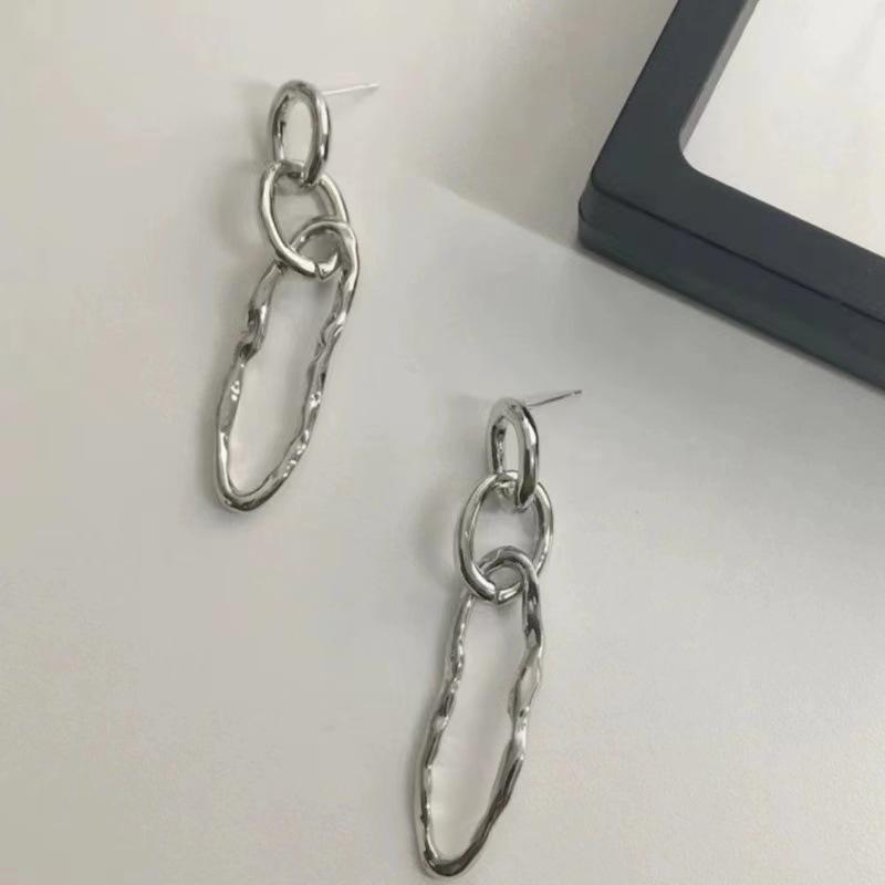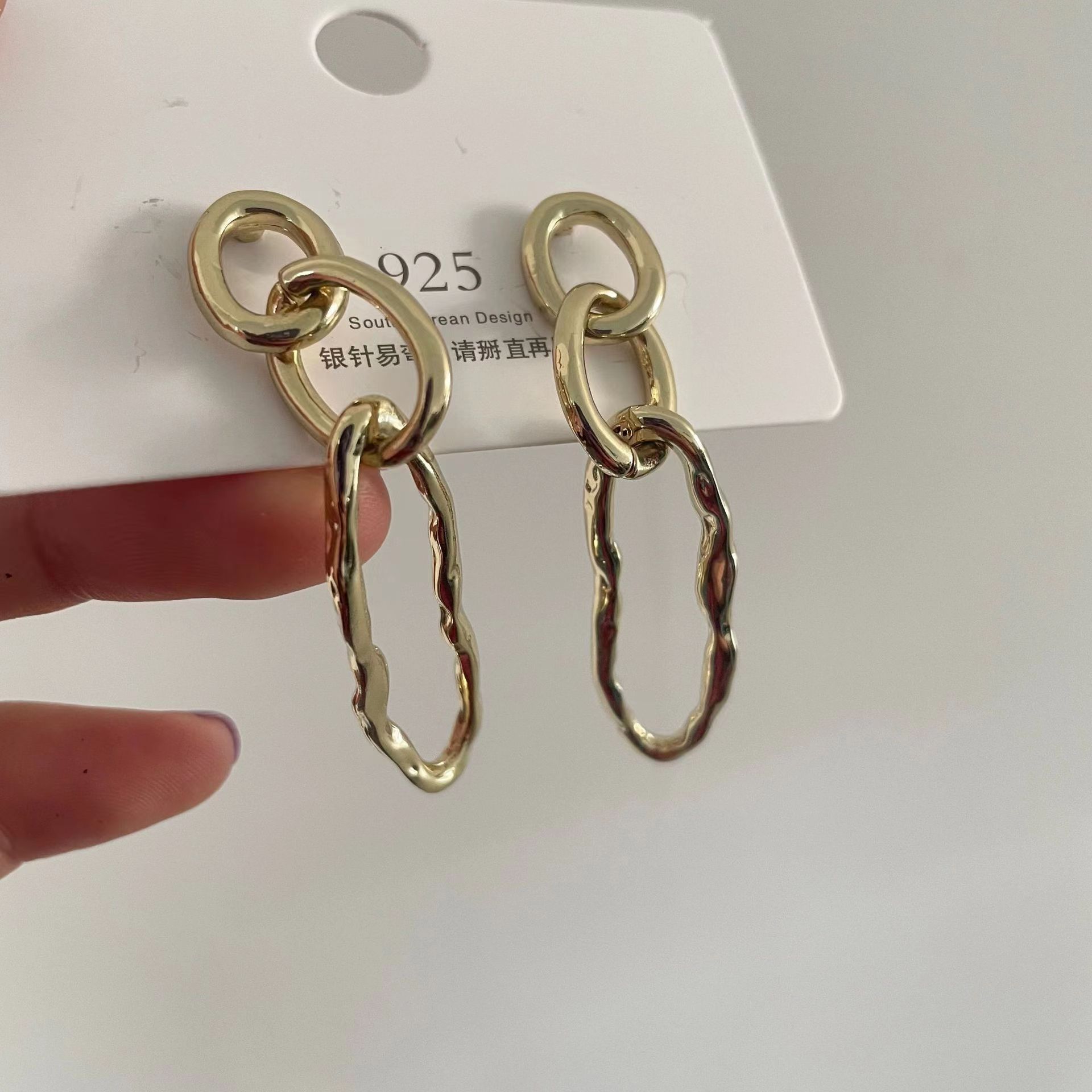 Pendientes con hebilla de anillo de metal de nuevo estilo, aguja de plata S925 para mujer, adelgazamiento, textura de temperamento de Corea del Sur, pendientes personalizados de estilo lujoso y ligero de moda.