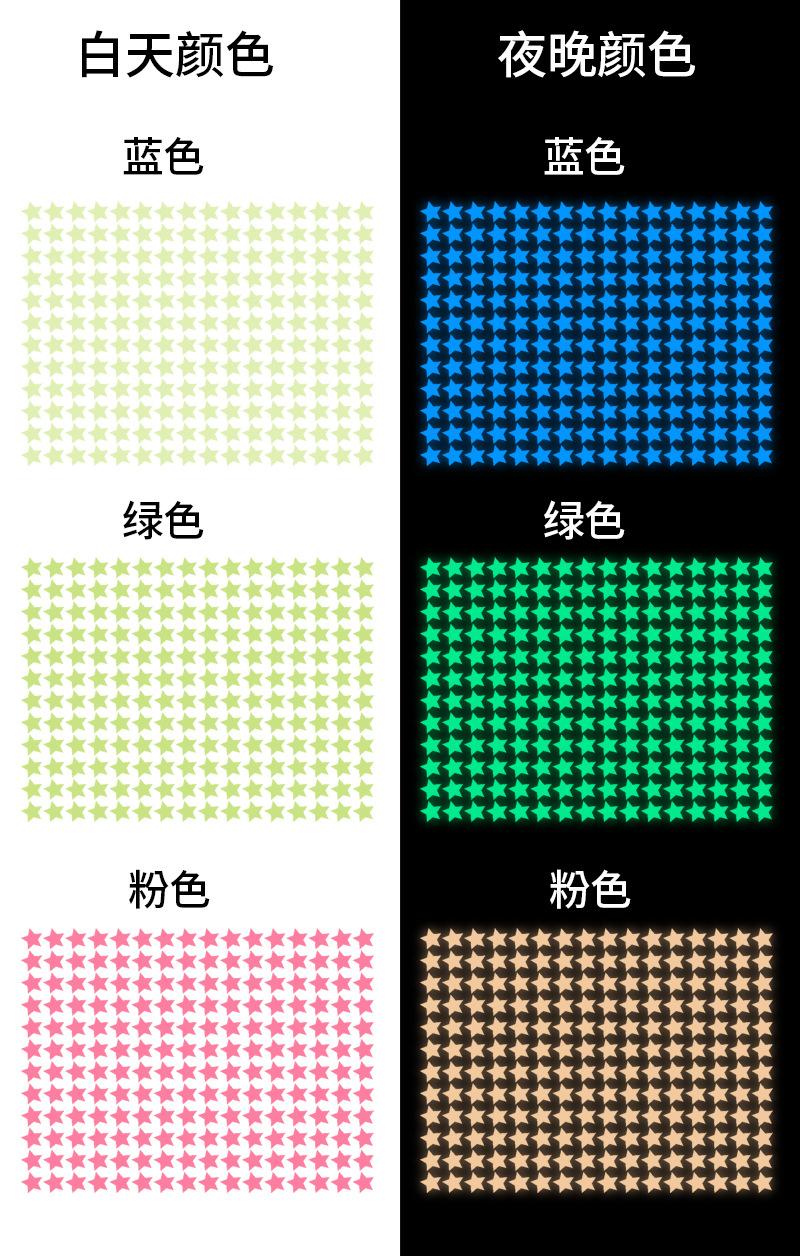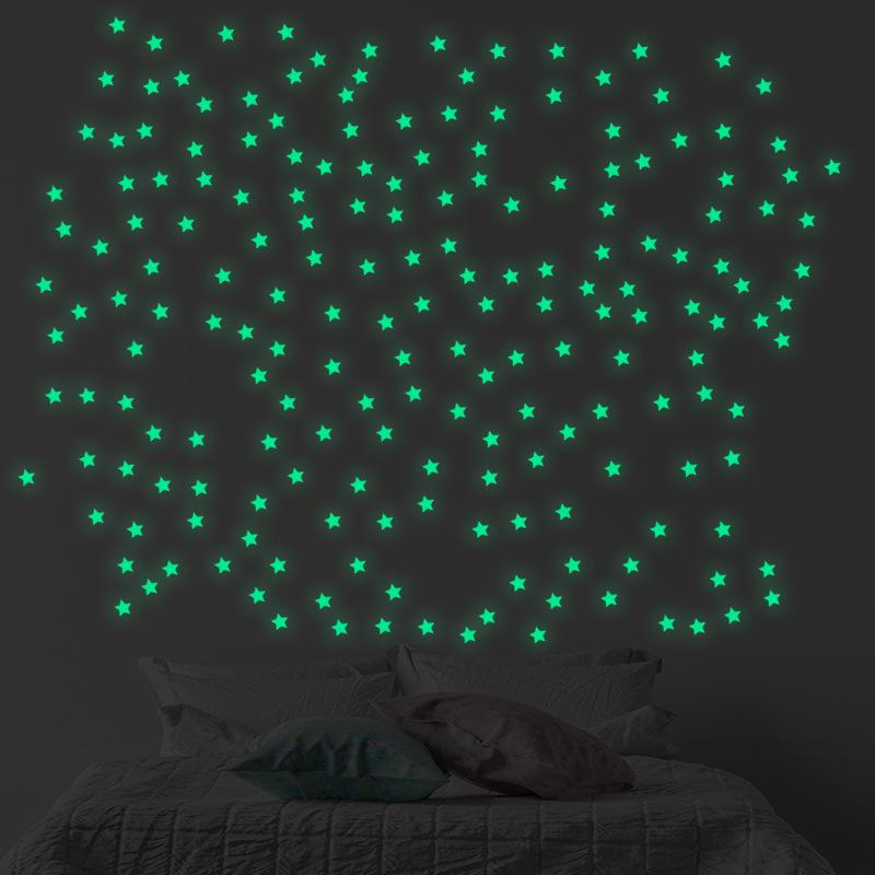 Comercio exterior nuevas pegatinas de estrella luminosa decoración dormitorio sala de estar efecto luminoso estrella de cinco puntas autoadhesivas pegatinas azules verdes