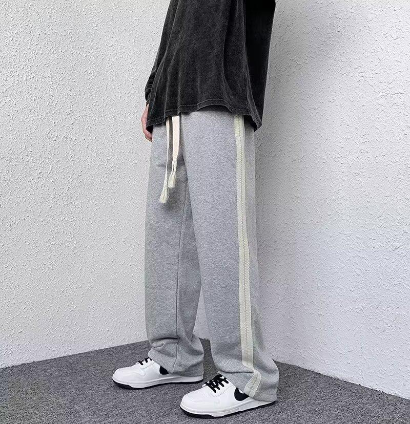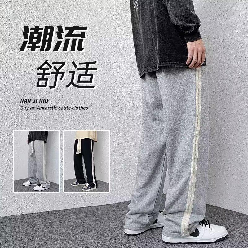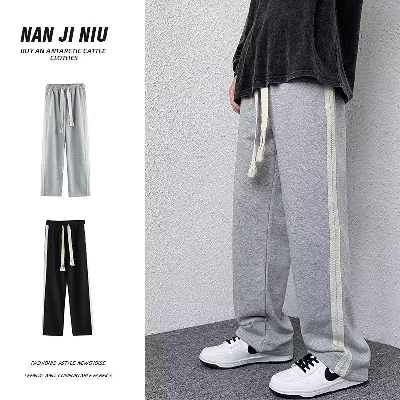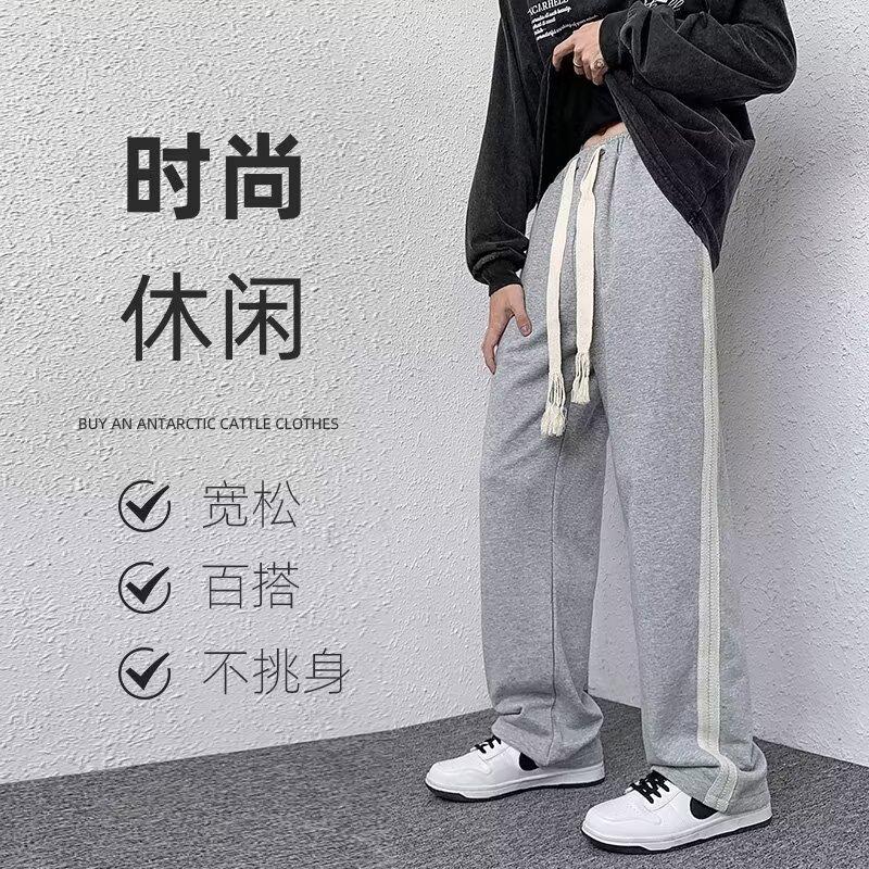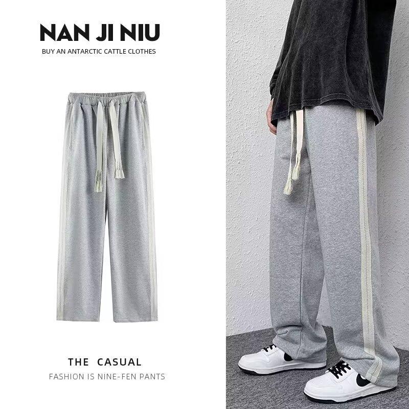 Pantalones deportivos grises de marca de moda de primavera para hombre, pantalones largos casuales, pantalones anchos, sueltos y combinables, pantalones rectos drapeados para hombre