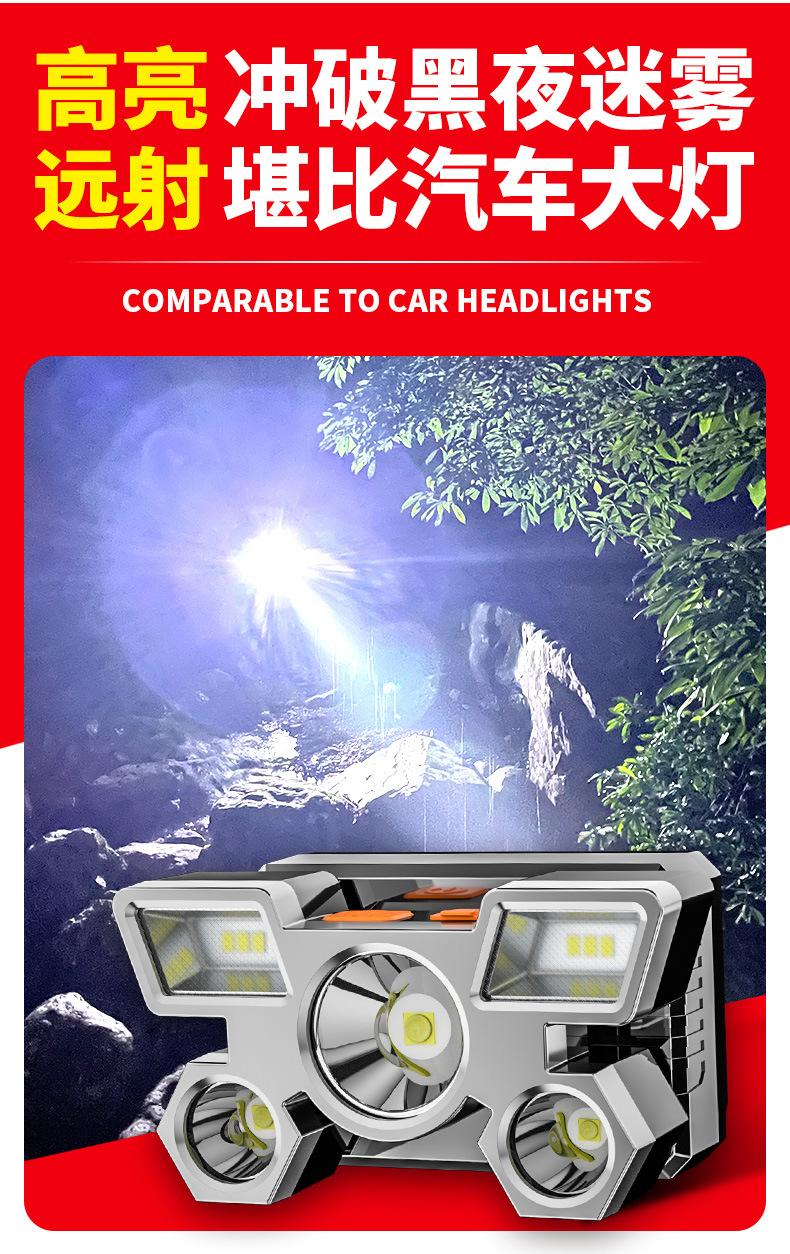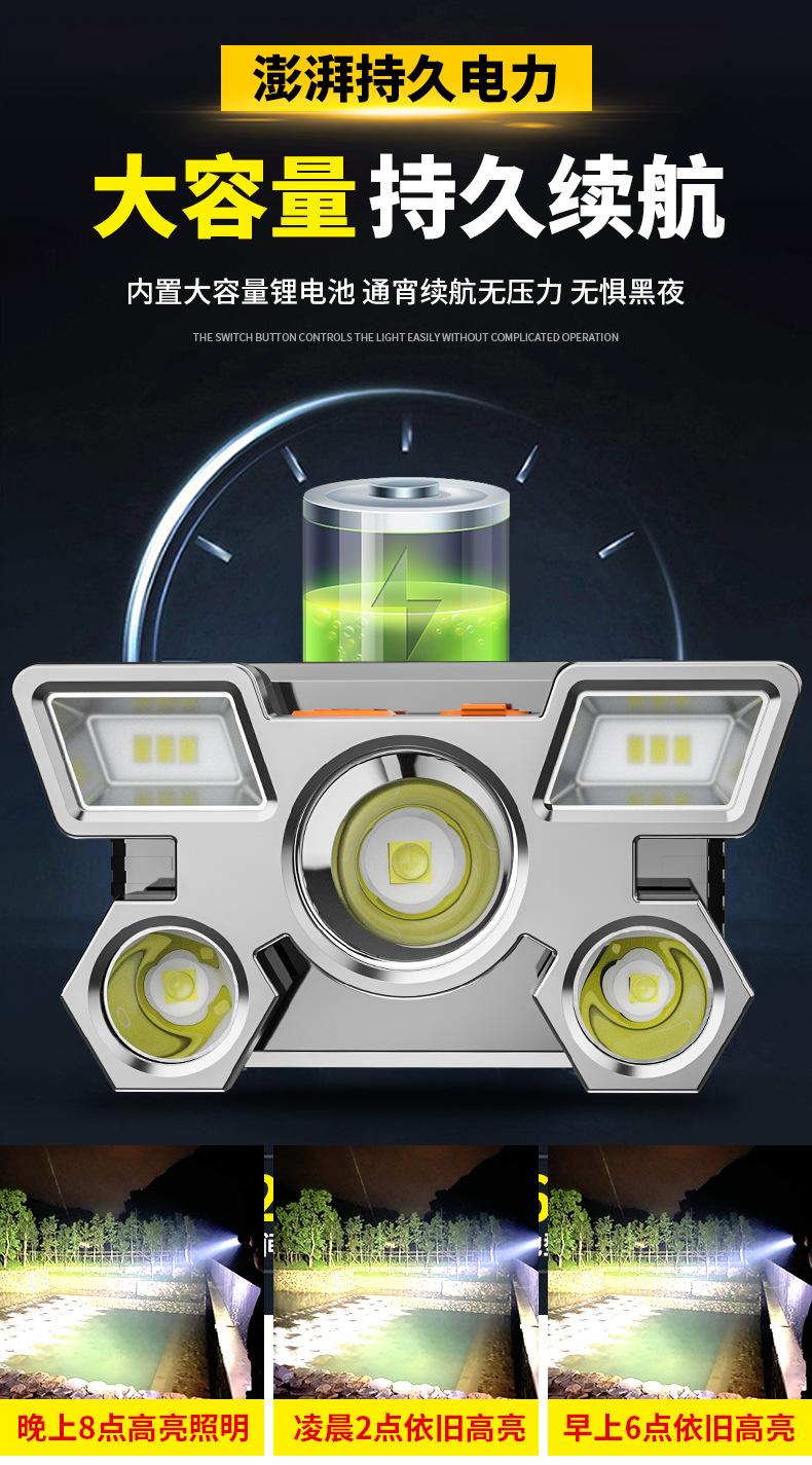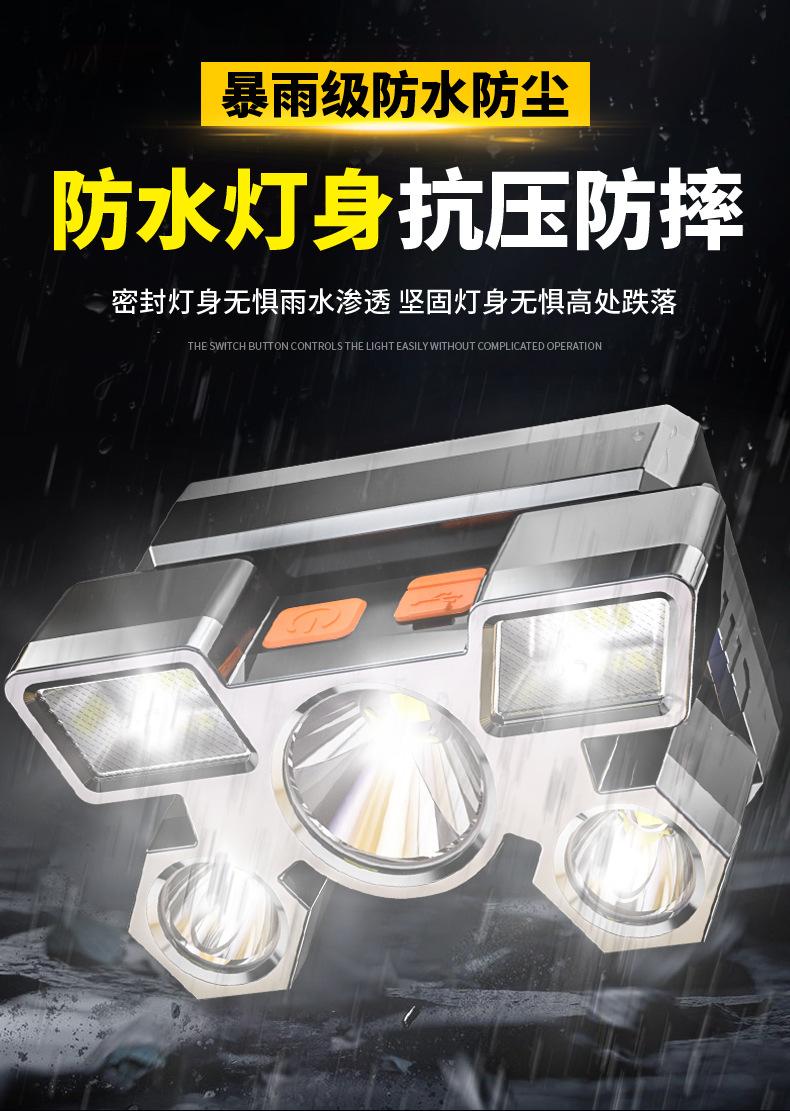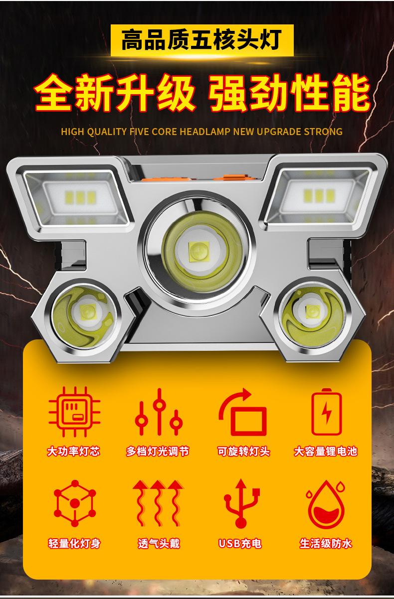 Compra Nuevo faro LED potente transfronterizo de cinco cabezas, lámpara de avión, recargable por USB, pequeña linterna montada en la cabeza, lámpara de minero para exteriores al por mayor en Joom.pro