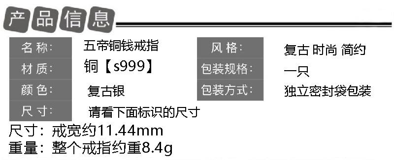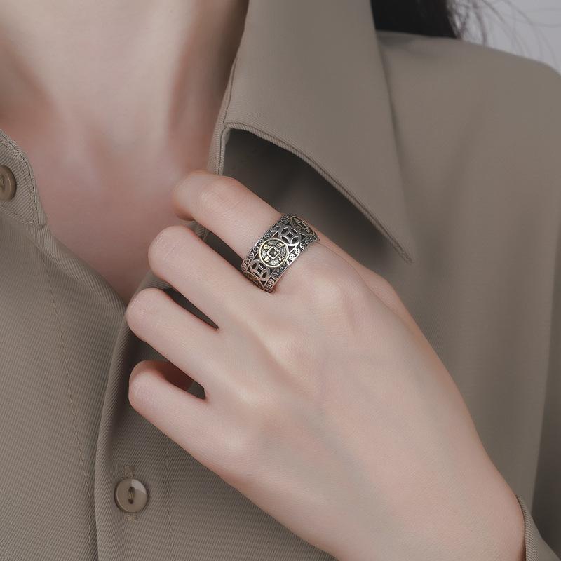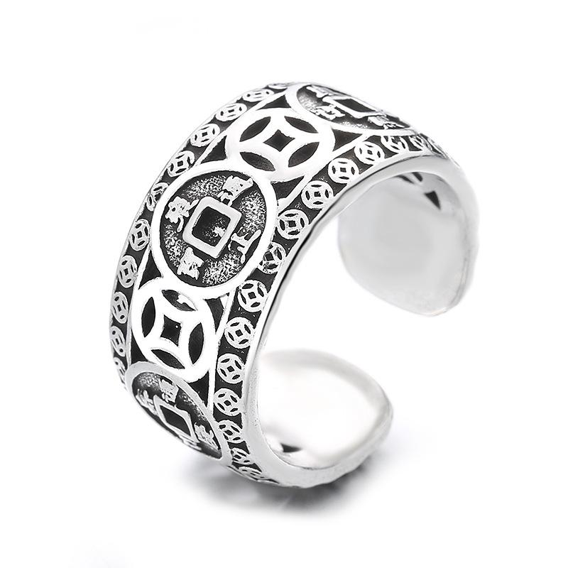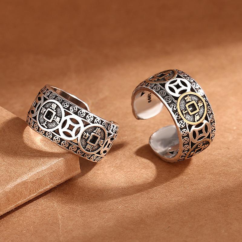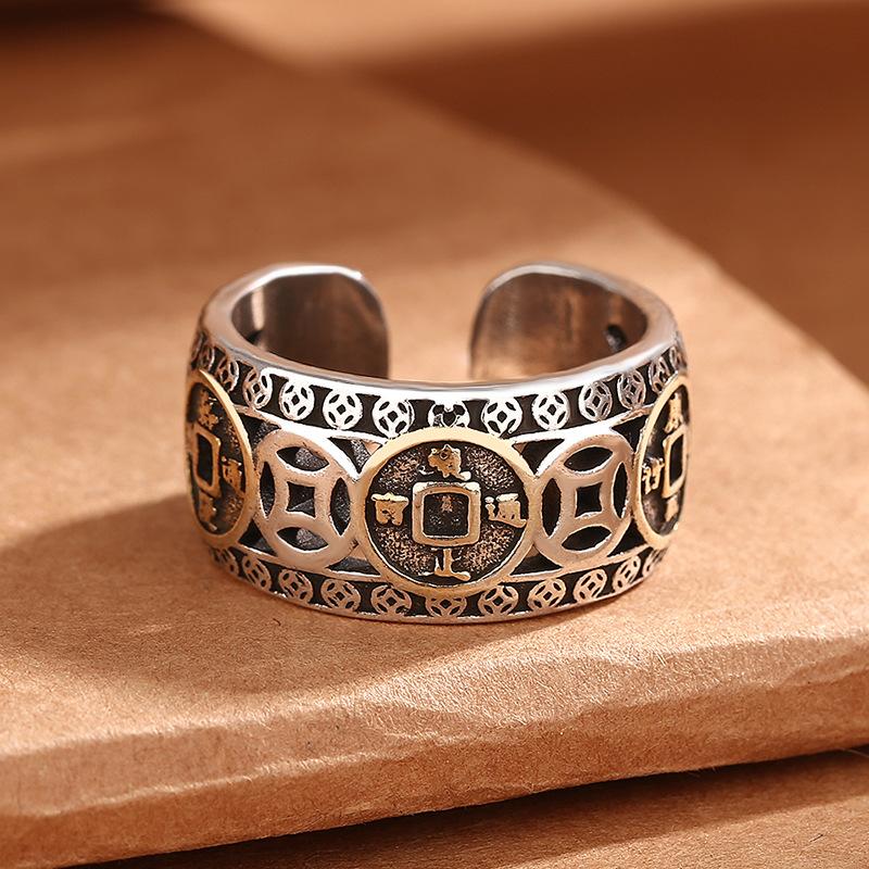 Anillo Carloge Retro Plata Tailandesa Moneda de Cinco Emperadores para Hombre y Mujer, Anillo Simple de Moda Creativo Personalizado Abierto