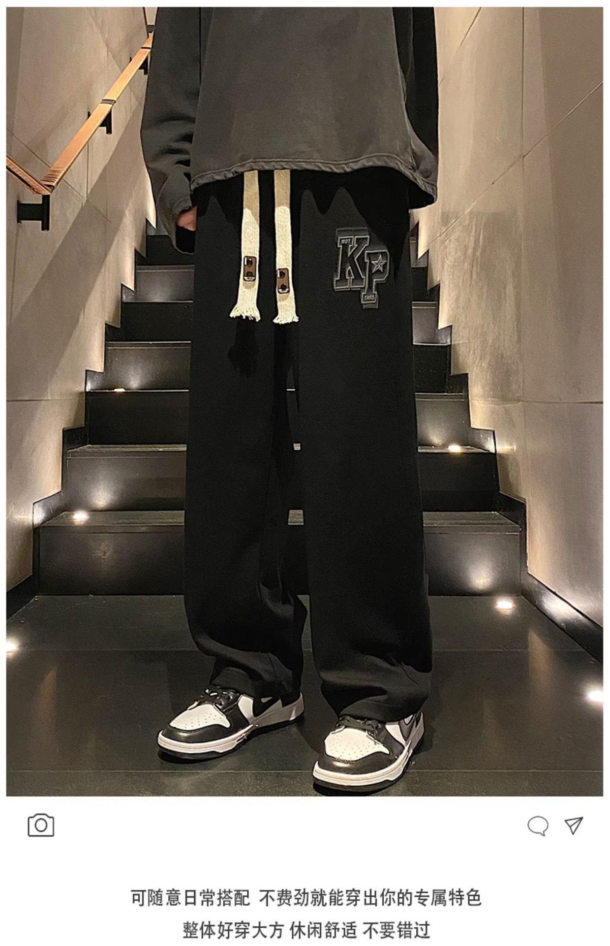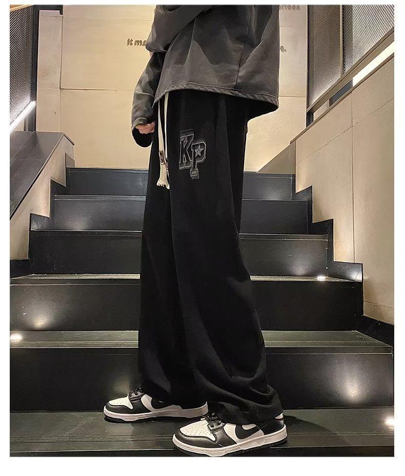 Pantalones deportivos de marca de moda de primavera y otoño de 2023, pantalones rectos, pantalones casuales holgados de pierna ancha estilo americano para hombre