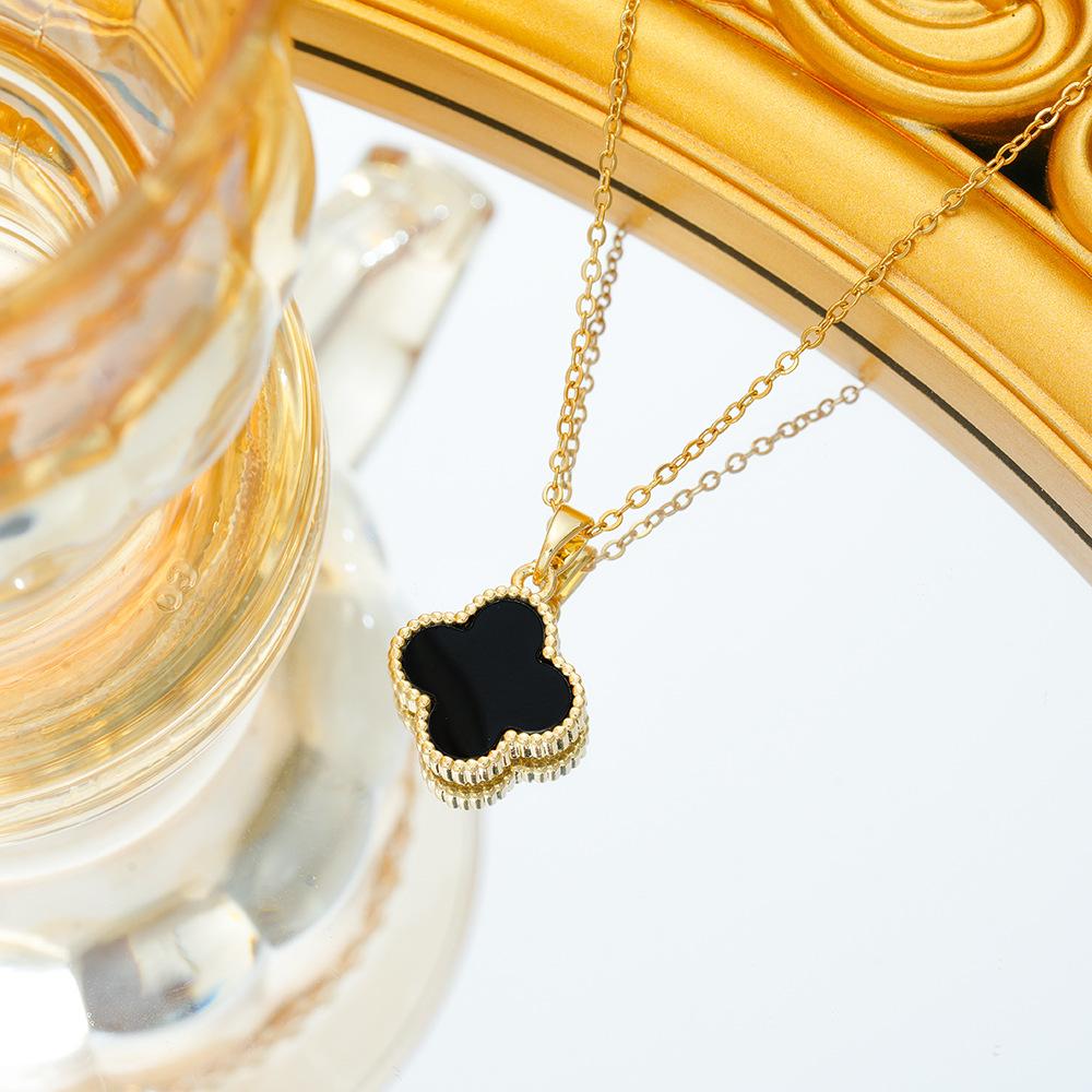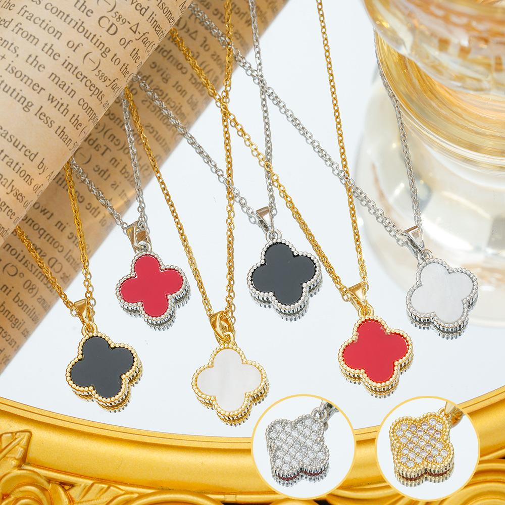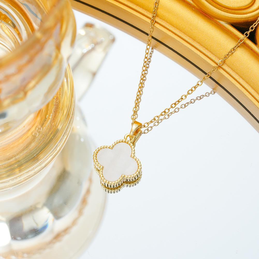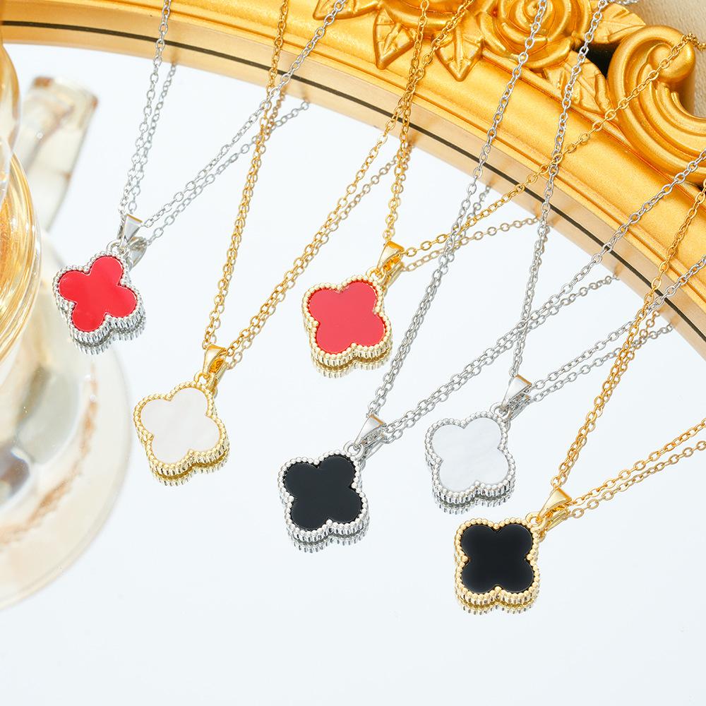 Colgante Clásico de Acero de Titanio Trébol de Cuatro Hojas Doble Cara Nácar Collar Clavícula Joyería Moda Versátil No se Desvanece Lujo Bajo Mayoreo