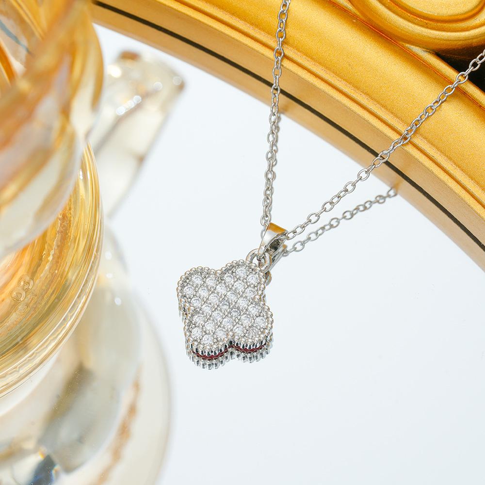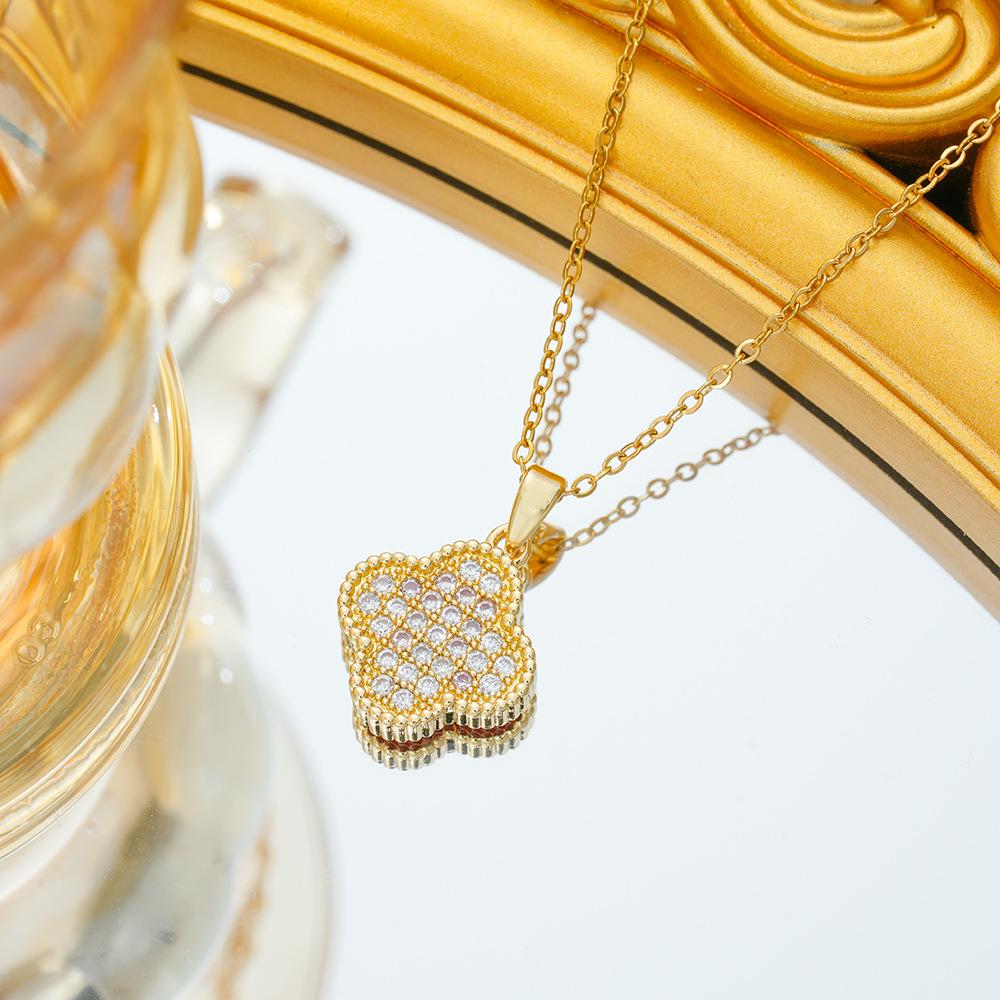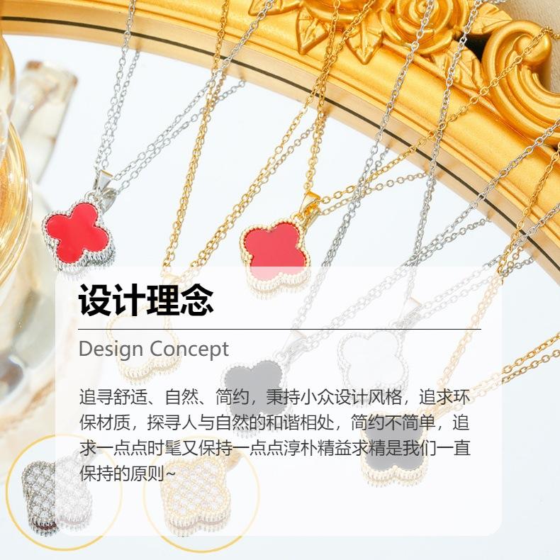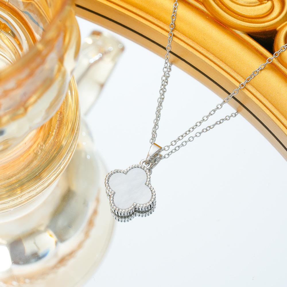 Colgante Clásico de Acero de Titanio Trébol de Cuatro Hojas Doble Cara Nácar Collar Clavícula Joyería Moda Versátil No se Desvanece Lujo Bajo Mayoreo