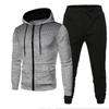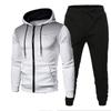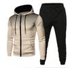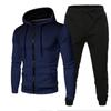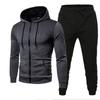 Conjunto de sudadera y pantalón con capucha y cremallera a rayas para hombre de comercio exterior, sudadera informal de invierno