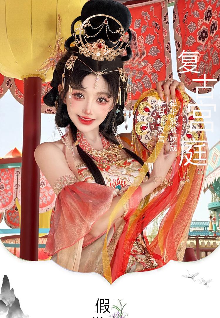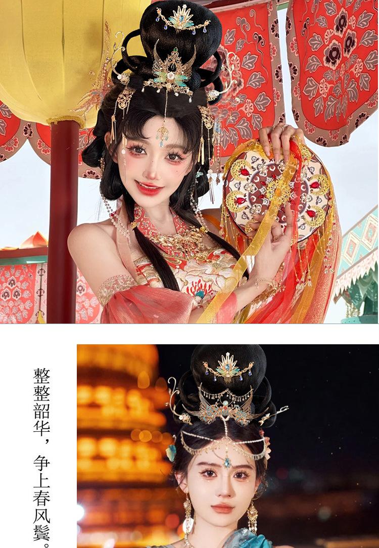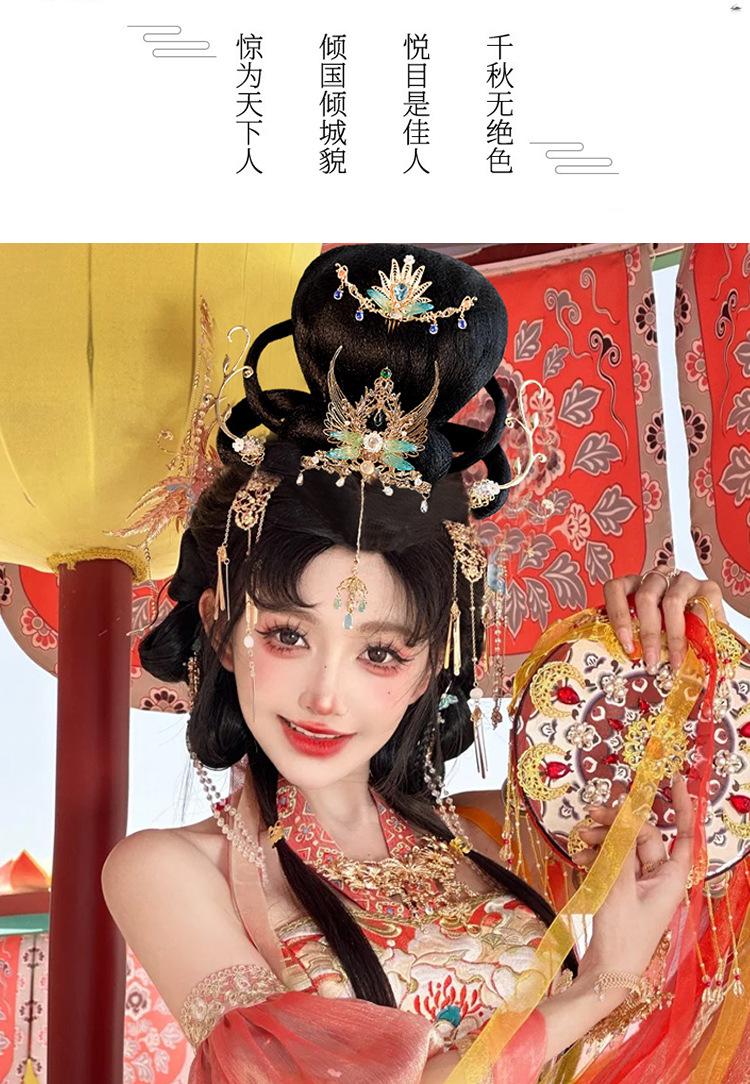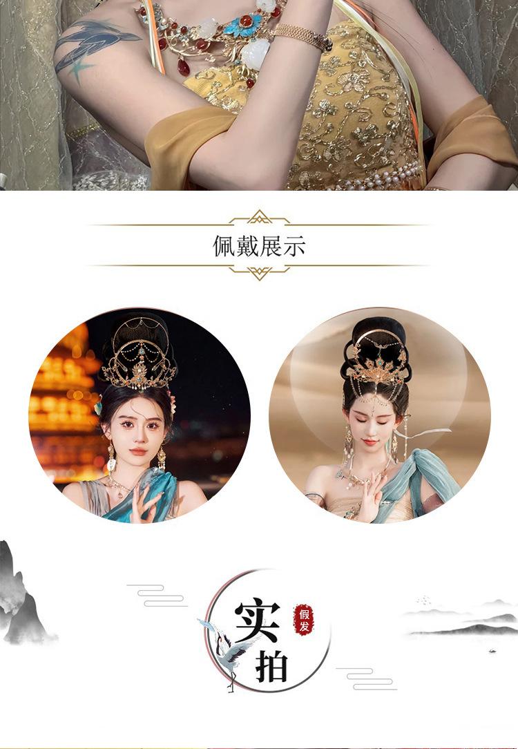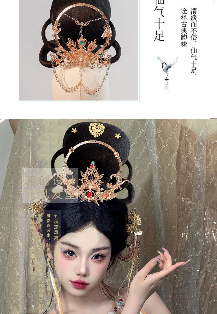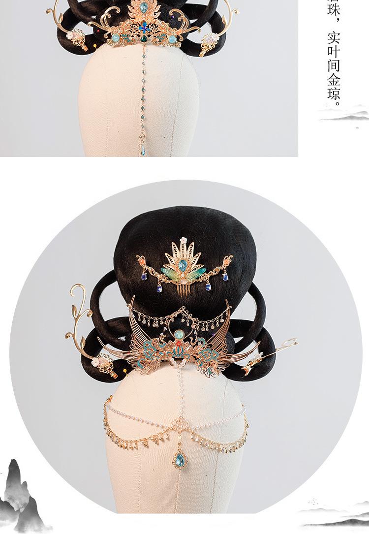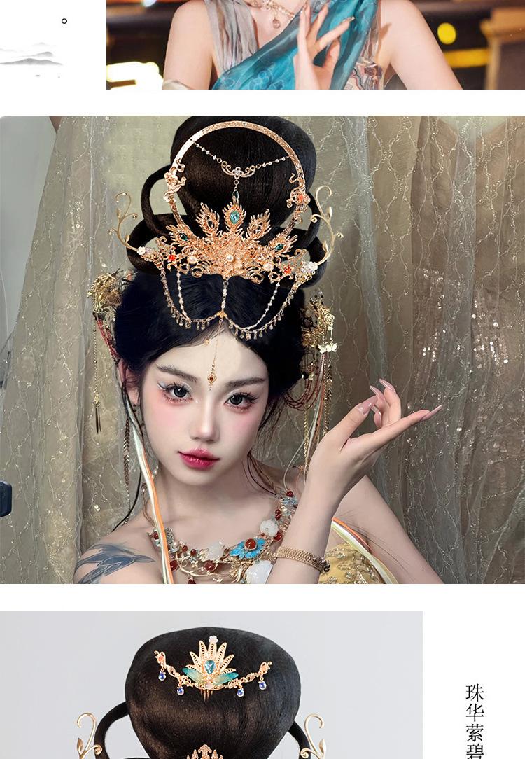 Juego Combinado de Accesorios para el Cabello Antiguos Traje Combinable Estilo Exótico Dunhuang Estilo Tang Elegante Corona para el Cabello Moño Peluca Integrada