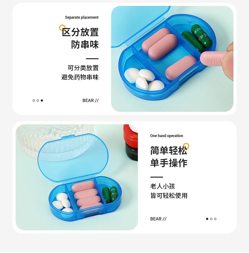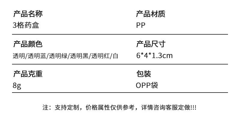 Caja de medicamentos pequeña portátil de tres compartimentos para temprano, medio y tarde, caja de medicamentos para empacar, caja de almacenamiento de medicamentos, pastillero transparente en stock al por mayor