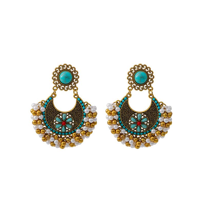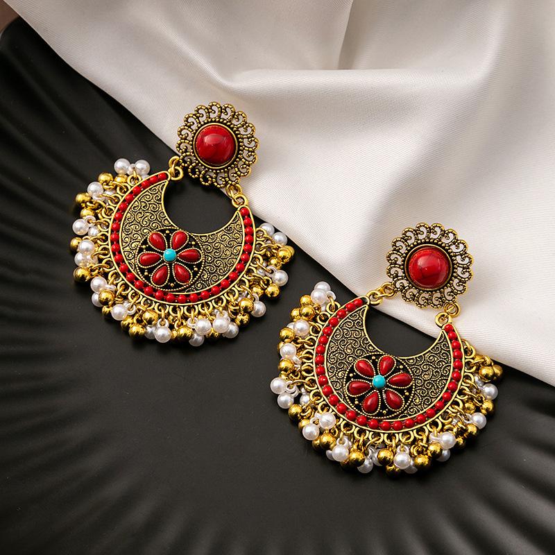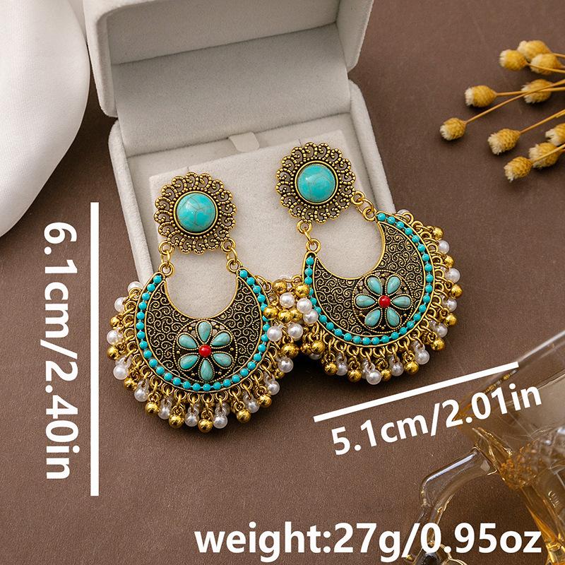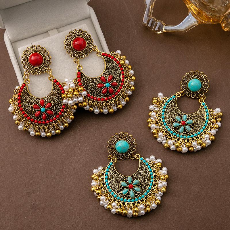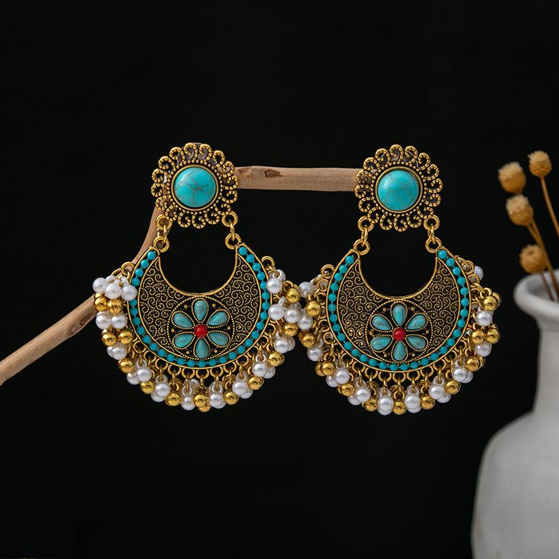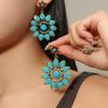 Pendientes colgantes de estilo étnico retro europeo y americano transfronterizos con diseño de temperamento exagerado, pendientes de flores bohemias para mujer
