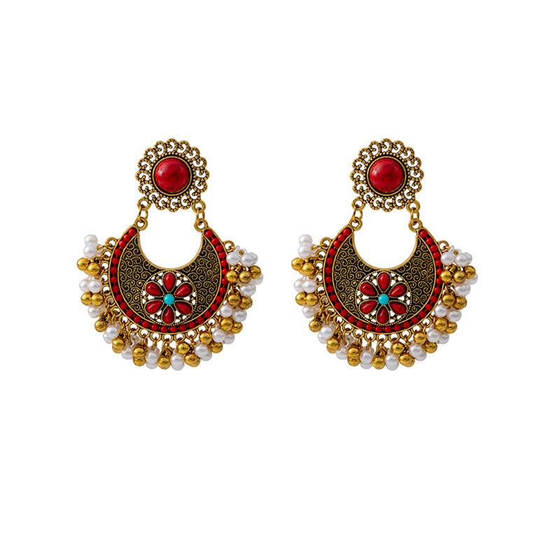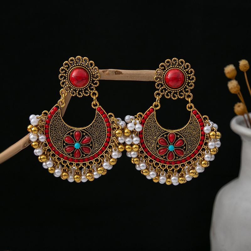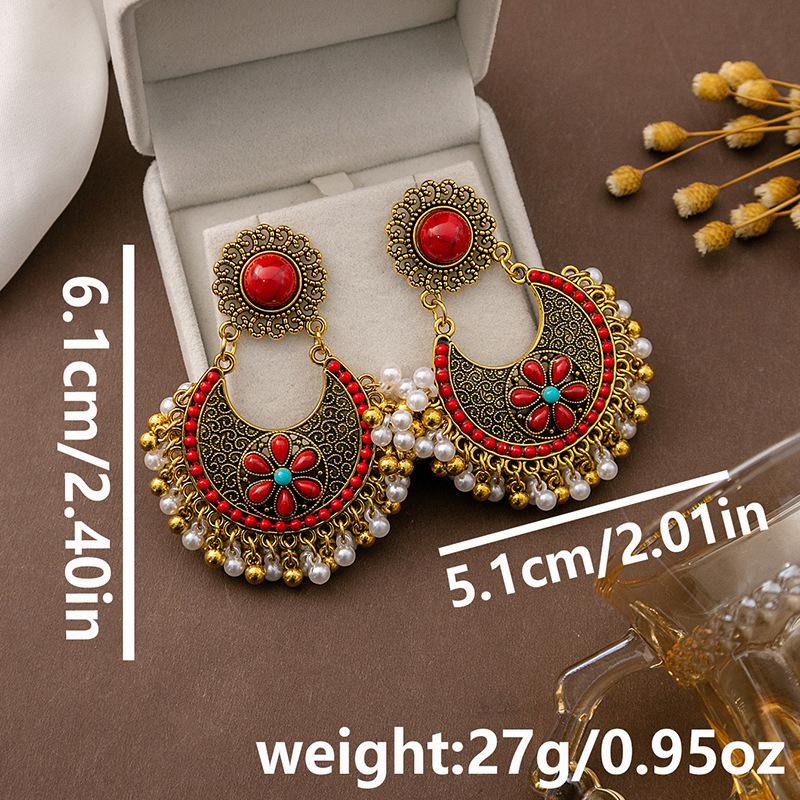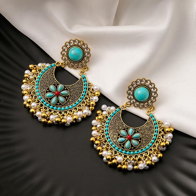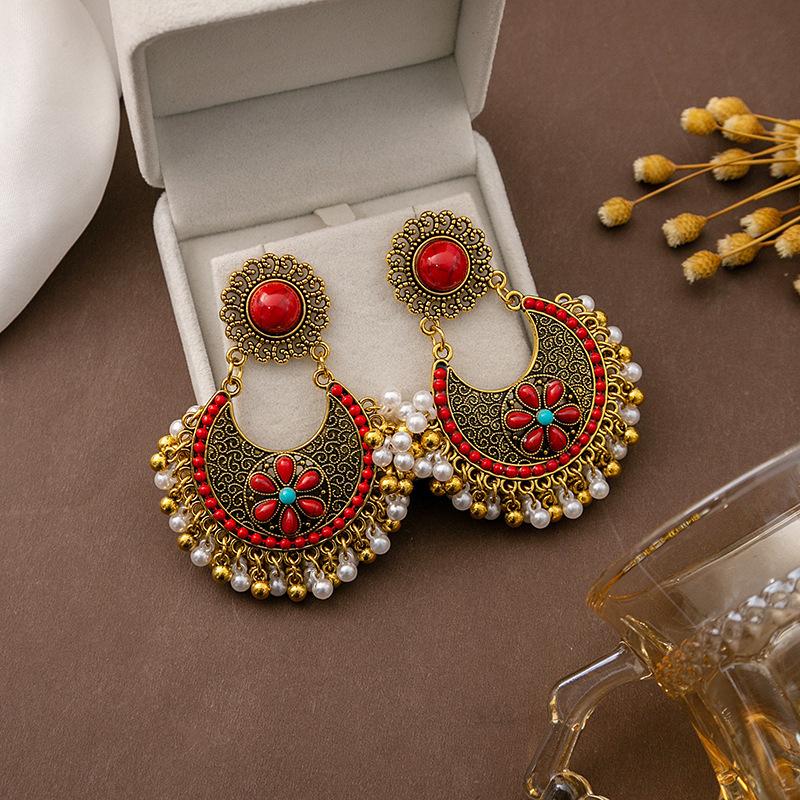 Pendientes colgantes de estilo étnico retro europeo y americano transfronterizos con diseño de temperamento exagerado, pendientes de flores bohemias para mujer