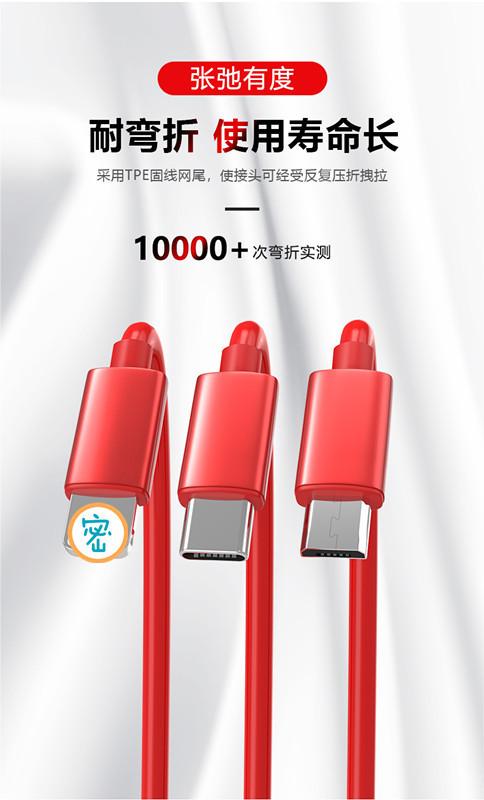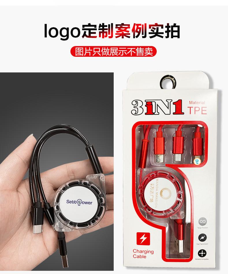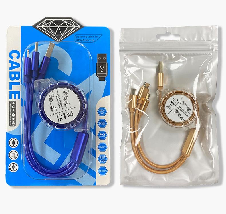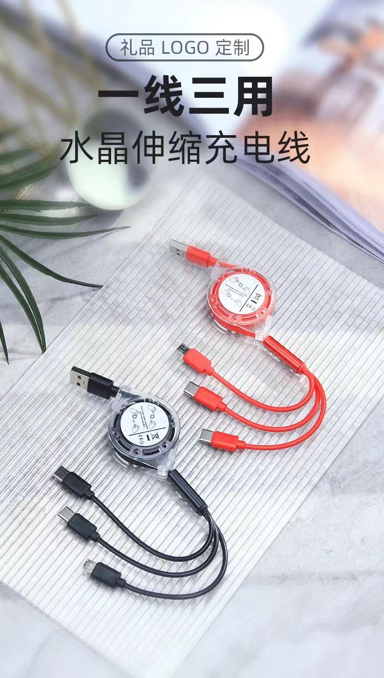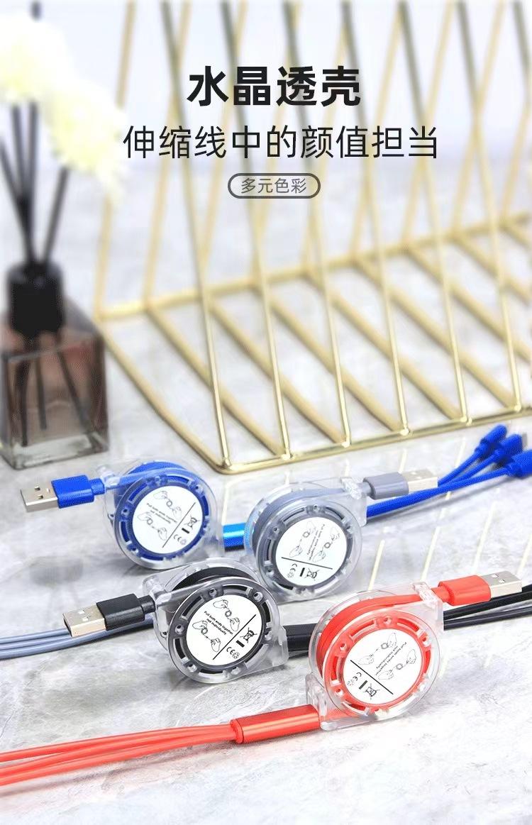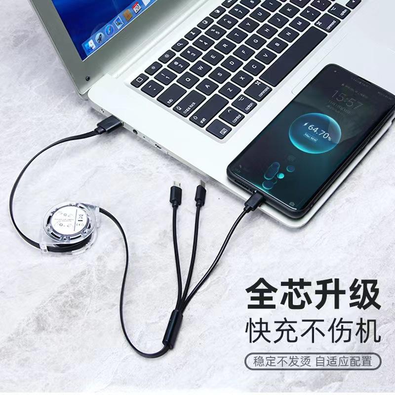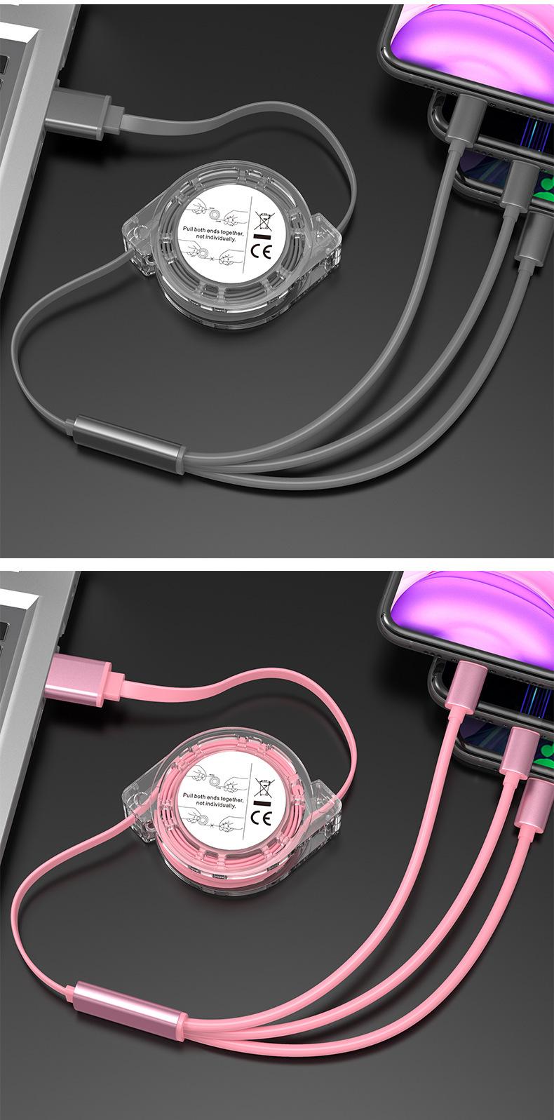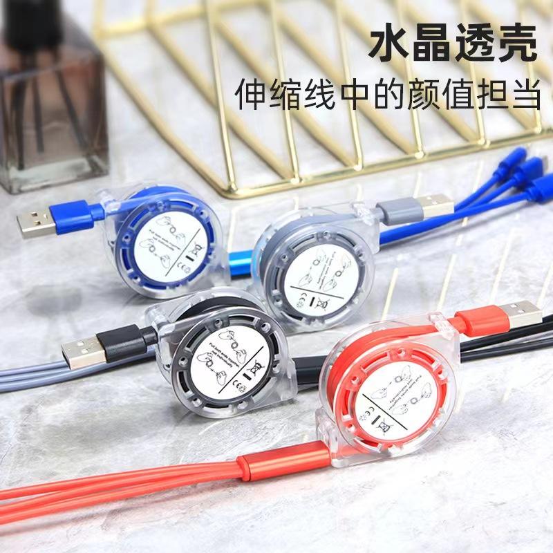 Un arrastre tres cable de datos telescópico para empujar fabricantes de regalos al por mayor fácil de recibir teléfono móvil 3A carga rápida línea de carga tres en uno