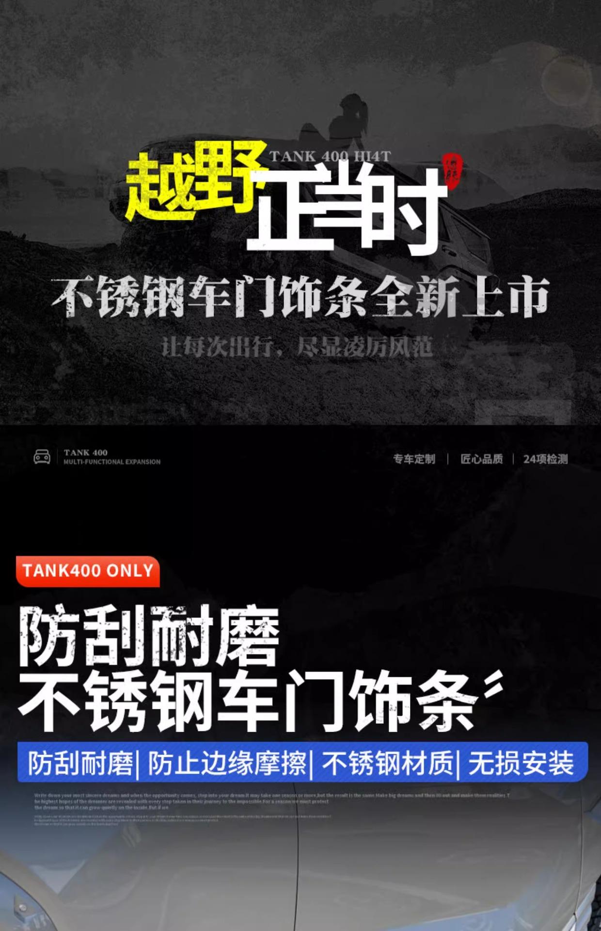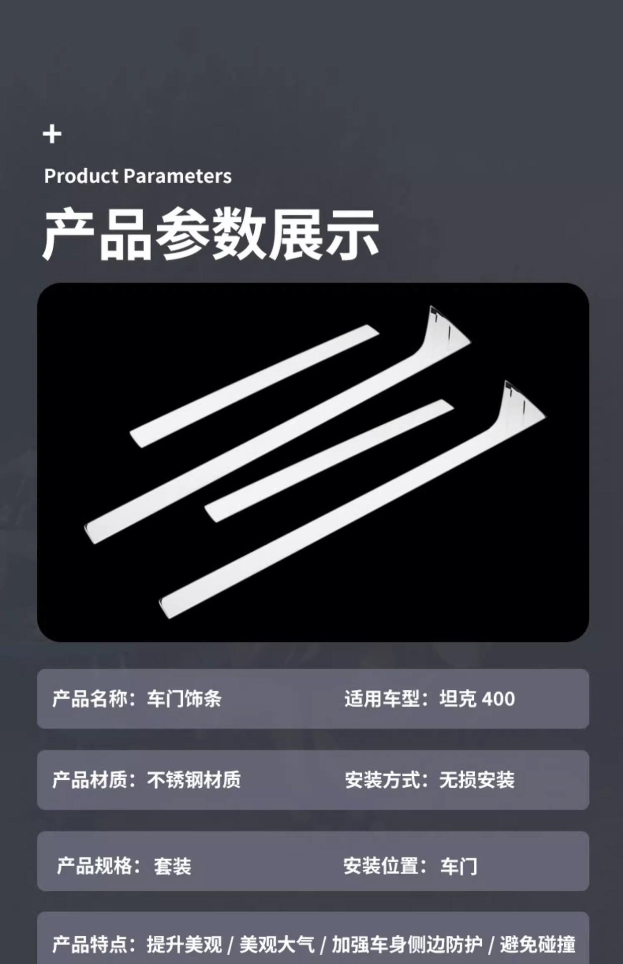 Aplicable a molduras de carrocería tank 400hi4t, protección de puertas, tira anticolisión, modificación de acero inoxidable, especial para mejora de molduras exteriores