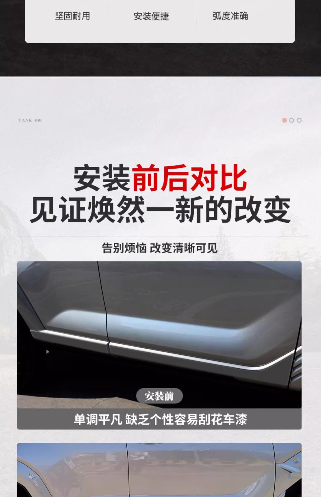 Compra Aplicable a molduras de carrocería tank 400hi4t, protección de puertas, tira anticolisión, modificación de acero inoxidable, especial para mejora de molduras exteriores al por mayor en Joom.pro