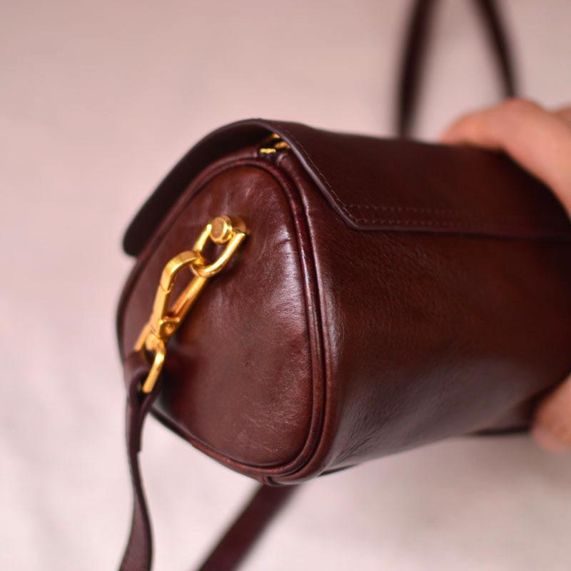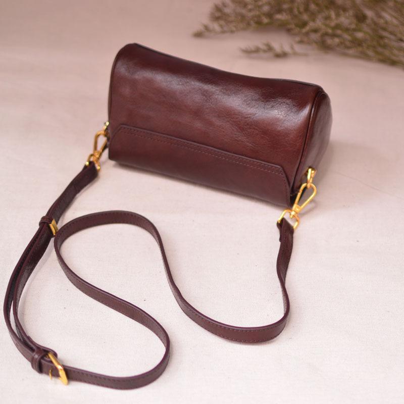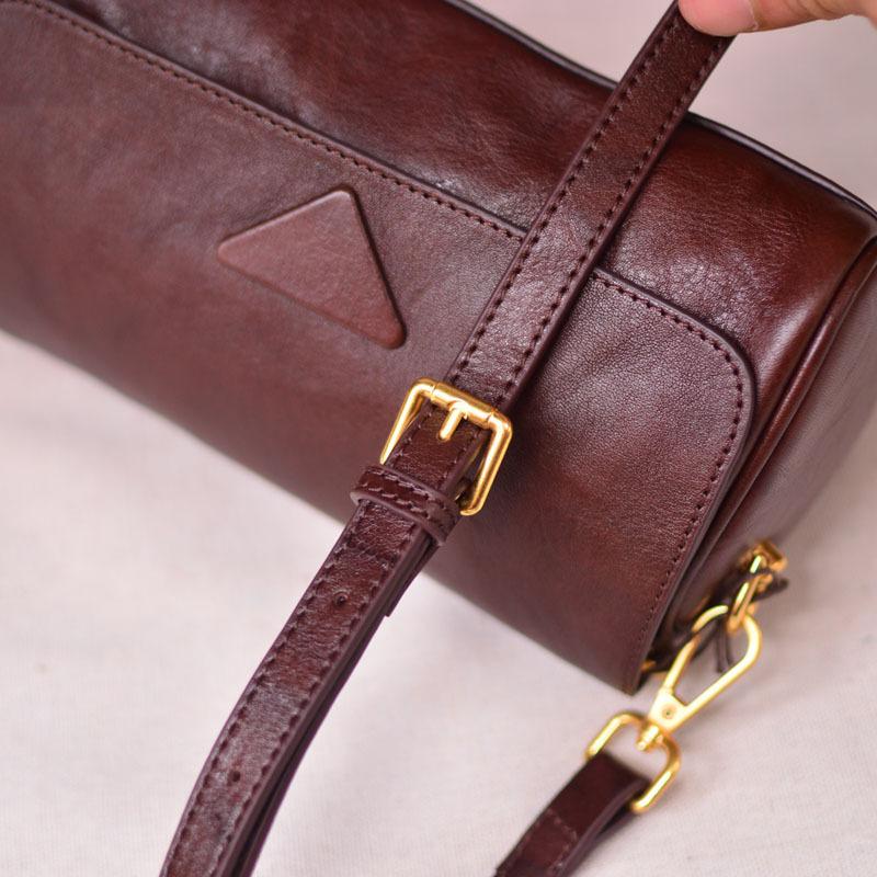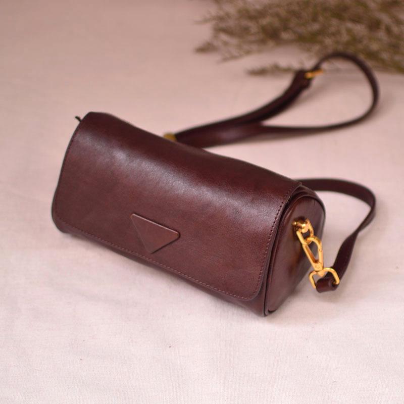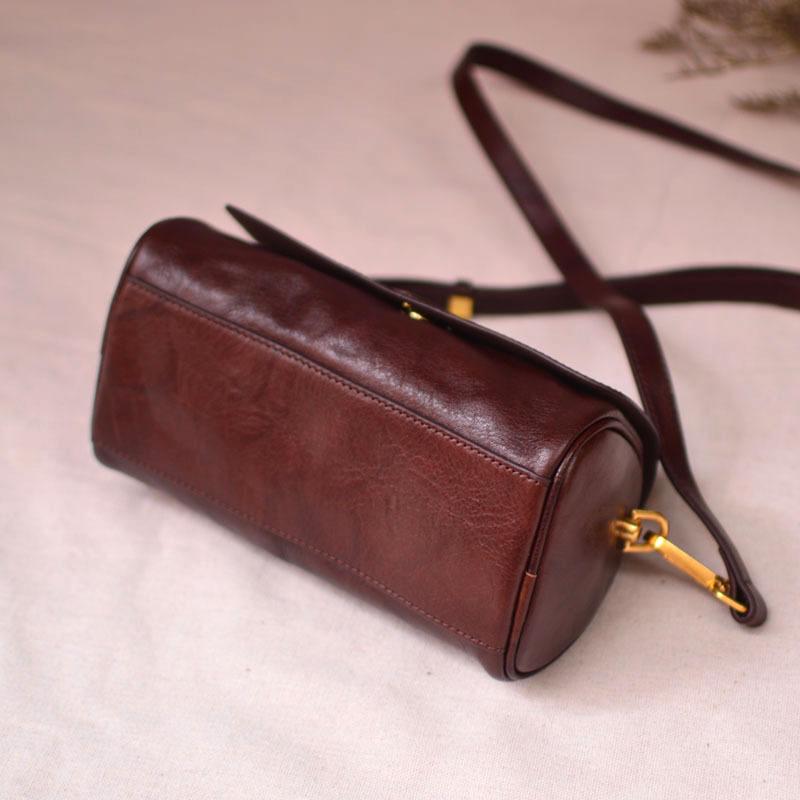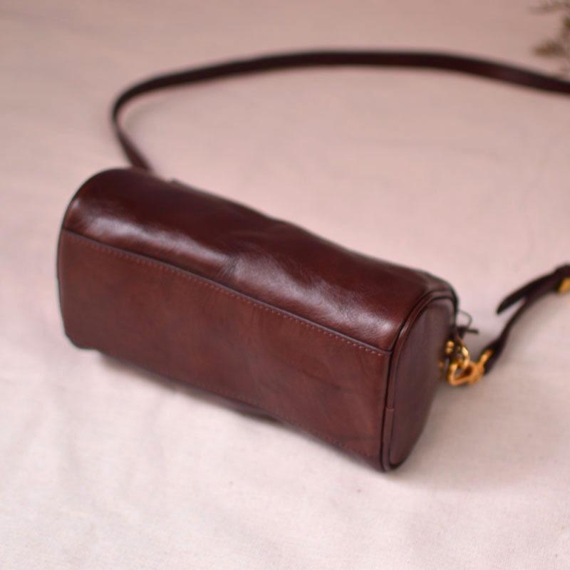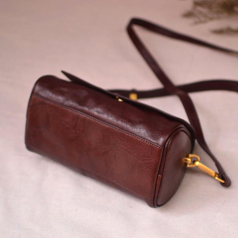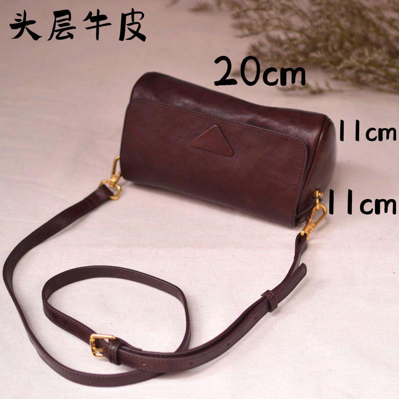 Bolso pequeño vintage para mujer, bolso de nicho de piel de vaca de primera capa, nuevo, moderno, combinable, bandolera de hombro con banda ancha, redondo y moderno.