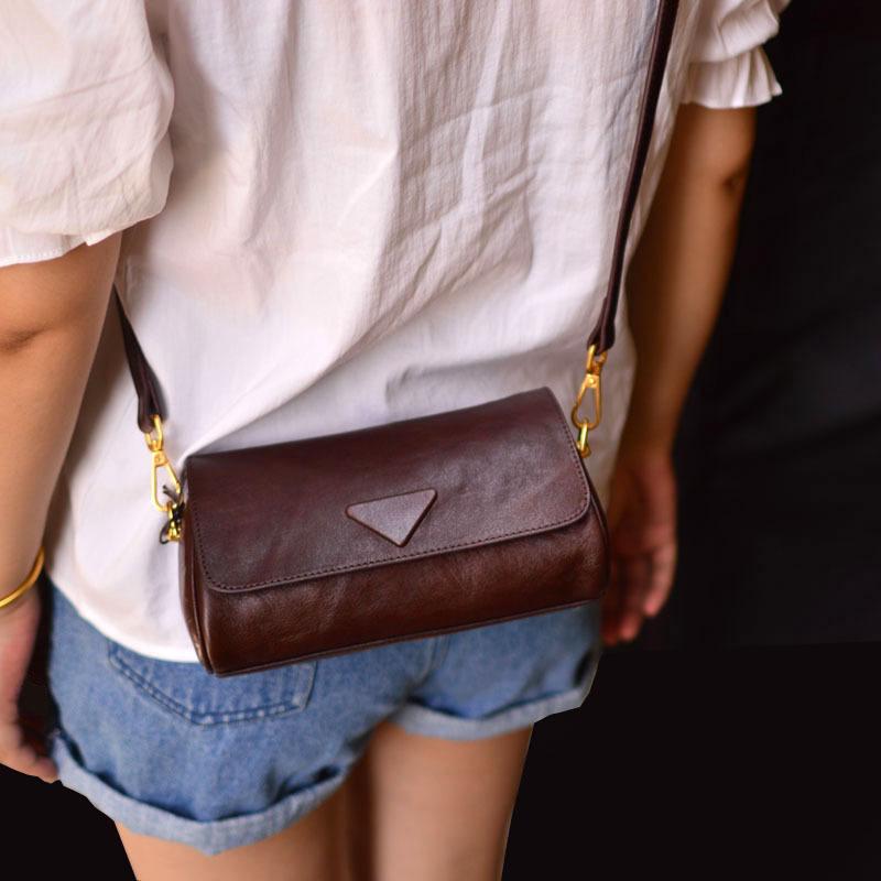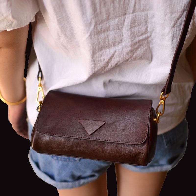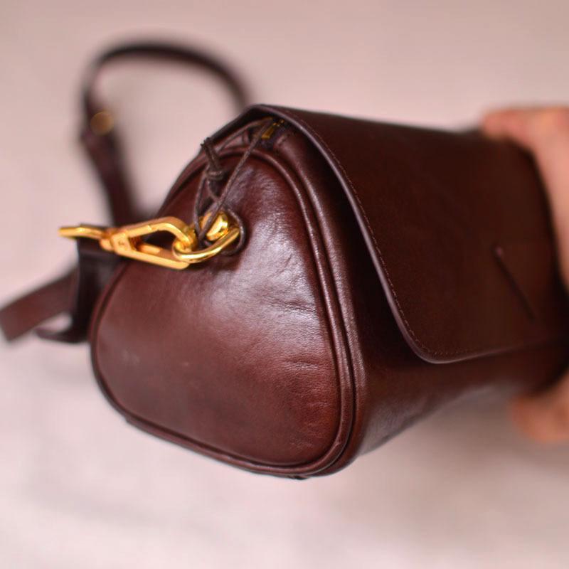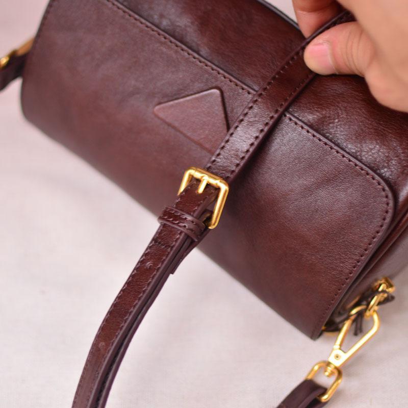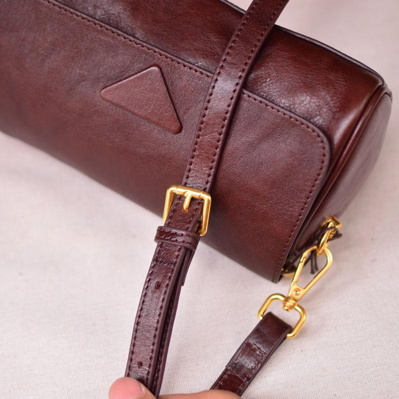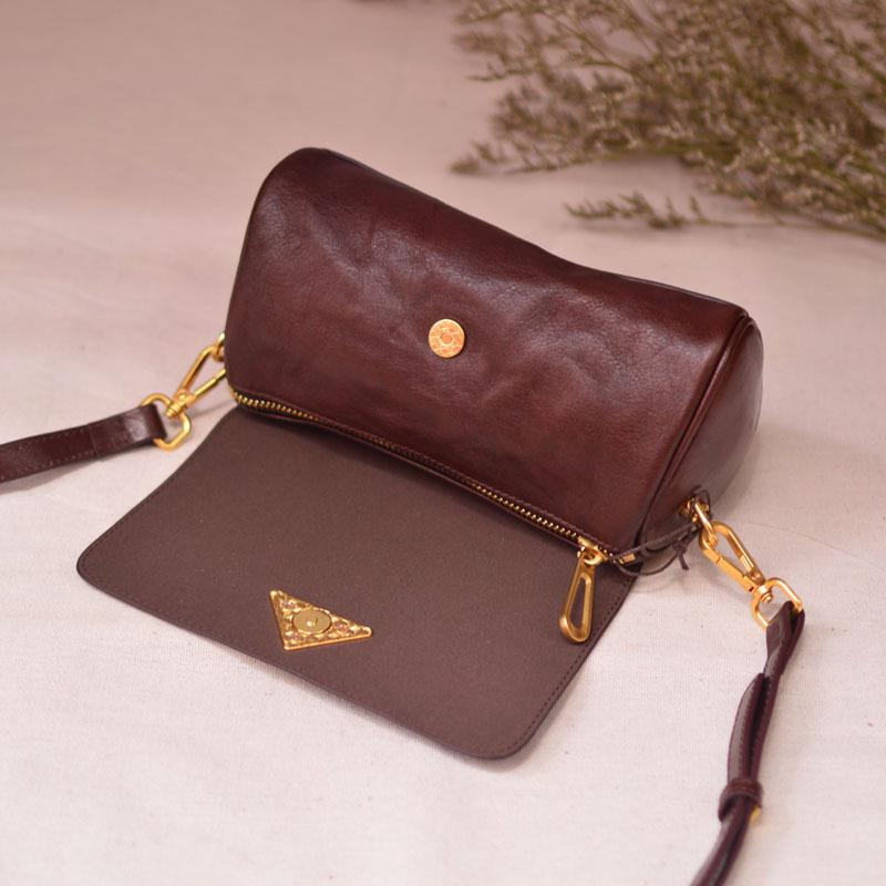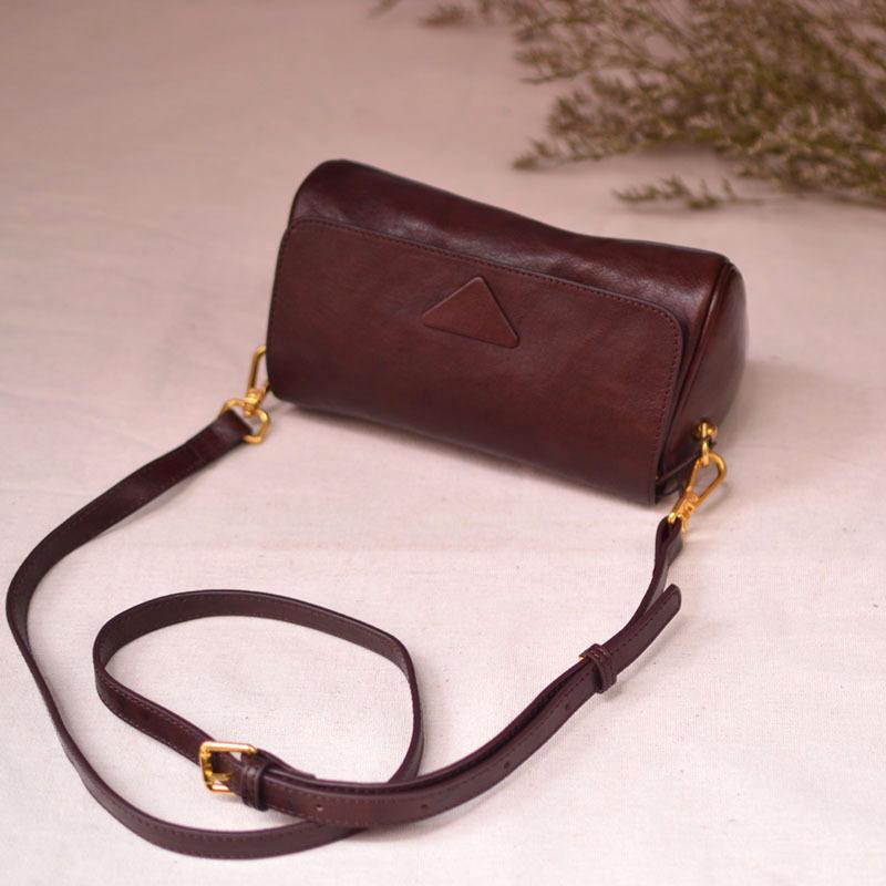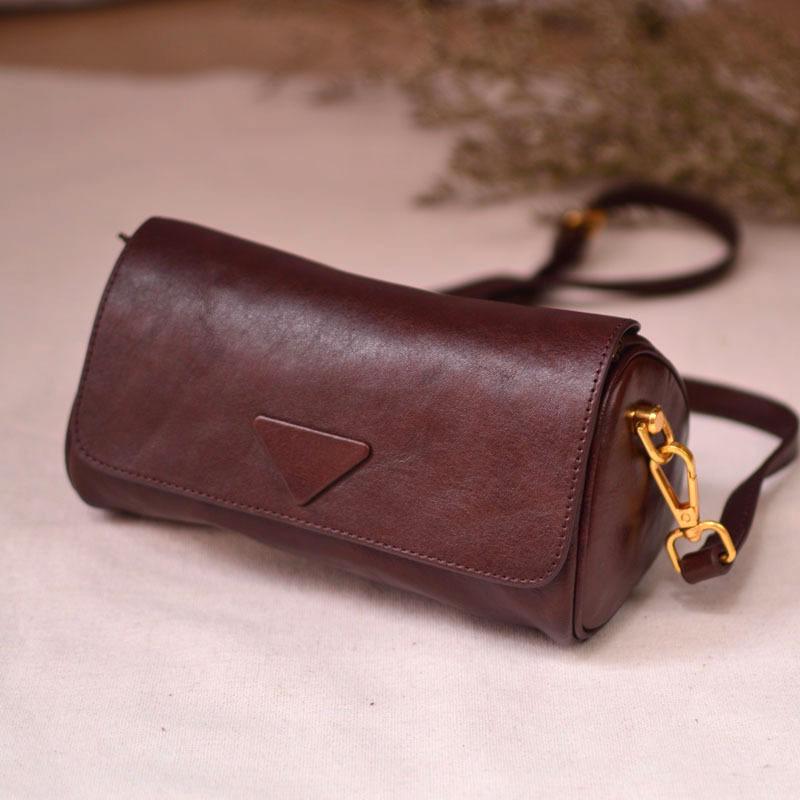 Bolso pequeño vintage para mujer, bolso de nicho de piel de vaca de primera capa, nuevo, moderno, combinable, bandolera de hombro con banda ancha, redondo y moderno.