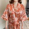 Kimono de noche de primavera y otoño para mujer de imitación seda sexy bata de seda pijamas hotel salón de belleza bata barata