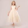 Vestido de novia largo para niña, de malla abullonada, de princesa, para banquetes, pasarelas y presentaciones, de 3 a 15 años